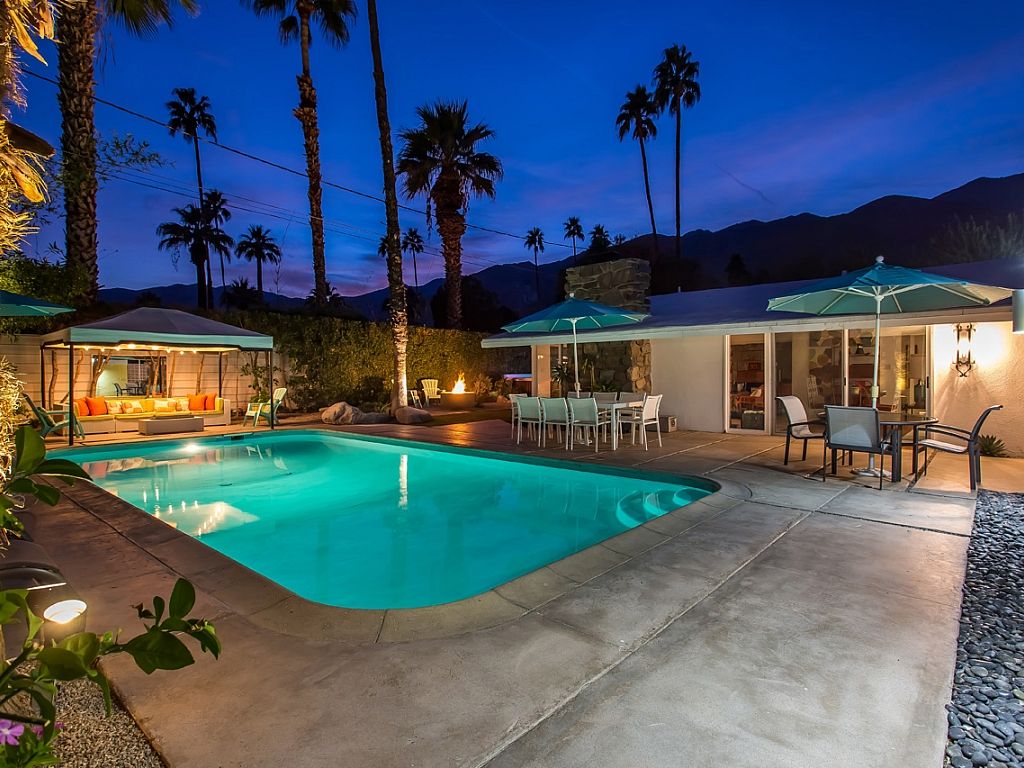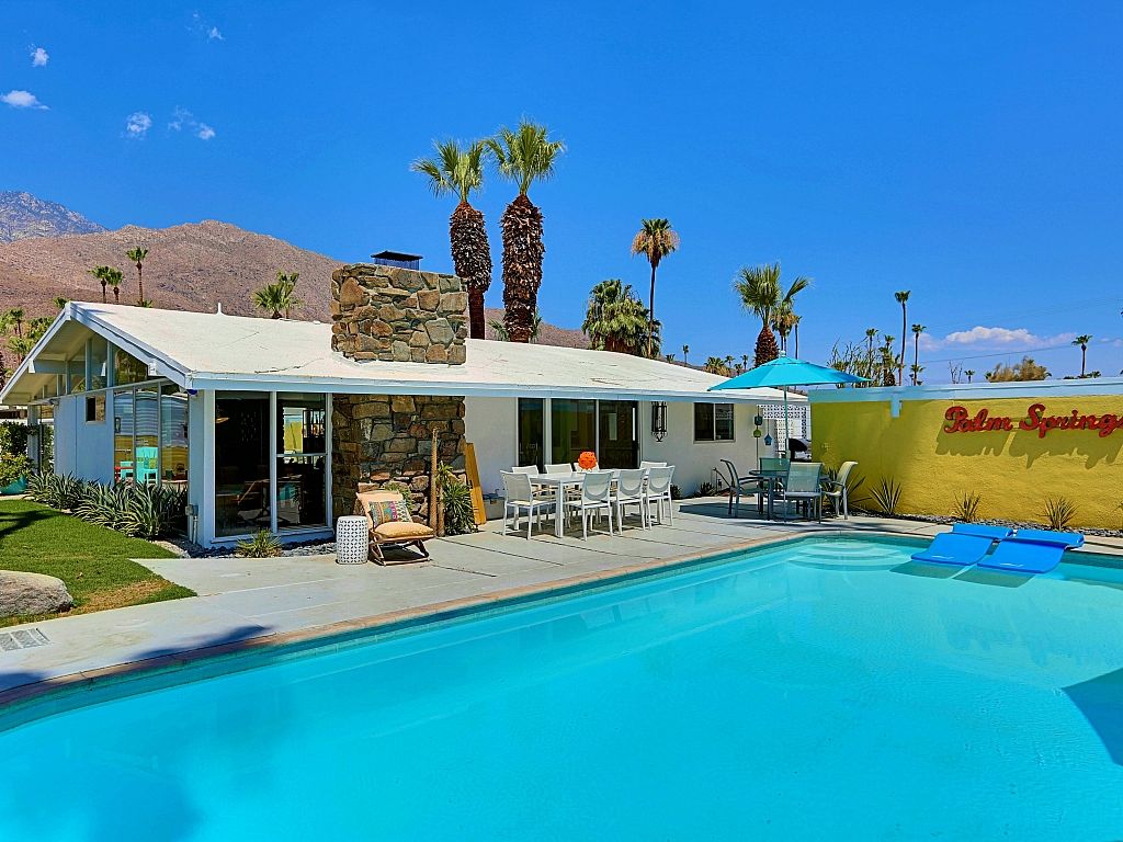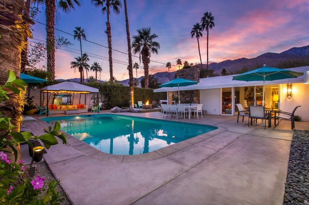 This Palm Springs vacation home features a private heated pool, gorgeous mountain views, 3 bedrooms, 2 baths and is a short drive to downtown shops, golf, dining, theaters & entertainment.