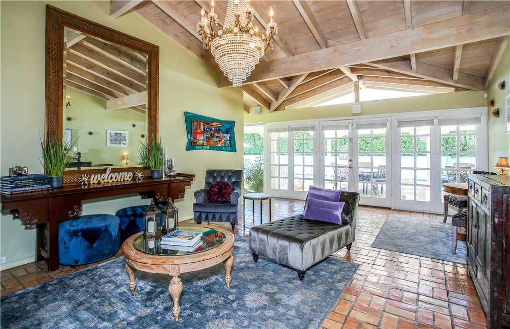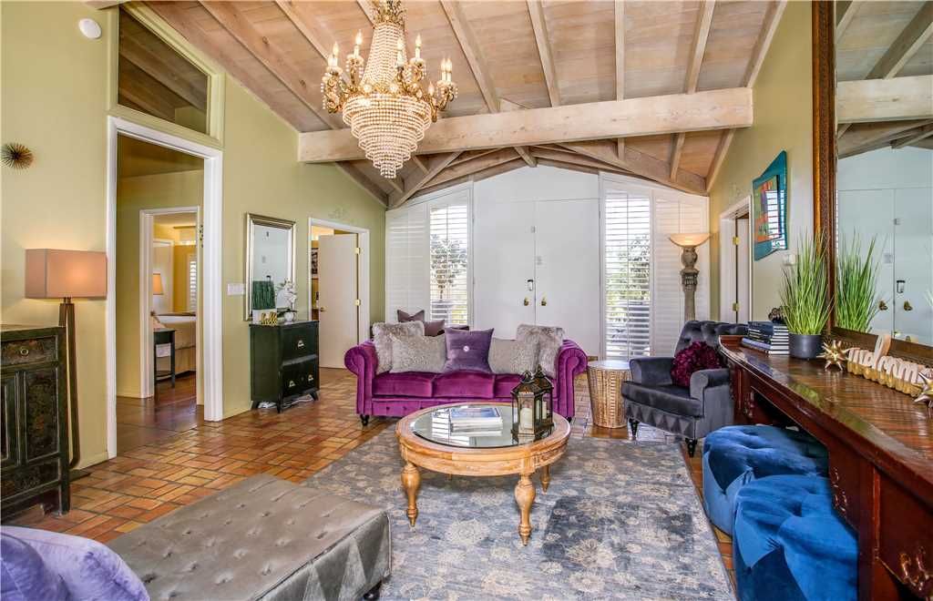 You enter this home through the luxurious cocktail parlor – elegant for entertaining and photo ops You can feel the history and glamour when you walk in. This home was originally the Palm Springs retreat home of Jackie O’s stepdaughter, heiress Christina Onassis Fantastic celebrity history