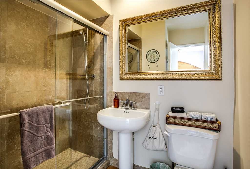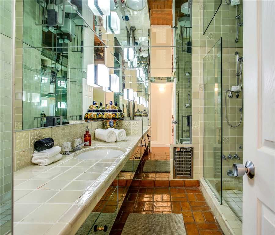 Bedroom #1: The master bedroom has a king bed and is themed the Legacy Room. Here, we have gathered photos, books, and memorabilia about Christina Onassis, previous owner of the home, and the Onassis family – including her father Aristotle Onassis, one of the world’s richest men and husband to Jackie Kennedy Onassis. This room also features some of the original antiques to the home. There is a twin day bed off of this room if you are traveling with a small child who needs to be close by you. This room also features the homes Viking sauna Fantastic for an in-home spa day or relaxation This room opens to a small courtyard with outdoor shower