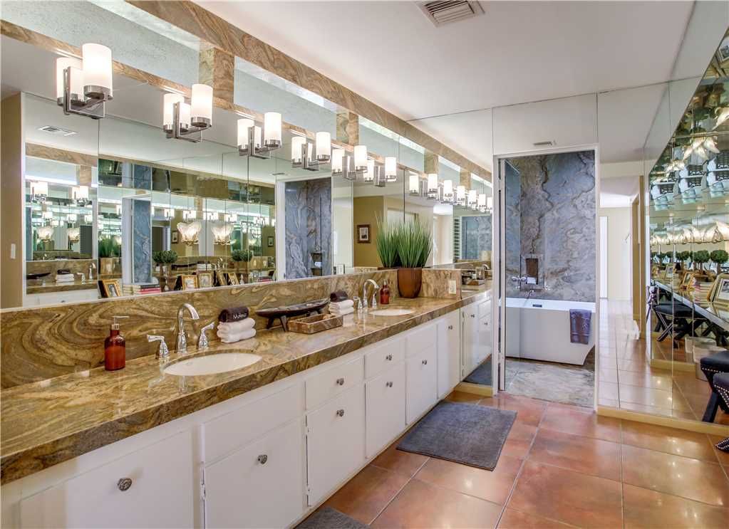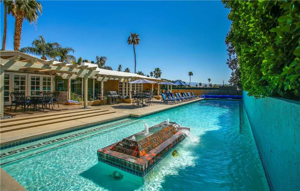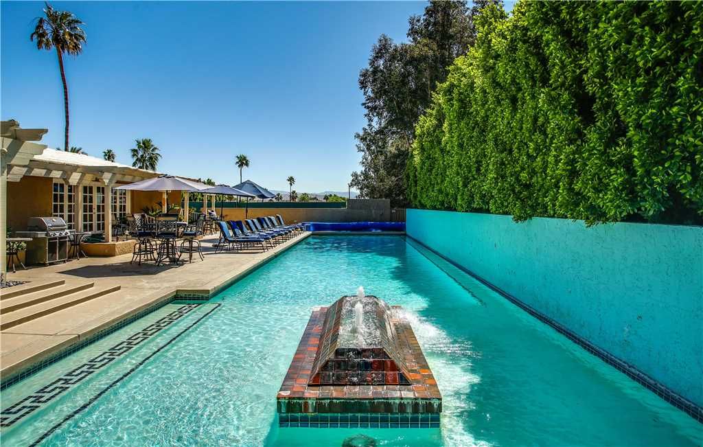 * 6 Bedrooms + Bonus Room + 7 bath celebrity home, featuring one of the largest residential pools in Palm Springs It is 80 feet long and heated upon request.
