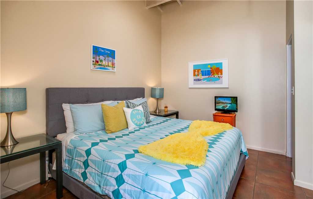 Bedroom #5: The Palm Springs Room, king bed. All things Palm Springs Colorful, modern, and with style That’s how it’s done in Palm Springs
