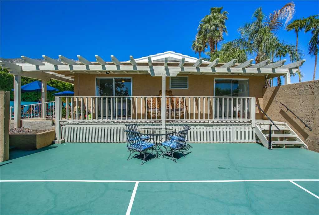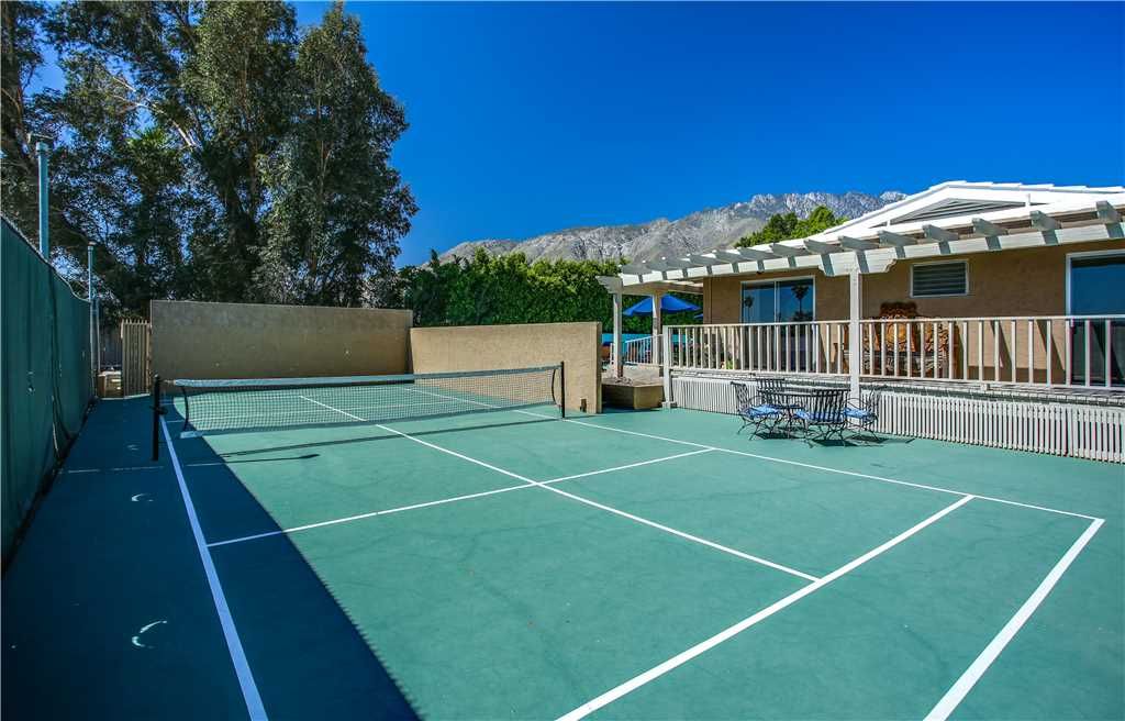 For your outside fun enjoyment…a Jacuzzi brand hot tub and a Sport Court for tennis/pickleball/badminton, and total privacy One of the many outstanding features of this Palm Springs Vacation rental is the spectacular 80 ft long swimming pool, complete with fountain and perfect for lounging or lap swimming. This home's pool is one of the very largest residential pools in Palm Springs. At the west end of the huge swimming pool is a shallow wading area or “tanning shelf” - perfect for sunning or supervised children While there is a pool heat charge, should you choose to have it heated in the cooler months, please know this is to help offset the cost of heating this massive pool.