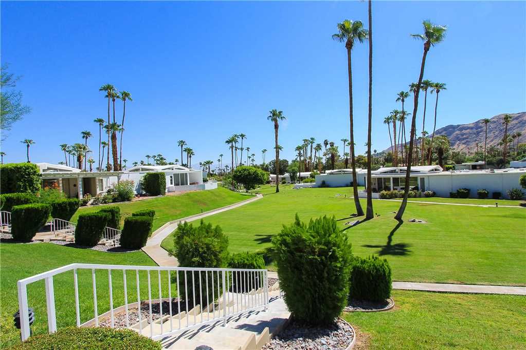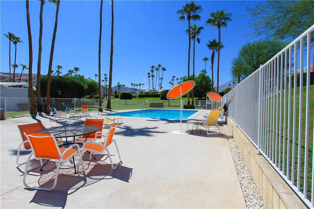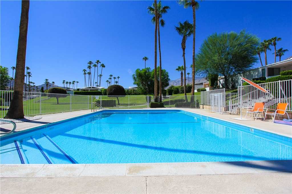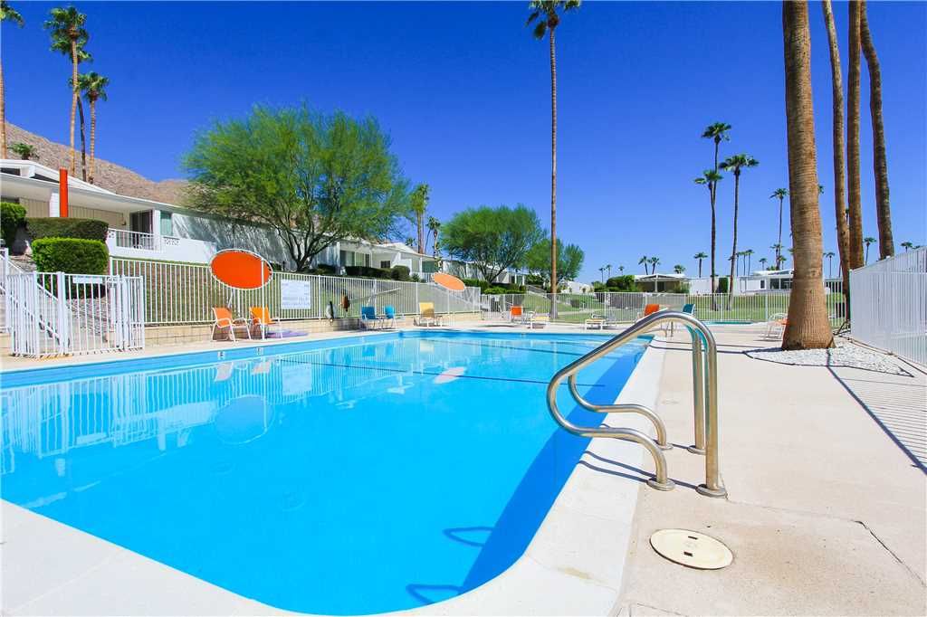 This midcentury Palm Springs condo community is known for having beautifully kept grounds with towering palm trees, well-maintained lush landscaping, and breathtaking mountains views. The community pool and spa are immaculate and are surrounded by mountain vistas. The atmosphere is peaceful, friendly, and very relaxed.