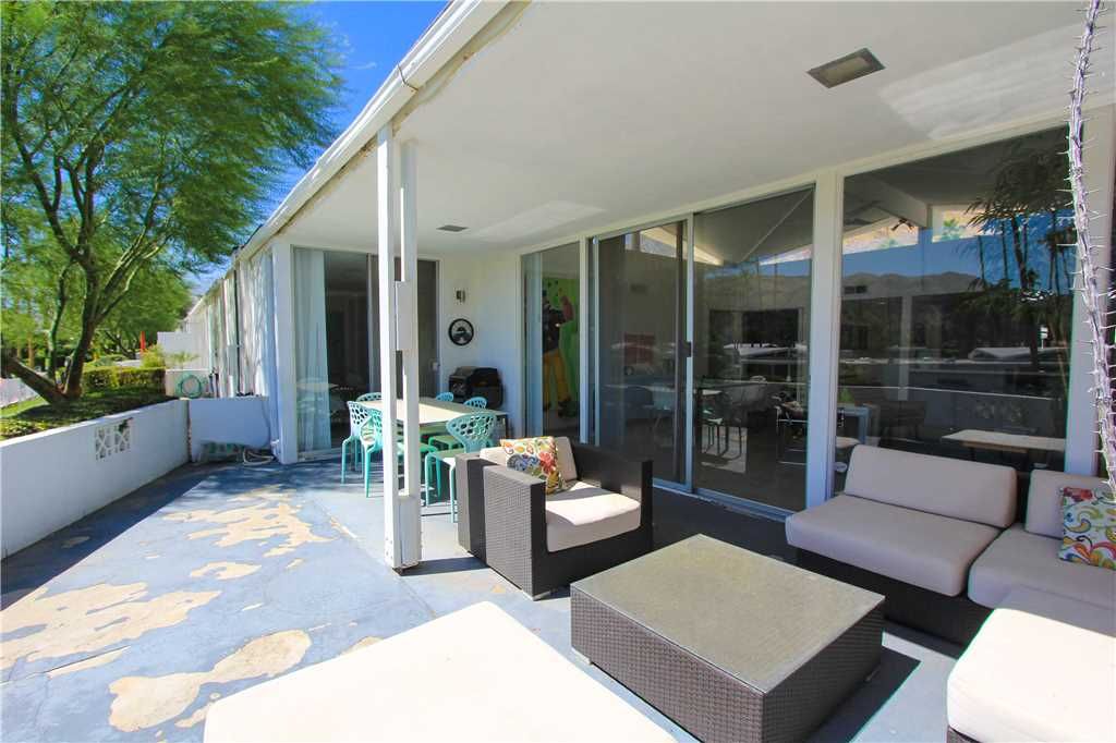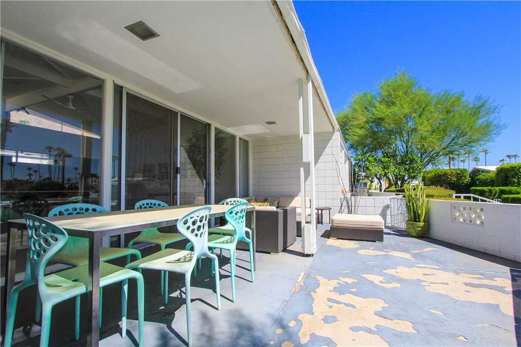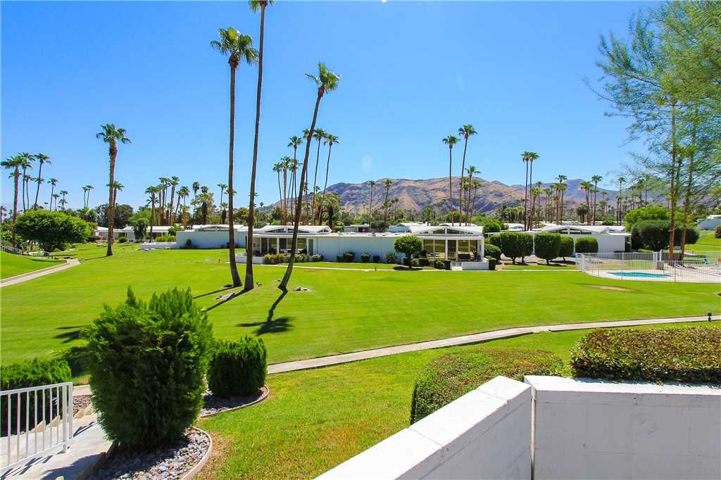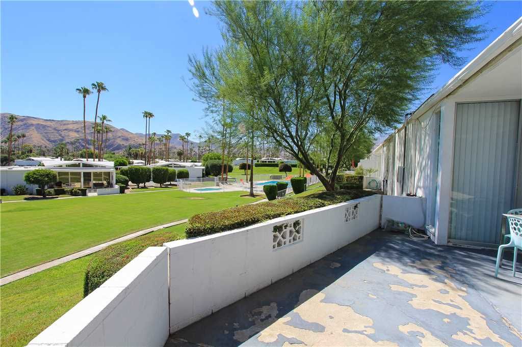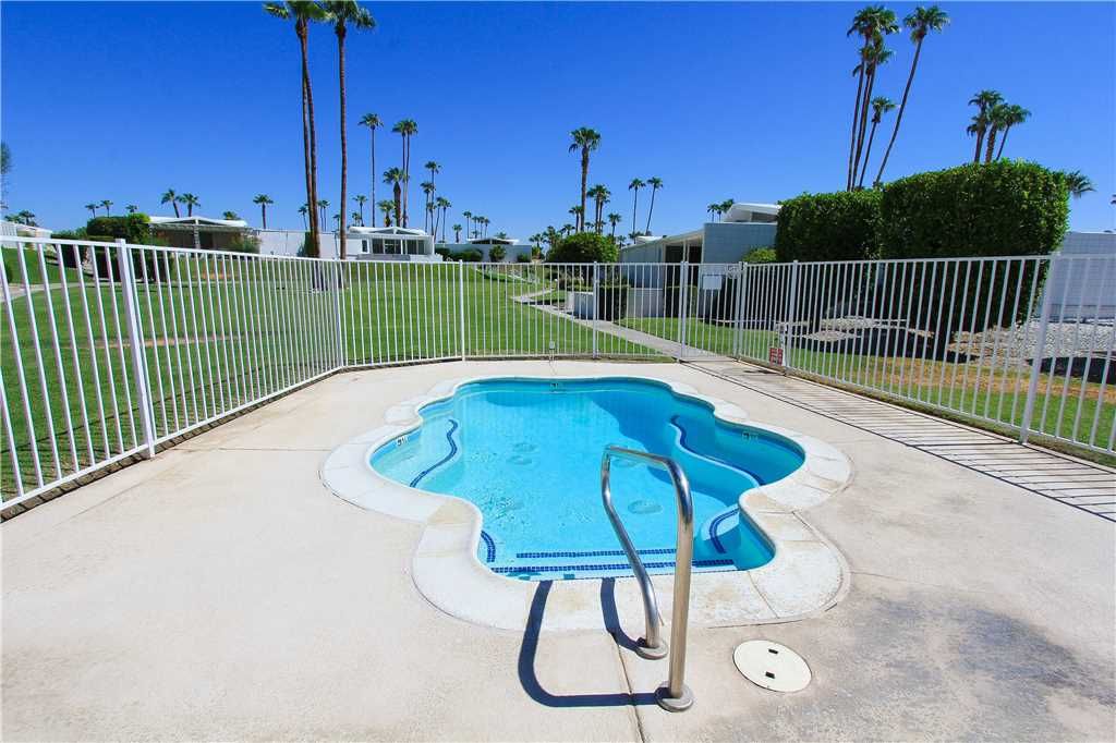 This midcentury Palm Springs condo community is known for having beautifully kept grounds with towering palm trees, well-maintained lush landscaping, and breathtaking mountains views. The community pool and spa are immaculate and are surrounded by mountain vistas. The atmosphere is peaceful, friendly, and very relaxed.