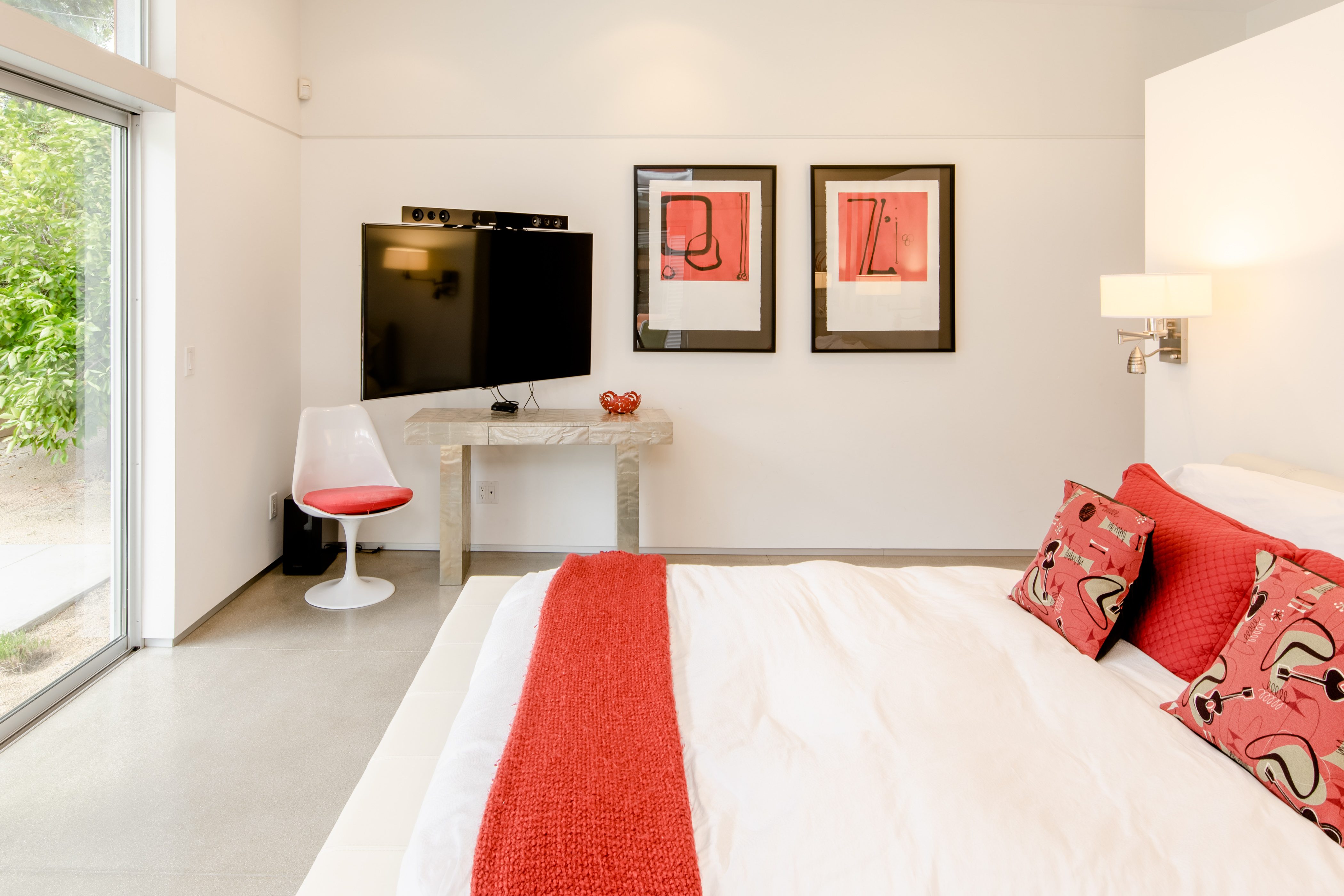 P.S. City ID #2311 Primary renter must be at least 25 years of age In the shadow of the mountain range, this ultra-modern contemporary home was chosen as the prestigious host location for the annual PS Art Museum's Architectural and Design Council. Lauded as next gen desert architecture/design, it has been featured in many magazines, design blogs and newspapers. Open concept living/dining, with European chef’s kitchen. Walls of movable glass. Master suite casita, with 2 additional bedrooms in main home. Heated in ground pool w/integrated spa and tanning shelf, water elements and fire features.Amenities
