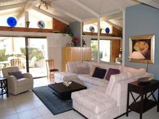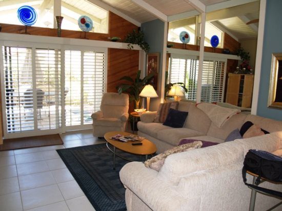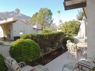 This is true Palm Springs hospitality, in the South Palm Canyon area of Palm Springs. Relax in style in this 2 Bedroom, 2 Bath Condo plus Den, with beautiful furnishings throughout. This is a 1st Floor Property with a Patio. The Patio is accessible from the Living Room and Master Bedroom, with plenty of space to relax with friends and family. The Kitchen is perfect for preparing a light snack or a family meal, enjoyed in the Dining Room. The Master Suite has a King-Size Bed. The Guest Bedroom has a queen size bed. The Bedrooms are separated by the beautifully furnished Living Room that is comfortable for all. The Den can sleep more guests, with a Queen sofa sleeper.