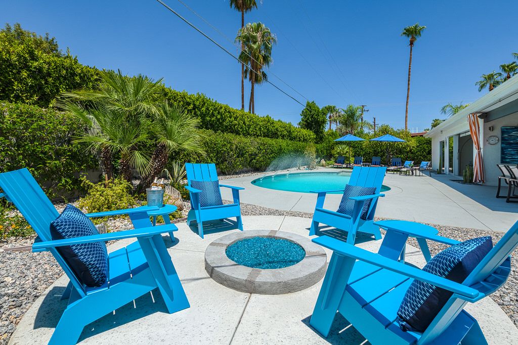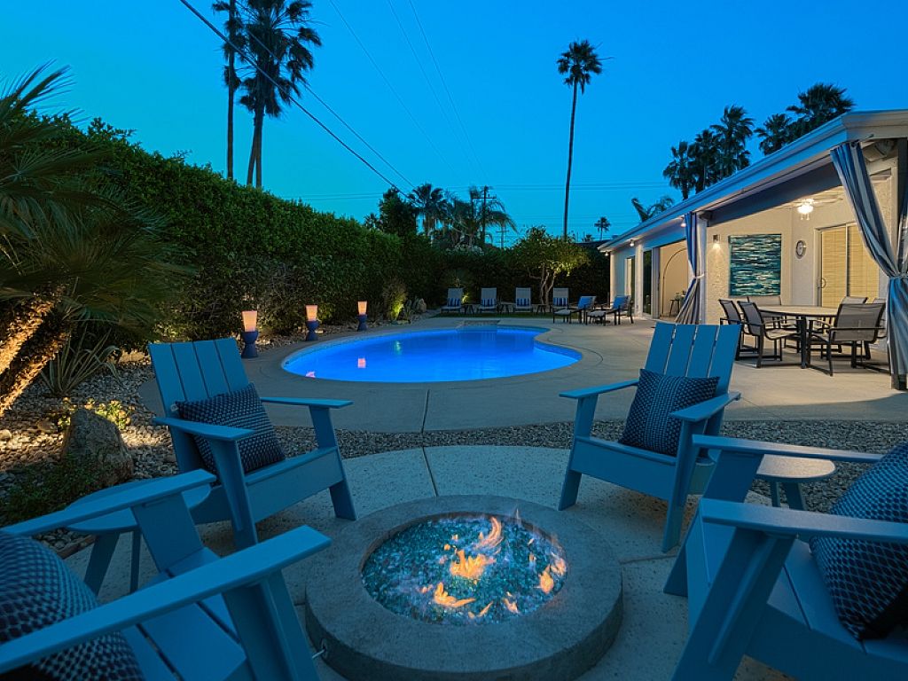 Spend the day relaxing by the classic 50's inspired kidney-shaped pool and the evening lingering around the fire pit. The fire pit includes surrounding seating and provides for hours of enjoyment under the stars. The beautiful desert landscape features a huge Saguaro cactus, various citrus trees and desert plants.