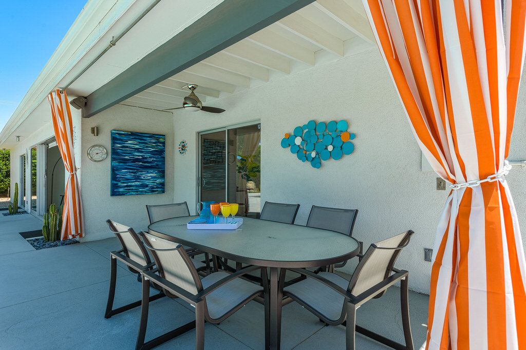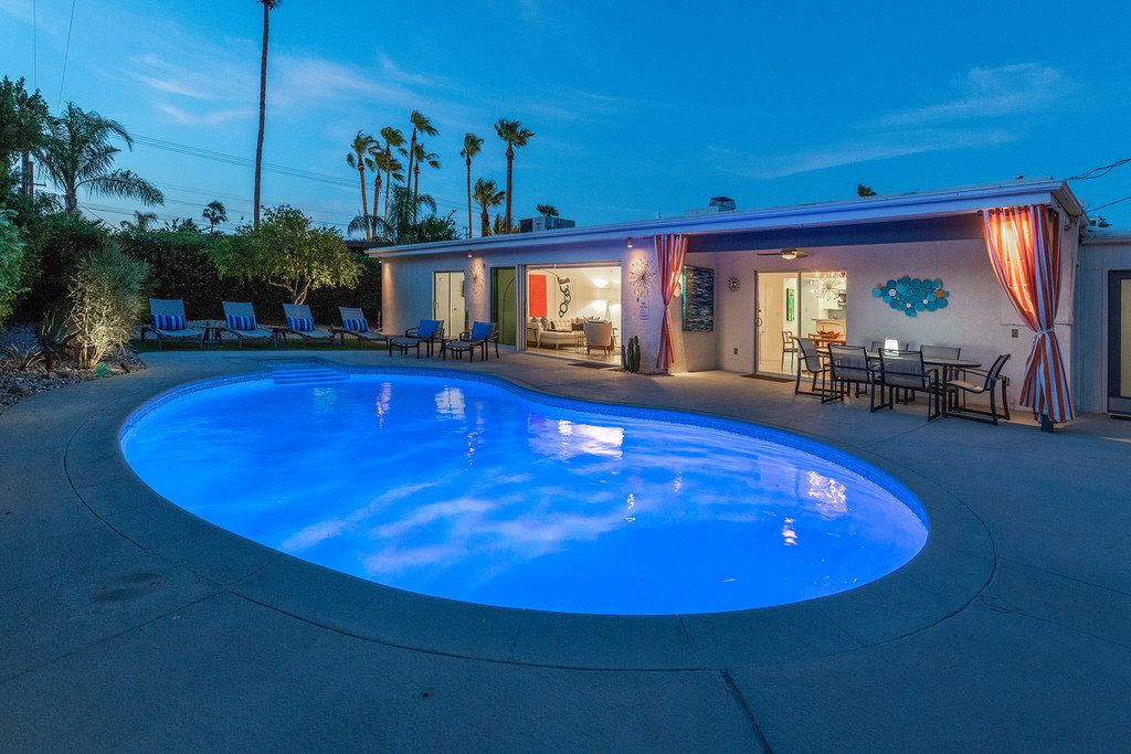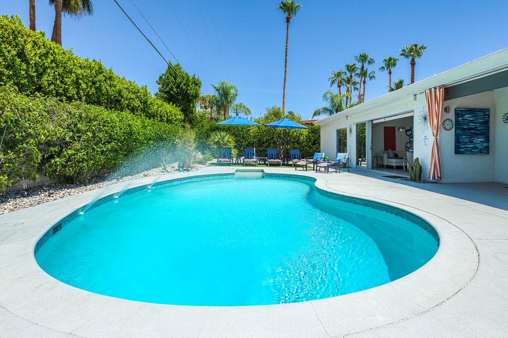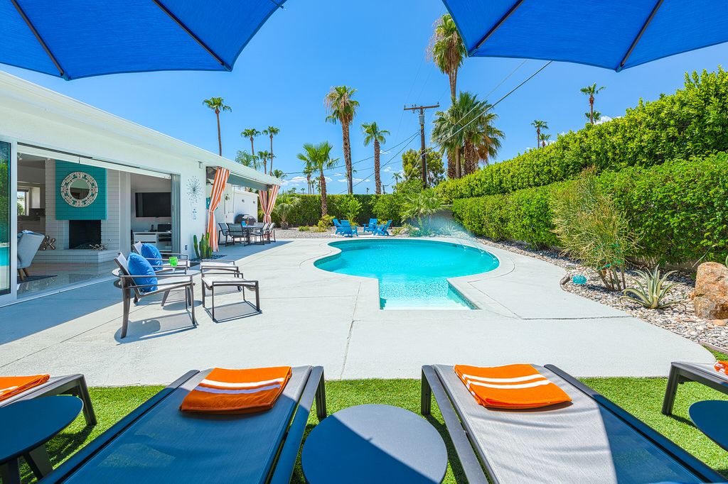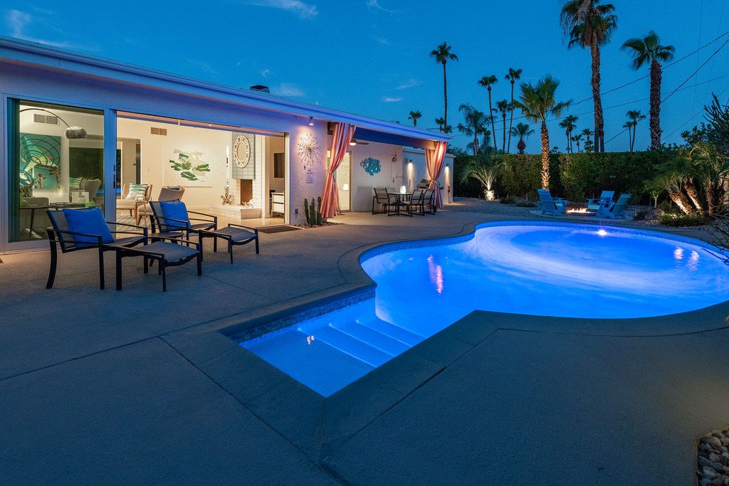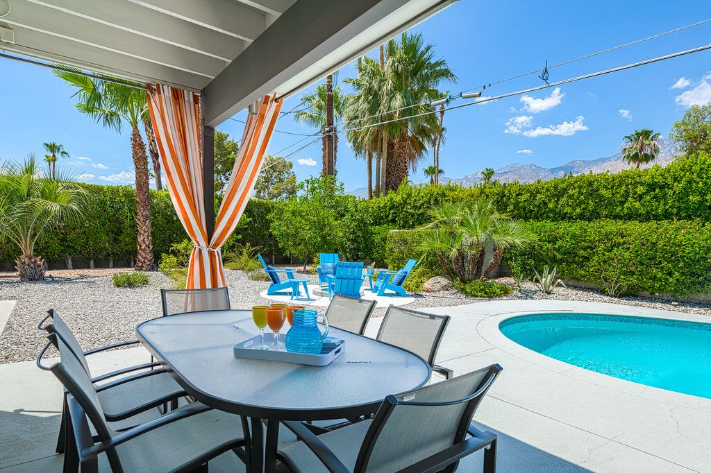 Come and enjoy the desert lifestyle in this impressively reimagined 1950's midcentury vacation home located in central Palm Springs. This delightful 3 bedroom pool home offers ultra-private grounds, wonderful views of the San Jacinto Mountains, palm trees and desert landscape. Completely renovated in 2017 this home provides an immaculate and welcoming vacation retreat decorated in the iconic midcentury style.