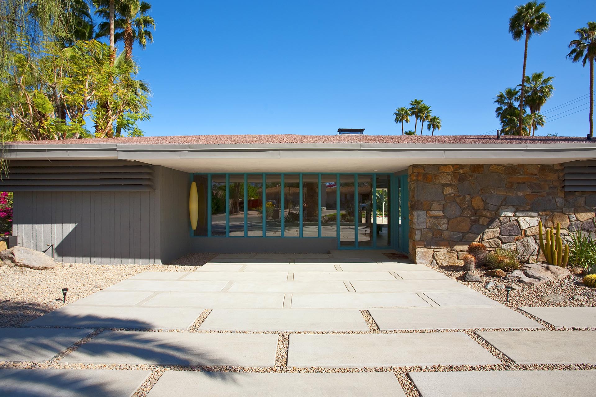 Palm Spring Perfection is a rare, 7 bedroom, 6.5 bath midcentury gem - circa 1956. This magnificent 5,000+ square foot home has been completely remodeled, yet still honors the homes original architecture. Open concept interior with walls of glass, original stone fireplace, brand new kitchen and bathrooms and comfortable bedrooms.