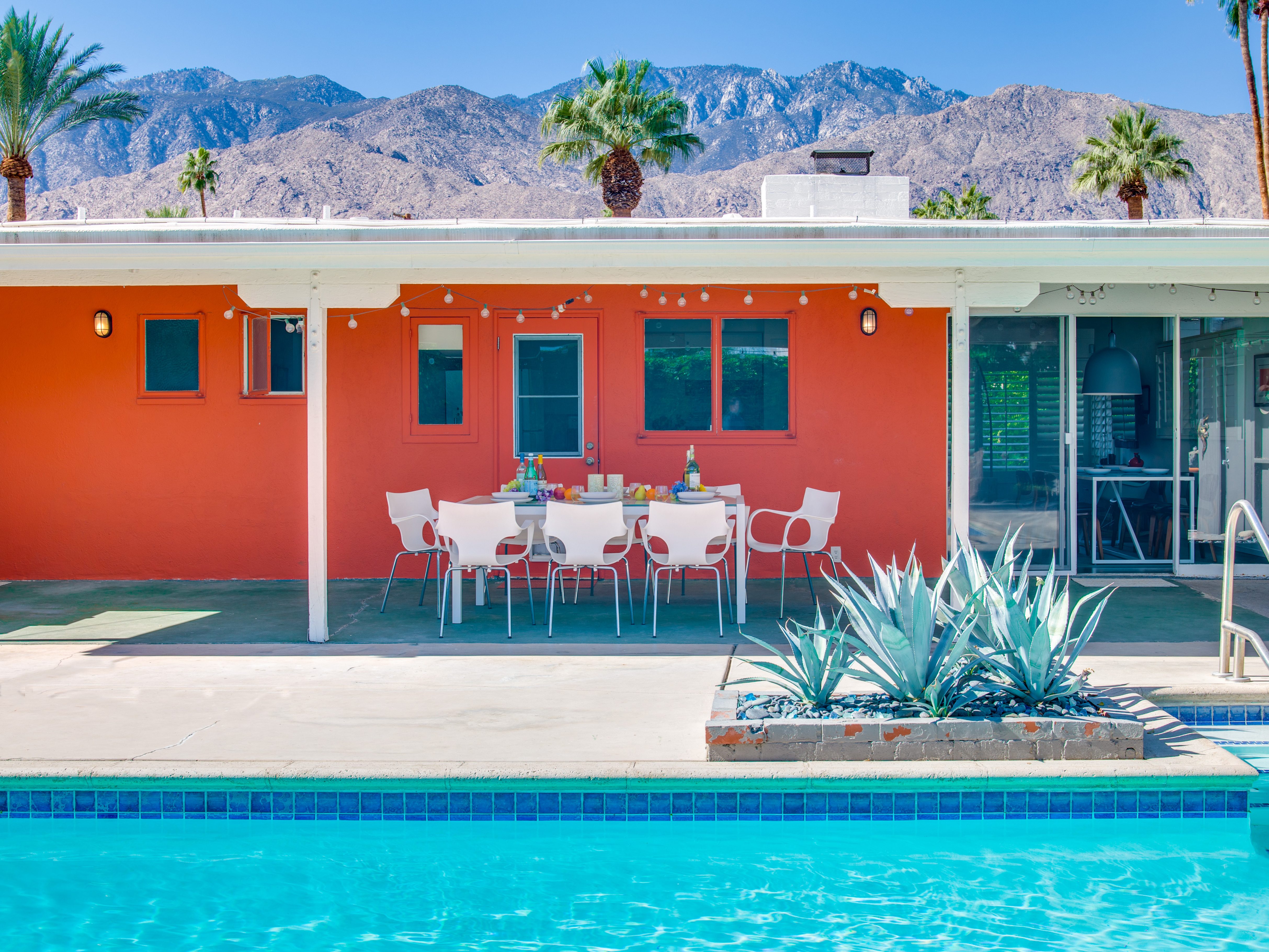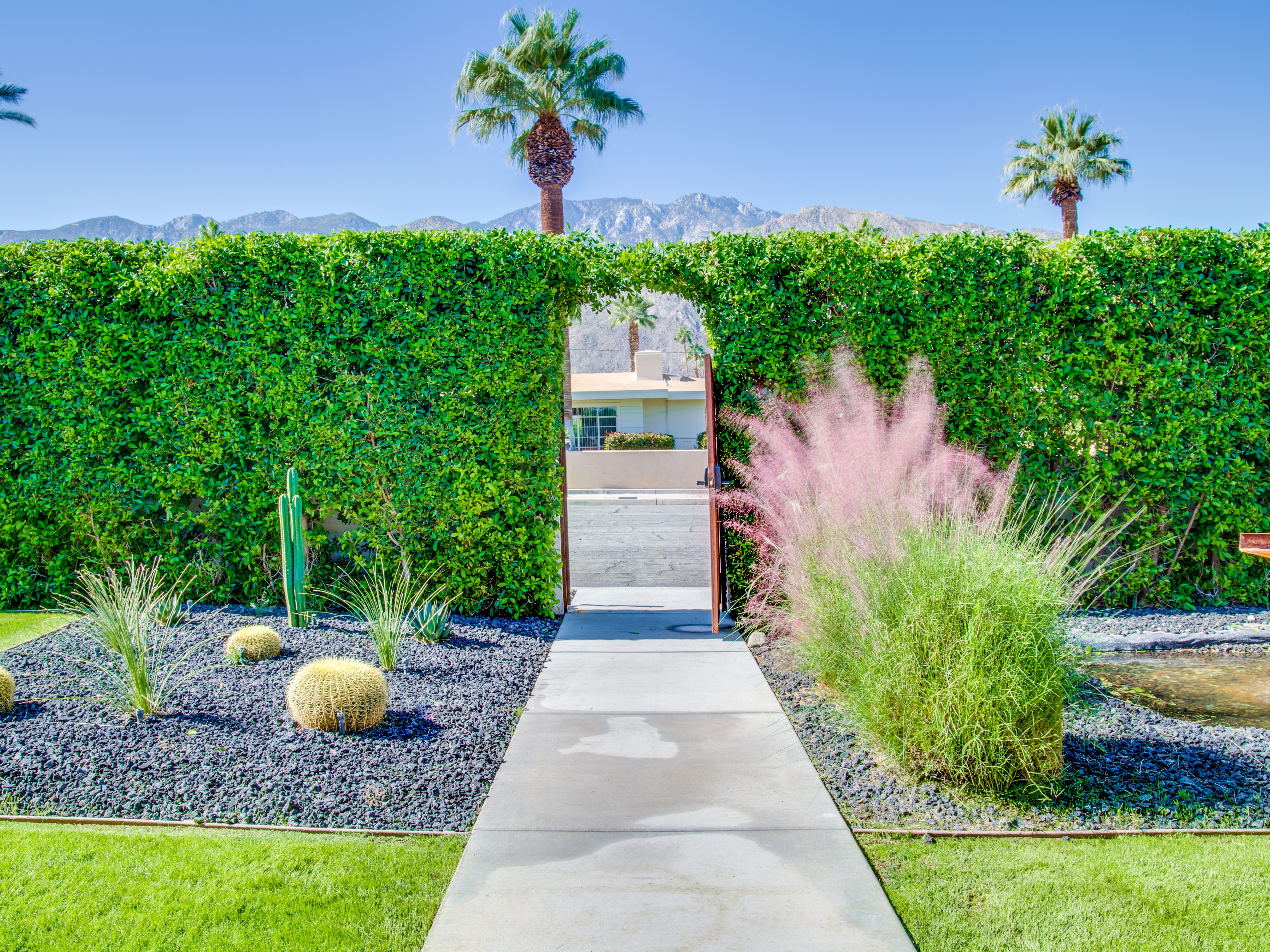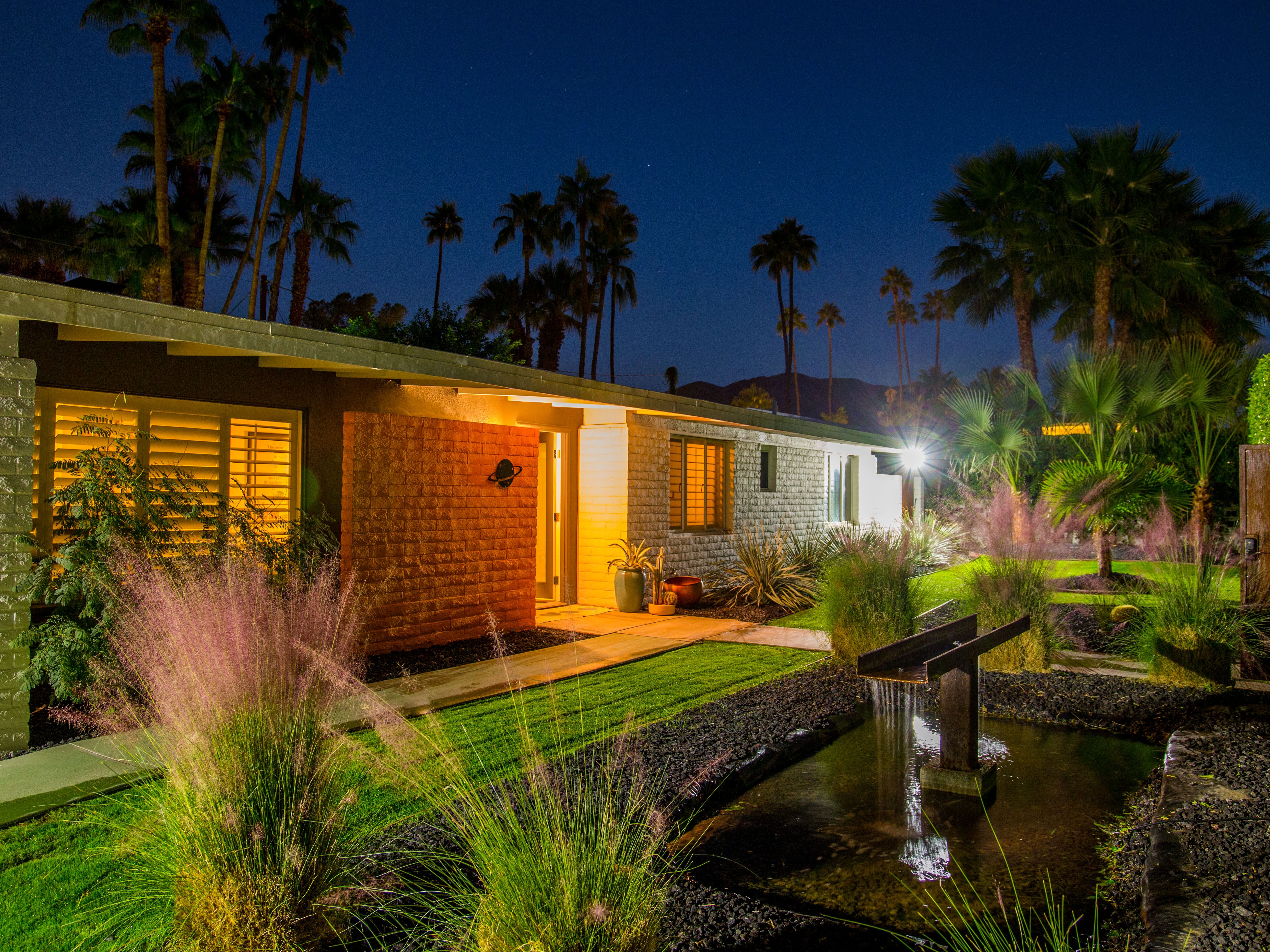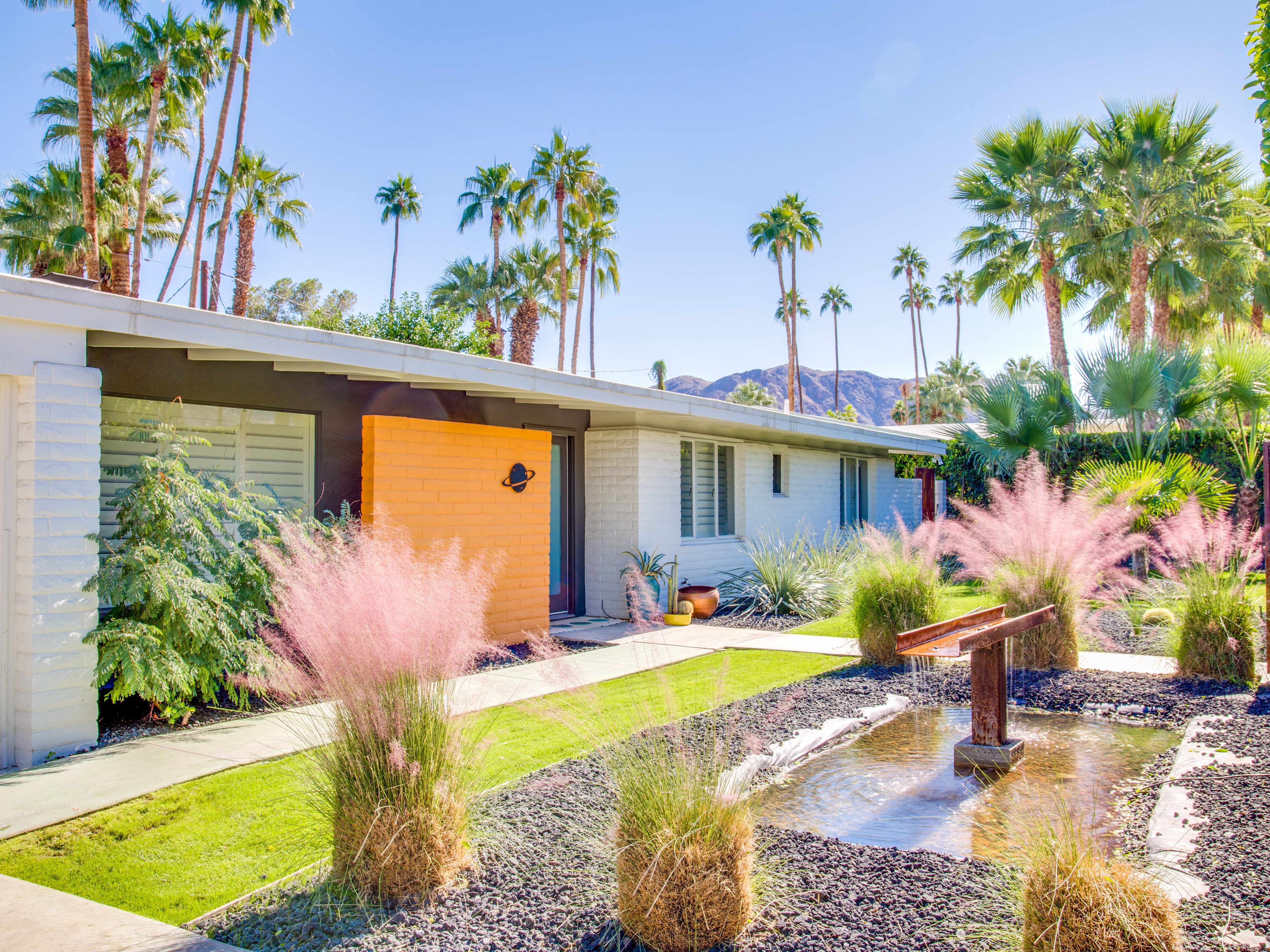 Very private mini-estate just a 2 minute walk to the world famous Palm Canyon Drive. Completely walled and gated for privacy. Spacious open concept floor plan. Three master suites, with one being a separate casita, plus den for occasional guests. Sleeps 6. P.S. City ID #2955 Primary renter must be at least 25 years of age. No Pets Allowed Very private mini-estate just a 2 minute walk to the world famous Palm Canyon Drive. Completely walled and gated for privacy. Spacious open concept floor plan. Three master suites plus den for occasional overflow guests. Sleeps 6. Resort-style yard with heated inground saltwater pool, integrated waterfall spa, firepit lounge, covered outdoor dining pavilion. Ping pong. Fabulous mountain views.The Property Owners have created the perfect Palm Springs vacation home rental where it’s all about relaxing in the sunshine. Beds: K,K,Q other Welcome to Citrus Twist, where iconic mid-century architecture meets a private setting and gorgeous mountain views to create a fabulous vacation paradise. This classic mid mod home (circa 1956) has been lovingly restored - respecting its architectural pedigree while updating it for the way we live today. 4 flat screen televisions, hi speed internet access, updated baths, gas fireplace, a misting system, and all the other modern conveniences are paired with period-inspired art and furnishings to create the quintessential Palm Springs experience. THE INTERIOR LIVING SPACES This home is bright, comfortable, impeccably clean and well-maintained. It is gorgeous in its simplicity - with an understated, unpretentious elegance throughout. You’ll find clean lines, high ceilings, an open concept floor plan and spectacular walls of glass that let the light pour in - revealing the very private pool yard. The living room, den, dining area and kitchen are all open to each other - providing enough space for your entire group to gather, relax and enjoy. SLEEPING QUARTERS Citrus Twist offers two King-sized master suites and one Queen size suite. Two in the main house and one in the separate casita. All of the bedrooms feature a comfortable hotel-quality mattress, a private bath, a flat screen television and ample storage. Each suite is furnished like a boutique hotel - warm, welcoming and comfortable. You are going to love it here. THE OUTDOOR LIVING SPACES Located on a quiet residential street in the historic Deepwell Neighborhood, this property captures the magic of Southern California glamour in true Palm Springs-style. The convenient city location is softened by privacy walls, mature plantings, towering palms and gorgeous landscaping that is drought-conscious and lush at the same time. The entire property has been walled and gated for privacy and is surrounded by a 10 foot tall mature ficus hedge. The backyard itself is a slice of heaven. So private, spacious and well-planned. The awesome mountain views through the swaying palm trees is pure magic. The heated inground saltwater pool with integrated waterfall spa is surrounded by the fire pit lounge and the covered dining pavilion. You’ll find a gas barbecue, plenty of poolside chaise lounges, and a rolling green lawn that is great for kids, pets and lawn games. OPTIONAL CONCIERGE SERVICES Private chef, pre-arrival grocery stocking, daily and mid-stay maid service, and poolside massage can be arranged with three weeks advance notice. Advance reservations strongly advised. ...Amenities