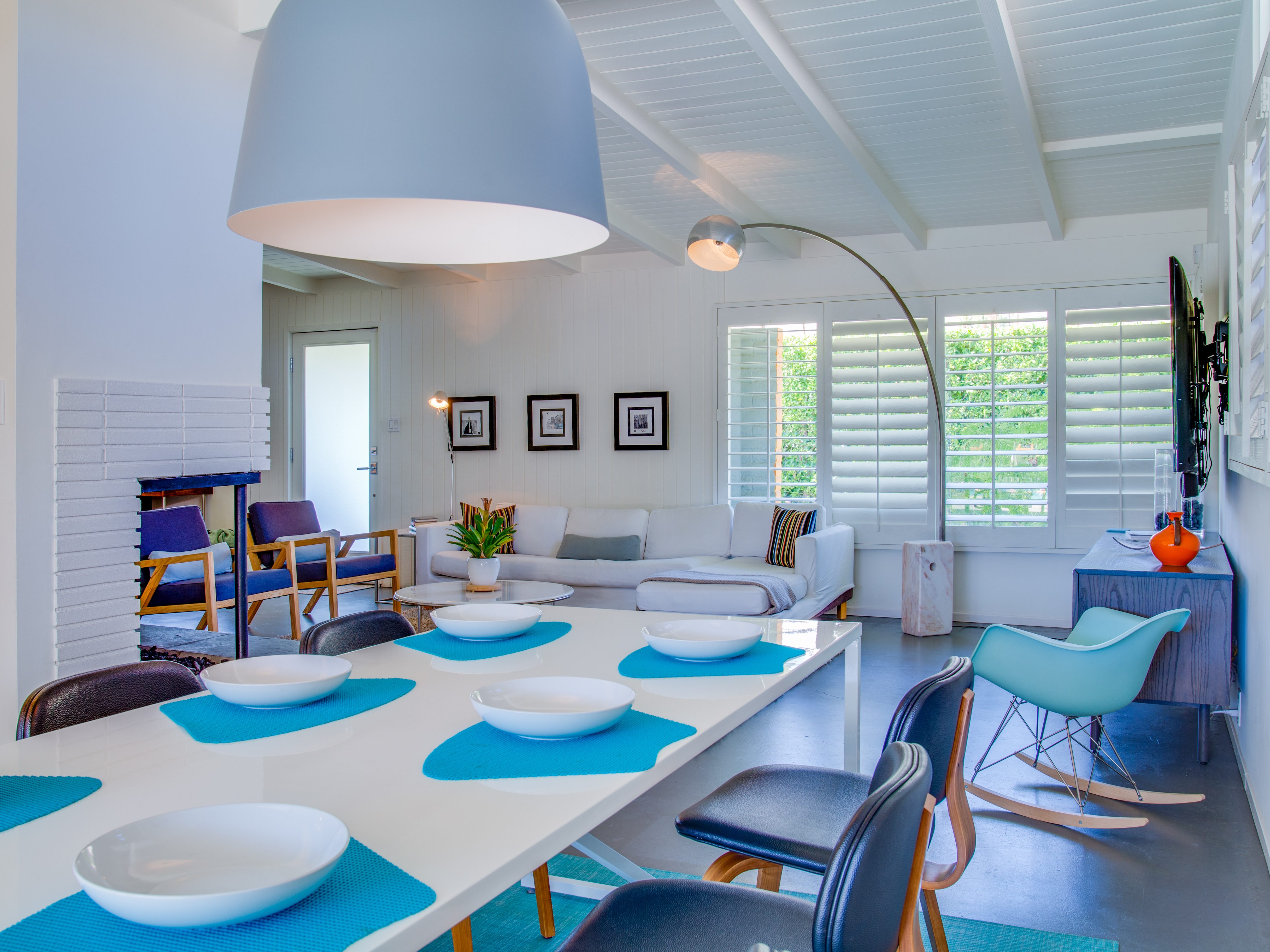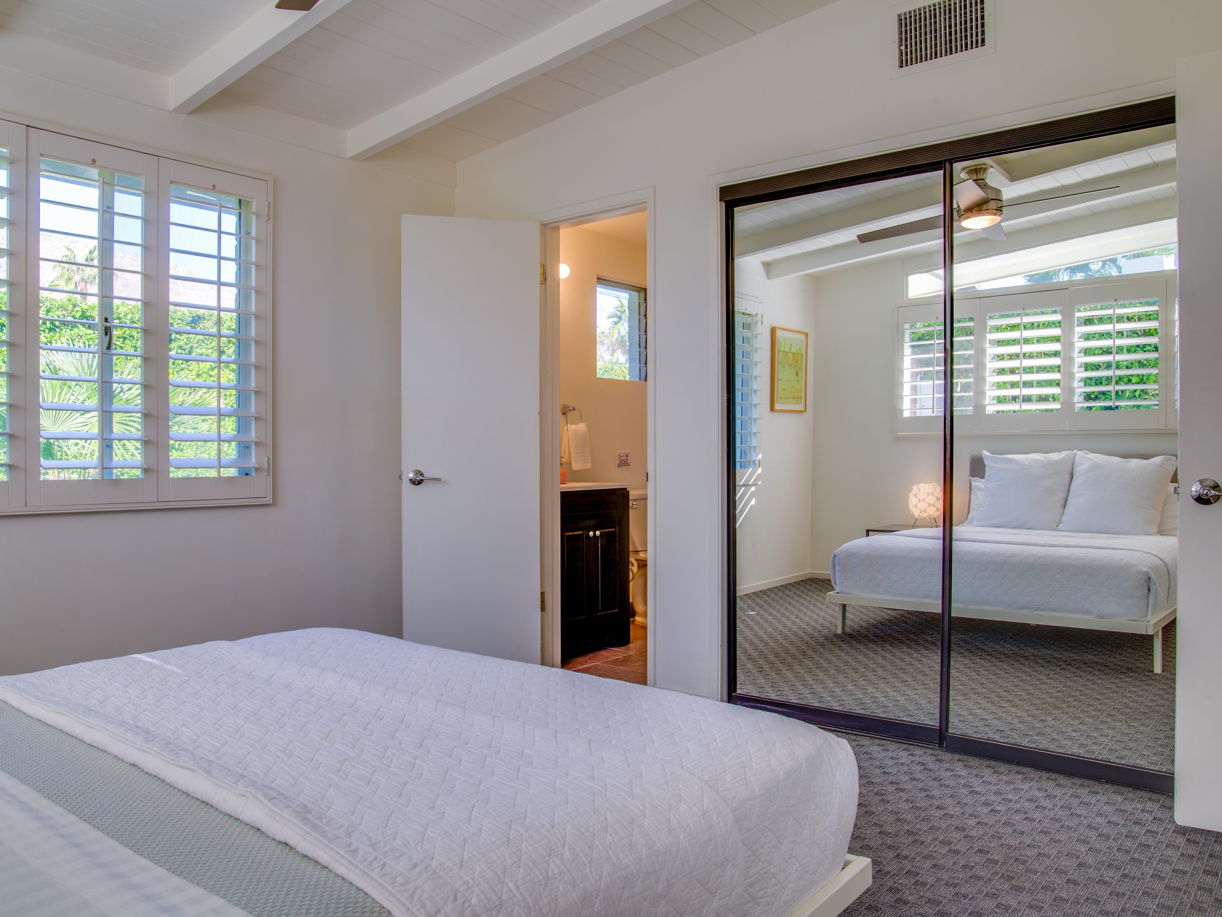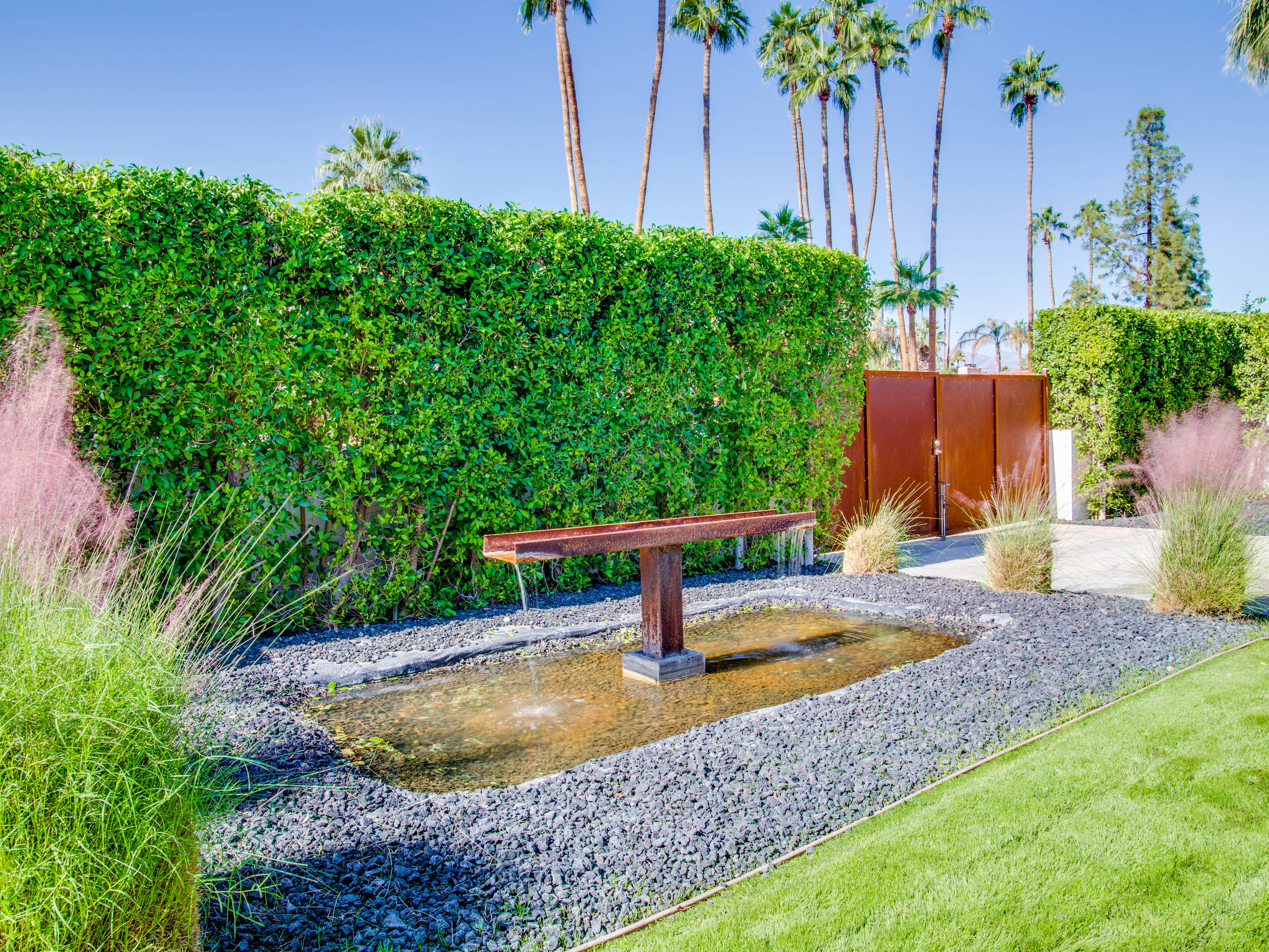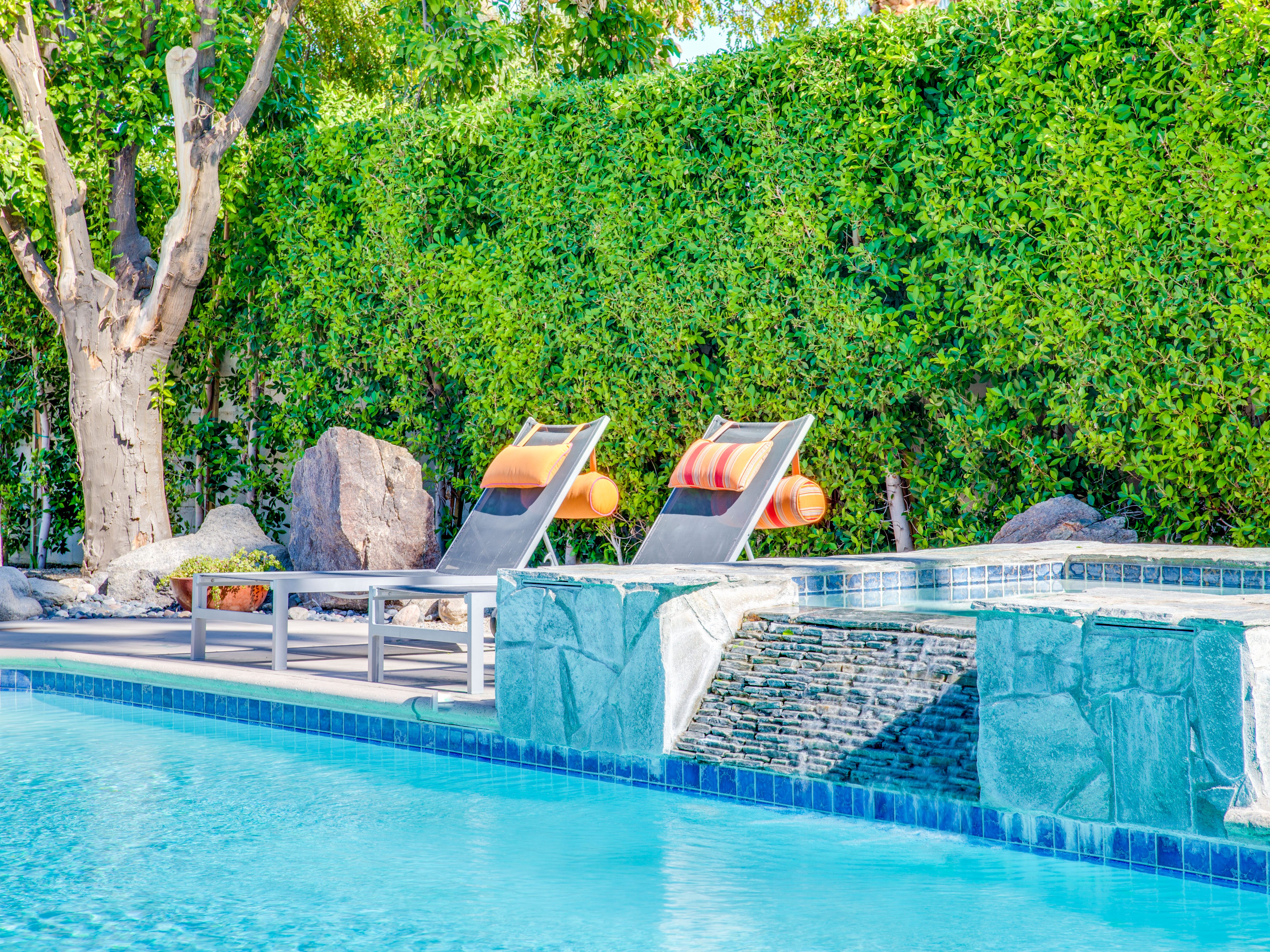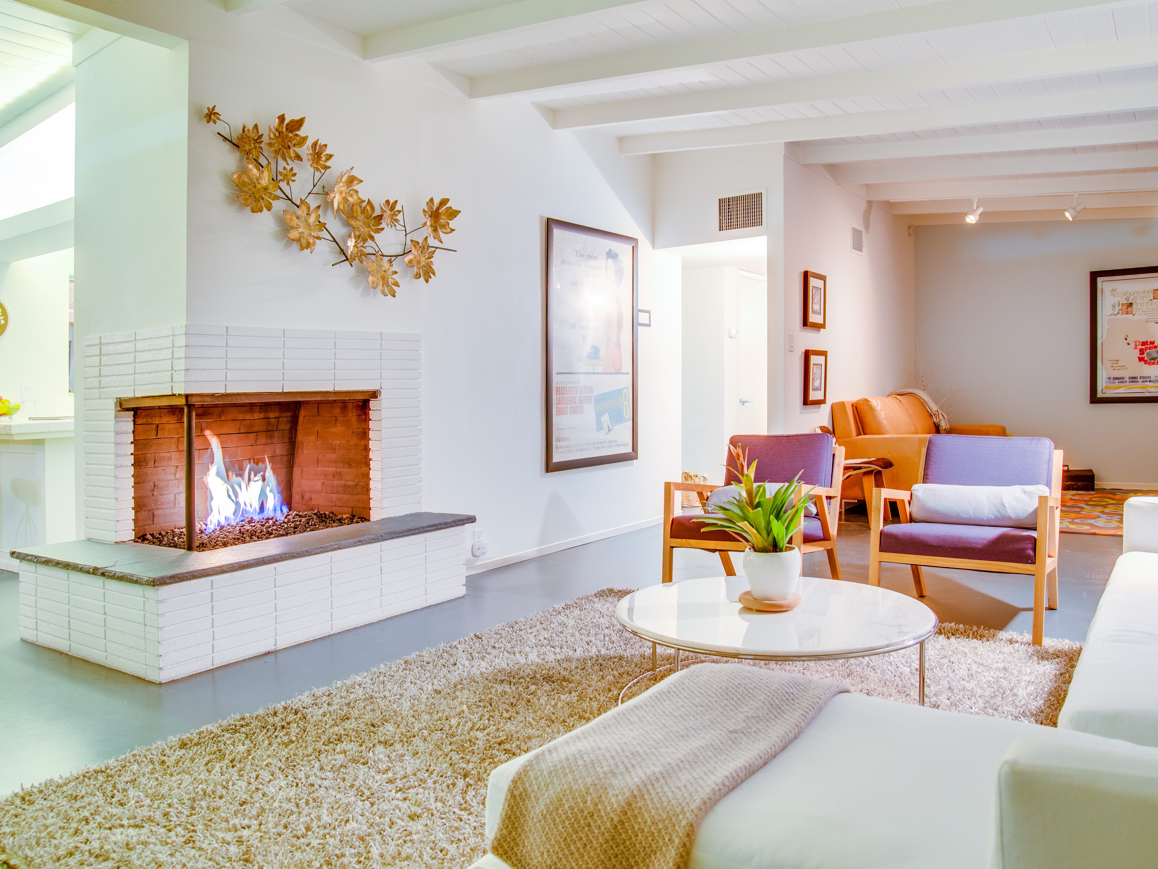 Very private mini-estate just a 2 minute walk to the world famous Palm Canyon Drive. Completely walled and gated for privacy. Spacious open concept floor plan. Three master suites, with one being a separate casita, plus den for occasional guests. Sleeps 6. P.S. City ID #2955 Primary renter must be at least 25 years of age. No Pets Allowed Very private mini-estate just a 2 minute walk to the world famous Palm Canyon Drive. Completely walled and gated for privacy. Spacious open concept floor plan. Three master suites plus den for occasional overflow guests. Sleeps 6. Resort-style yard with heated inground saltwater pool, integrated waterfall spa, firepit lounge, covered outdoor dining pavilion. Ping pong. Fabulous mountain views.The Property Owners have created the perfect Palm Springs vacation home rental where it’s all about relaxing in the sunshine. Beds: K,K,Q other Welcome to Citrus Twist, where iconic mid-century architecture meets a private setting and gorgeous mountain views to create a fabulous vacation paradise. This classic mid mod home (circa 1956) has been lovingly restored - respecting its architectural pedigree while updating it for the way we live today. 4 flat screen televisions, hi speed internet access, updated baths, gas fireplace, a misting system, and all the other modern conveniences are paired with period-inspired art and furnishings to create the quintessential Palm Springs experience. THE INTERIOR LIVING SPACES This home is bright, comfortable, impeccably clean and well-maintained. It is gorgeous in its simplicity - with an understated, unpretentious elegance throughout. You’ll find clean lines, high ceilings, an open concept floor plan and spectacular walls of glass that let the light pour in - revealing the very private pool yard. The living room, den, dining area and kitchen are all open to each other - providing enough space for your entire group to gather, relax and enjoy. SLEEPING QUARTERS Citrus Twist offers two King-sized master suites and one Queen size suite. Two in the main house and one in the separate casita. All of the bedrooms feature a comfortable hotel-quality mattress, a private bath, a flat screen television and ample storage. Each suite is furnished like a boutique hotel - warm, welcoming and comfortable. You are going to love it here. THE OUTDOOR LIVING SPACES Located on a quiet residential street in the historic Deepwell Neighborhood, this property captures the magic of Southern California glamour in true Palm Springs-style. The convenient city location is softened by privacy walls, mature plantings, towering palms and gorgeous landscaping that is drought-conscious and lush at the same time. The entire property has been walled and gated for privacy and is surrounded by a 10 foot tall mature ficus hedge. The backyard itself is a slice of heaven. So private, spacious and well-planned. The awesome mountain views through the swaying palm trees is pure magic. The heated inground saltwater pool with integrated waterfall spa is surrounded by the fire pit lounge and the covered dining pavilion. You’ll find a gas barbecue, plenty of poolside chaise lounges, and a rolling green lawn that is great for kids, pets and lawn games. OPTIONAL CONCIERGE SERVICES Private chef, pre-arrival grocery stocking, daily and mid-stay maid service, and poolside massage can be arranged with three weeks advance notice. Advance reservations strongly advised. ...Amenities