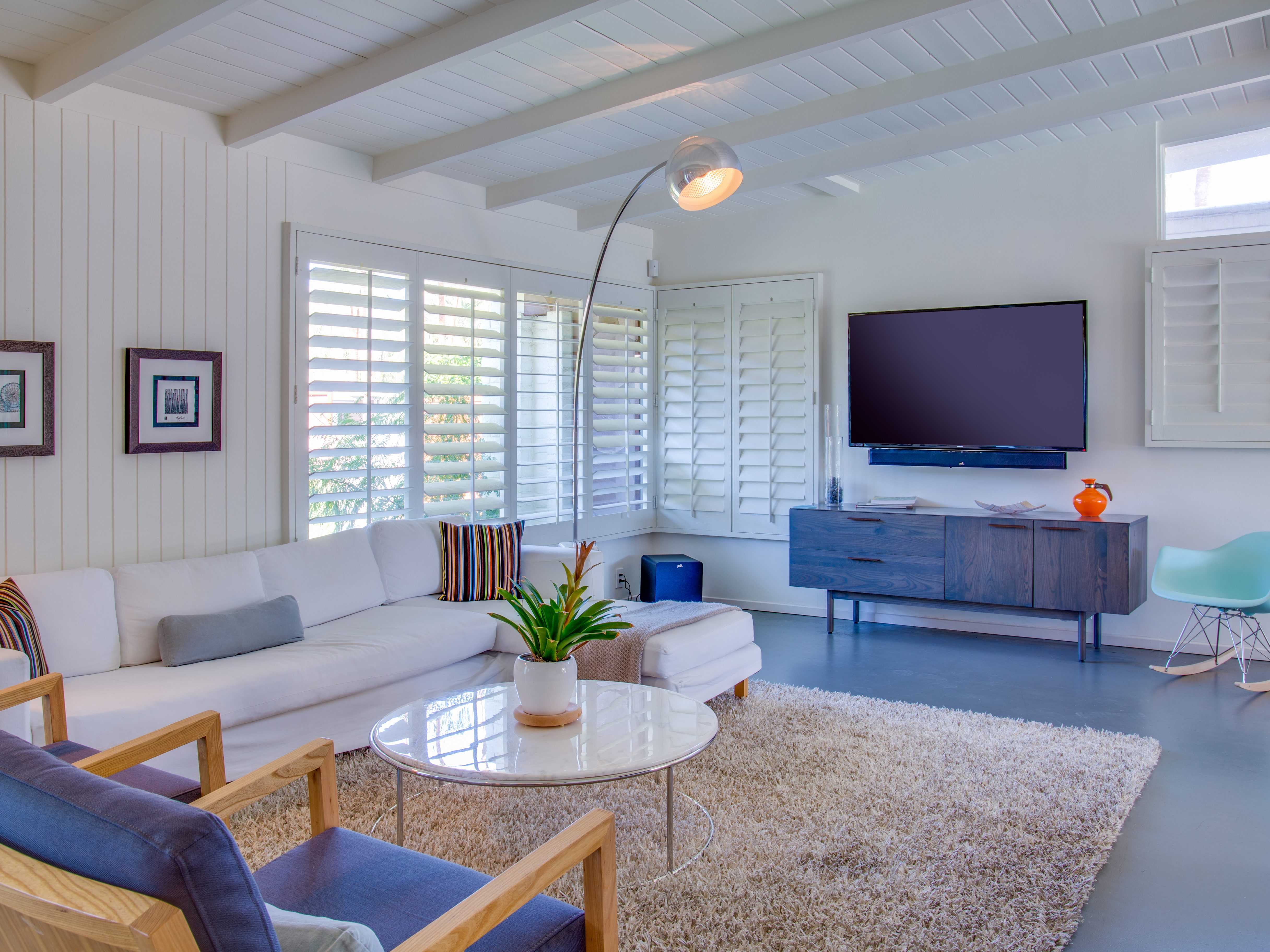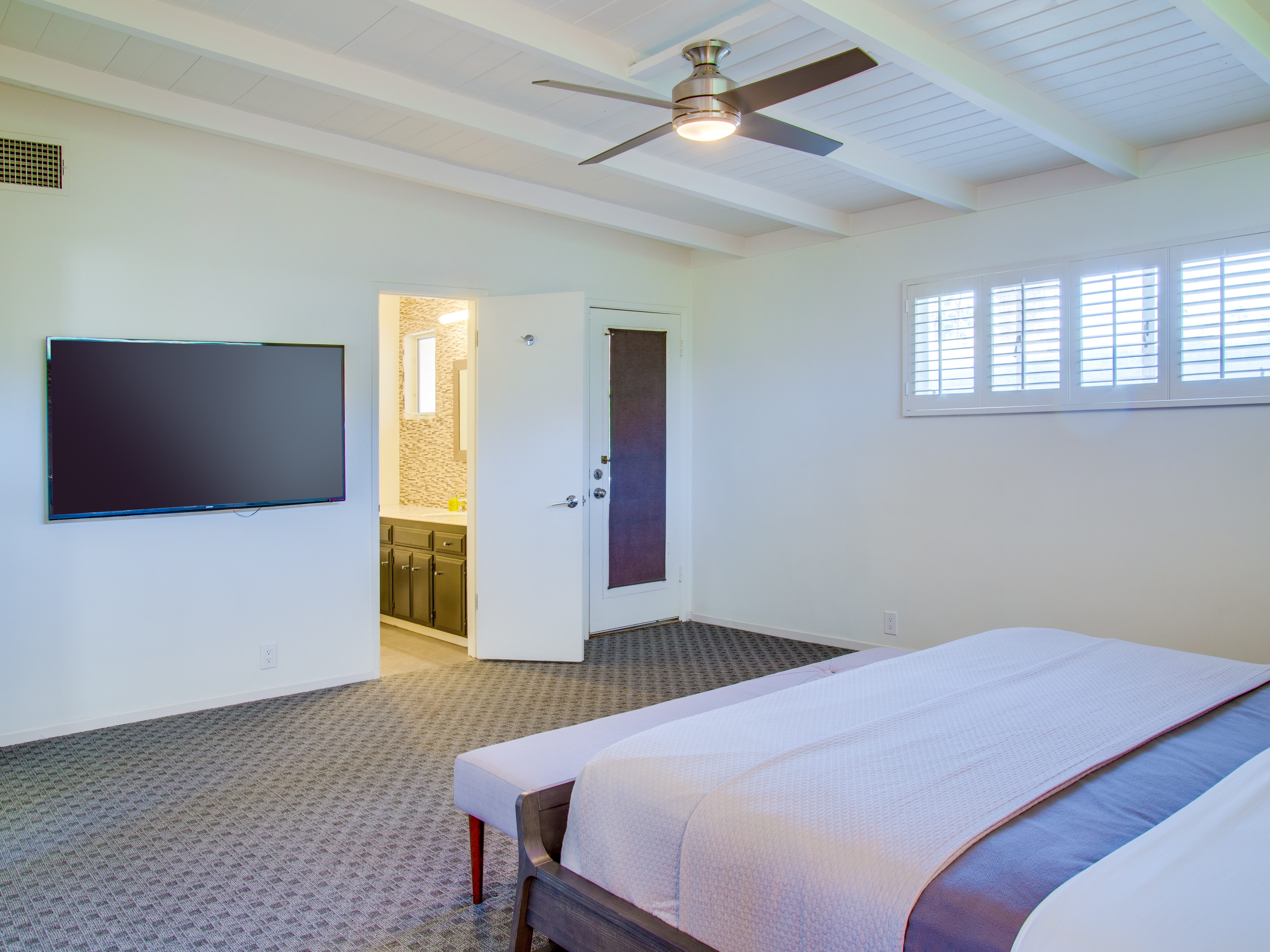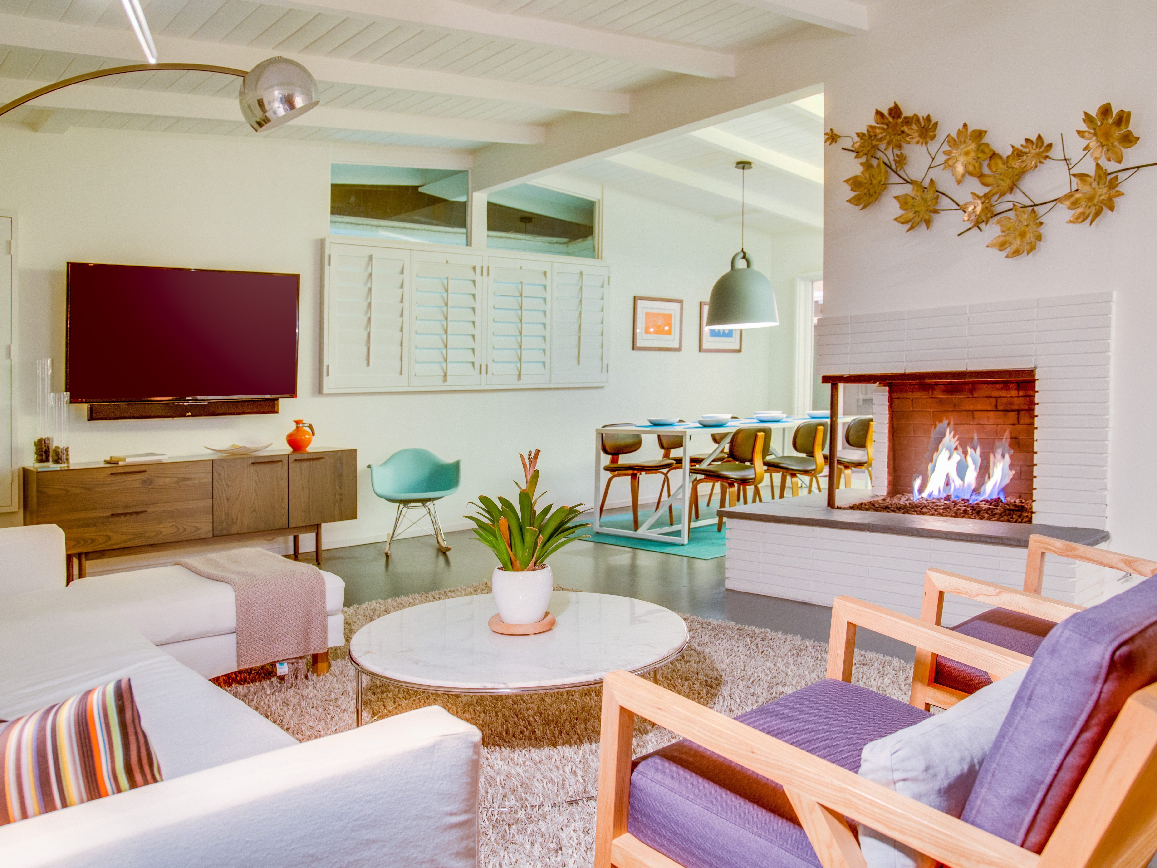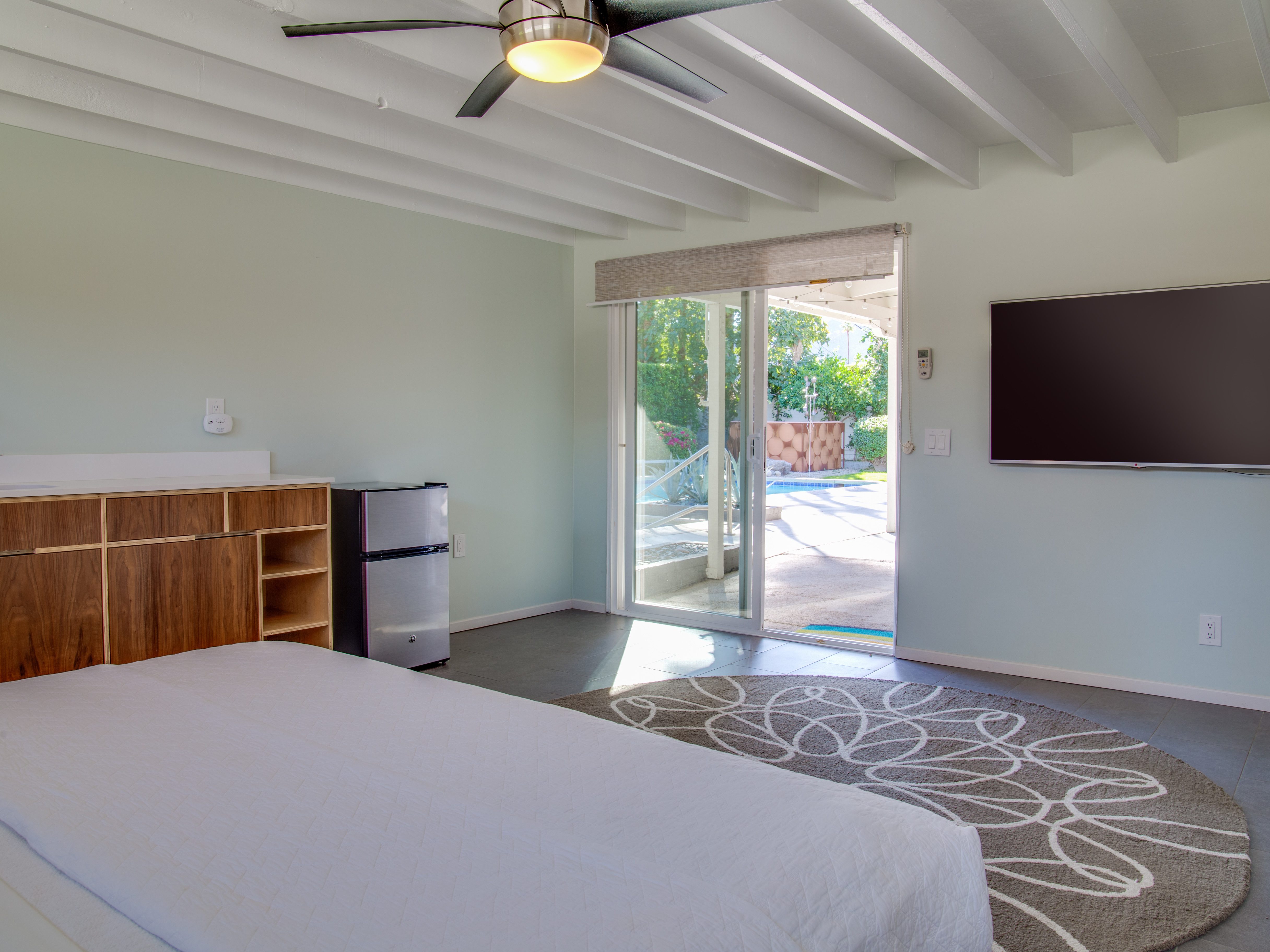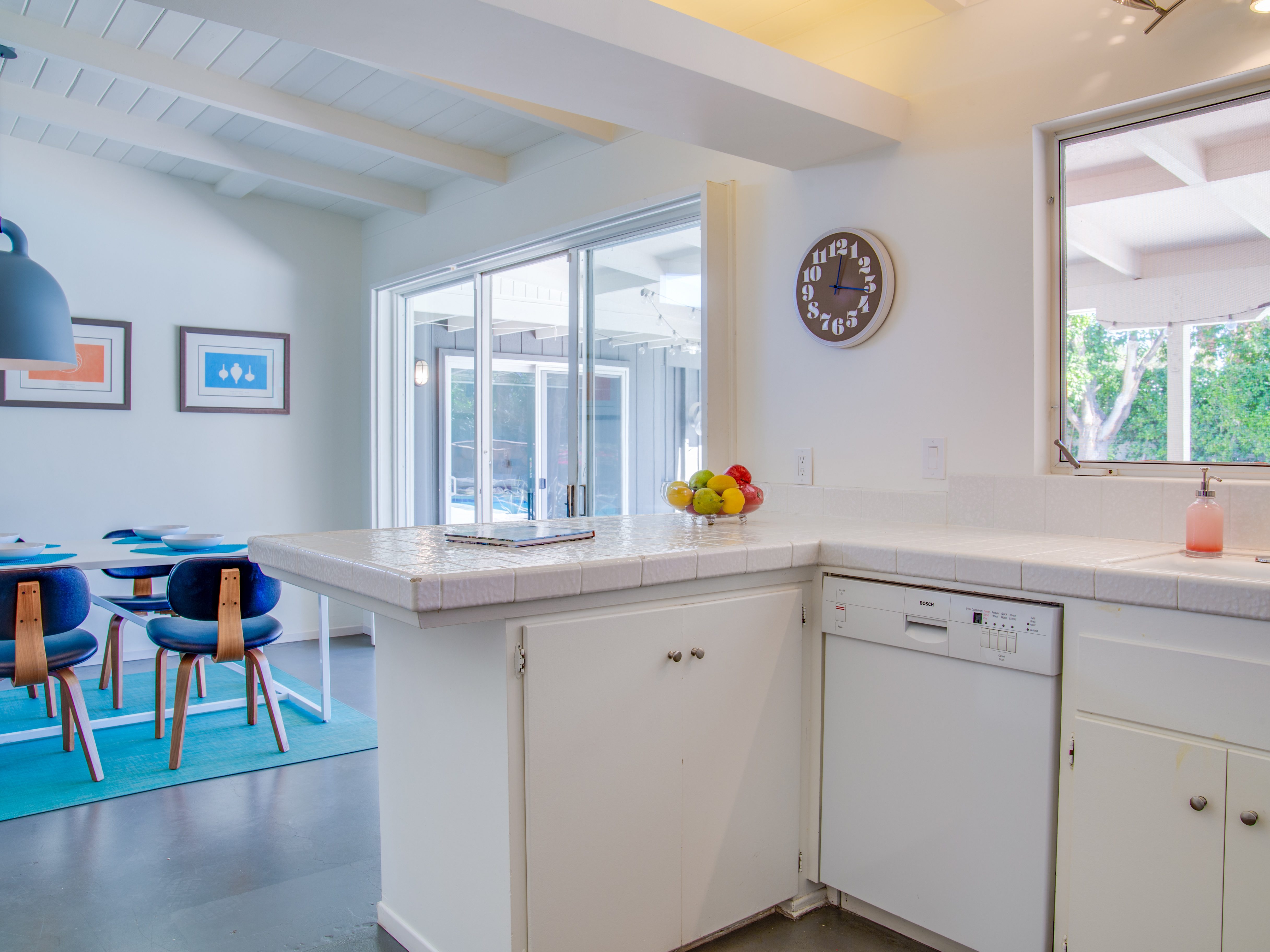 Very private mini-estate just a 2 minute walk to the world famous Palm Canyon Drive. Completely walled and gated for privacy. Spacious open concept floor plan. Three master suites, with one being a separate casita, plus den for occasional guests. Sleeps 6. P.S. City ID #2955 Primary renter must be at least 25 years of age. No Pets Allowed Very private mini-estate just a 2 minute walk to the world famous Palm Canyon Drive. Completely walled and gated for privacy. Spacious open concept floor plan. Three master suites plus den for occasional overflow guests. Sleeps 6. Resort-style yard with heated inground saltwater pool, integrated waterfall spa, firepit lounge, covered outdoor dining pavilion. Ping pong. Fabulous mountain views.The Property Owners have created the perfect Palm Springs vacation home rental where it’s all about relaxing in the sunshine. Beds: K,K,Q other Welcome to Citrus Twist, where iconic mid-century architecture meets a private setting and gorgeous mountain views to create a fabulous vacation paradise. This classic mid mod home (circa 1956) has been lovingly restored - respecting its architectural pedigree while updating it for the way we live today. 4 flat screen televisions, hi speed internet access, updated baths, gas fireplace, a misting system, and all the other modern conveniences are paired with period-inspired art and furnishings to create the quintessential Palm Springs experience. THE INTERIOR LIVING SPACES This home is bright, comfortable, impeccably clean and well-maintained. It is gorgeous in its simplicity - with an understated, unpretentious elegance throughout. You’ll find clean lines, high ceilings, an open concept floor plan and spectacular walls of glass that let the light pour in - revealing the very private pool yard. The living room, den, dining area and kitchen are all open to each other - providing enough space for your entire group to gather, relax and enjoy. SLEEPING QUARTERS Citrus Twist offers two King-sized master suites and one Queen size suite. Two in the main house and one in the separate casita. All of the bedrooms feature a comfortable hotel-quality mattress, a private bath, a flat screen television and ample storage. Each suite is furnished like a boutique hotel - warm, welcoming and comfortable. You are going to love it here. THE OUTDOOR LIVING SPACES Located on a quiet residential street in the historic Deepwell Neighborhood, this property captures the magic of Southern California glamour in true Palm Springs-style. The convenient city location is softened by privacy walls, mature plantings, towering palms and gorgeous landscaping that is drought-conscious and lush at the same time. The entire property has been walled and gated for privacy and is surrounded by a 10 foot tall mature ficus hedge. The backyard itself is a slice of heaven. So private, spacious and well-planned. The awesome mountain views through the swaying palm trees is pure magic. The heated inground saltwater pool with integrated waterfall spa is surrounded by the fire pit lounge and the covered dining pavilion. You’ll find a gas barbecue, plenty of poolside chaise lounges, and a rolling green lawn that is great for kids, pets and lawn games. OPTIONAL CONCIERGE SERVICES Private chef, pre-arrival grocery stocking, daily and mid-stay maid service, and poolside massage can be arranged with three weeks advance notice. Advance reservations strongly advised. ...Amenities