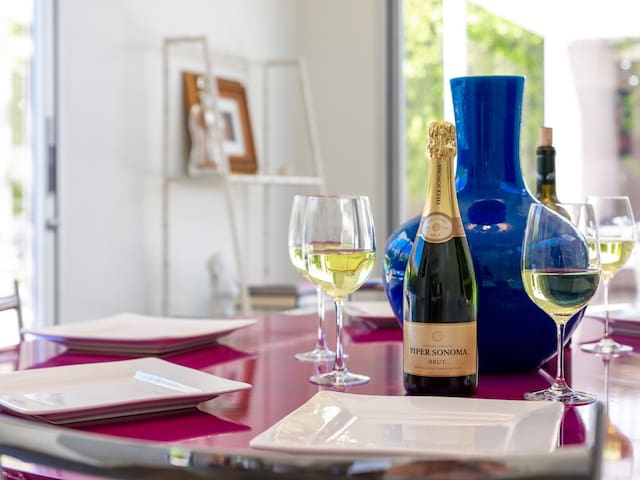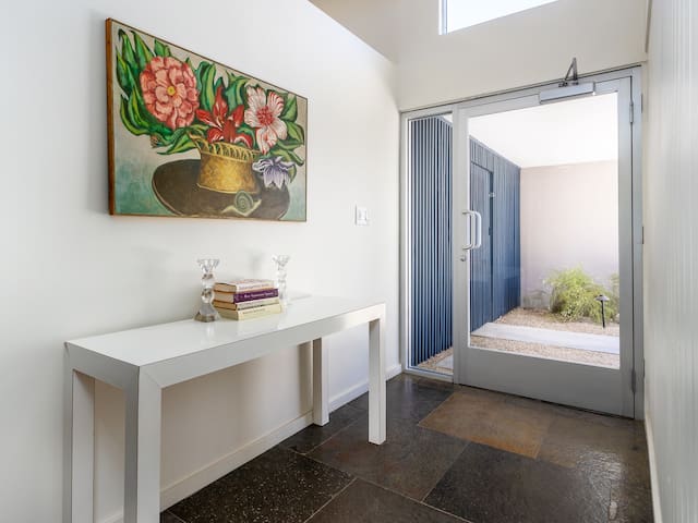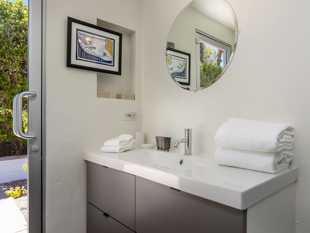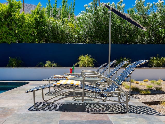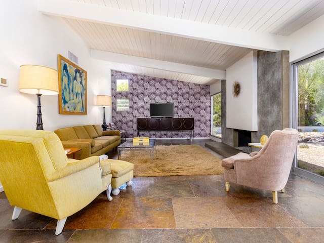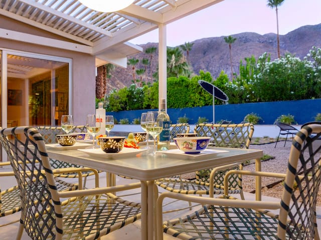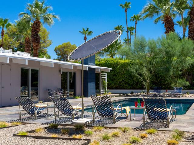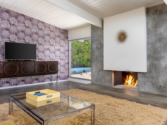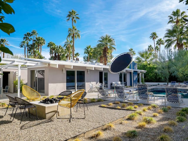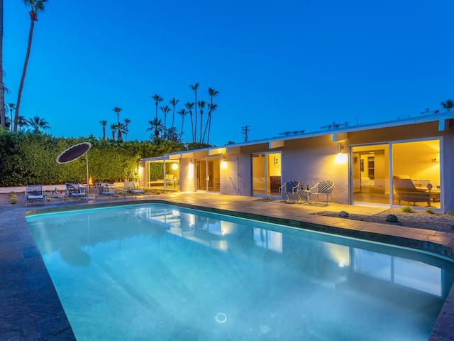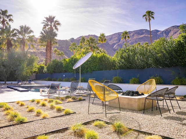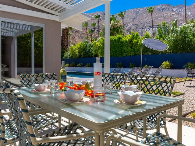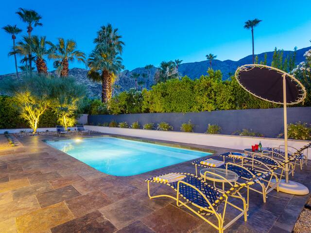 Stunning midcentury home in the coveted Vista Las Palmas neighborhood. Open concept floor plan. Very private yard with pool, firepit lounge, covered outdoor dining pavilion, BBQ and stunning mountain views. Walk to town. Beds: K,Q,Q P.S. City ID #3578 **Primary renter must be a minimum of 25 years of age **GUESTS WILL BE REQUIRED TO SIGN A SEPARATE RENTAL AGREEMENT WITH HOST PER CITY REQUIREMENTS** to rent** Sprawling estate home on Millionaire’s Row in the upscale Midcentury neighborhood of Vista Las Palmas in Palm Springs. Open concept floor plan. Mid Mod-inspired art and furnishings. Very private yard with heated inground pool, firepit lounge, covered outdoor dining pavilion, BBQ and stunning mountain views. Las Palmas Retreat is a fabulous Palm Springs vacation home rental where its all about relaxing in the sunshine. Beds: K,Q,Q This classic property (circa 1961) captures the nostalgic and sophisticated vibe of Palm Springs yesteryear while being very "next century" at the same time. Originally built by the iconic Alexander Construction Company then remodeled and updated by well-known and published Southern California designer, David Neil Livingston. Upgrades include large walls of glass and top of the line sliding glass doors, new bathrooms and the remodeled kitchen featuring stainless GE Monogram and Bosch appliances. GREAT LOCATION - WALK TO TOWN Vista Las Palmas is the quintessential Movie Star Neighborhood - once the home to celebrities like Marilyn Monroe, Dean Martin, Debbie Reynolds, Joan Collins, and Kirk Douglas. The original Dinah Shore home, now owned by Leonardo DiCaprio, is just a few blocks away. The Elvis Honeymoon House is also very close by. Prime location - this Las Palmas Retreat is just about a half mile stroll to the world famous Palm Canyon Drive as it travels through the Uptown Design District. You will be an easy walk to the best restaurants, shops, boutiques and night spots. Don’t miss the opportunity for dinner at Sandfish Sushi and Whiskey, Eight4Nine, or Trio Restaurant. For late night cocktails be sure to visit Bootlegger Tiki. It’s a must do while in town. You will also be able to walk to many stops for The Buzz - the City of Palm Springs Free Shuttle that will transport you up and down Palm Canyon Drive through all the commercial neighborhoods including Downtown and the South Palm Springs Business District. THE INTERIOR LIVING SPACES Gorgeous in its simplicity as the Alexanders intended - you'll find clean lines, an open concept floor plan, clerestory windows and large glass sliders that let the light pour in. The living room, dining area and kitchen are all open to each other - providing enough space for your entire group to gather, relax and enjoy. From here there is easy access to the private pool yard - blurring the lines between indoor and outdoor living. Totally updated for the way we live today, it has all the appointments you would expect - beautiful gas fireplace, high-speed internet and comfortable sleeping quarters. The mid-mod inspired furnishings reinterpret 1960s style without sacrificing comfort. The Las Palmas Retreat is livable luxury - where it's all about basking in the Palm Springs sunshine. THE OUTDOOR LIVING SPACES This property captures the magic of Southern California living. The unobstructed mountain views are simply spectacular and the West-facing yard is perfectly positioned for unbelievably gorgeous sunsets. Completely walled for privacy - the yard features an inground pool, chaise lounges, firepit lounge area, covered outdoor dining pavilion and a plumbed barbecue grill so you'll never have to worry about the tank going dry. All the amenities you want on vacation - it’s the perfect place for living the good life! THE SLEEPING QUARTERS Each of the three bedrooms feature a comfortable hotel-quality mattress and ample storage. The Master suite has a King bed, sliding doors to the yard and a private bathroom that also has a door to the yard. The two Queen guest rooms each have easy access to the hall bathroom. OPTIONAL LUXURY SERVICES Concierge Services including Daily and Mid-stay Maid Service, Private Chef, Pre-arrival grocery stocking and poolside massage can be arranged. Three-week prior notice requested. Advanced Booking strongly advised. Certain dog breeds under 65 lbs are allowed at this home, the dog fee is $195 (2 dogs maximum).Amenities