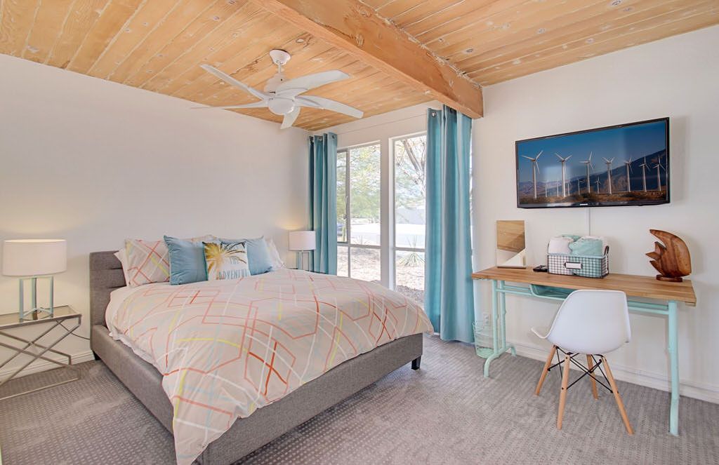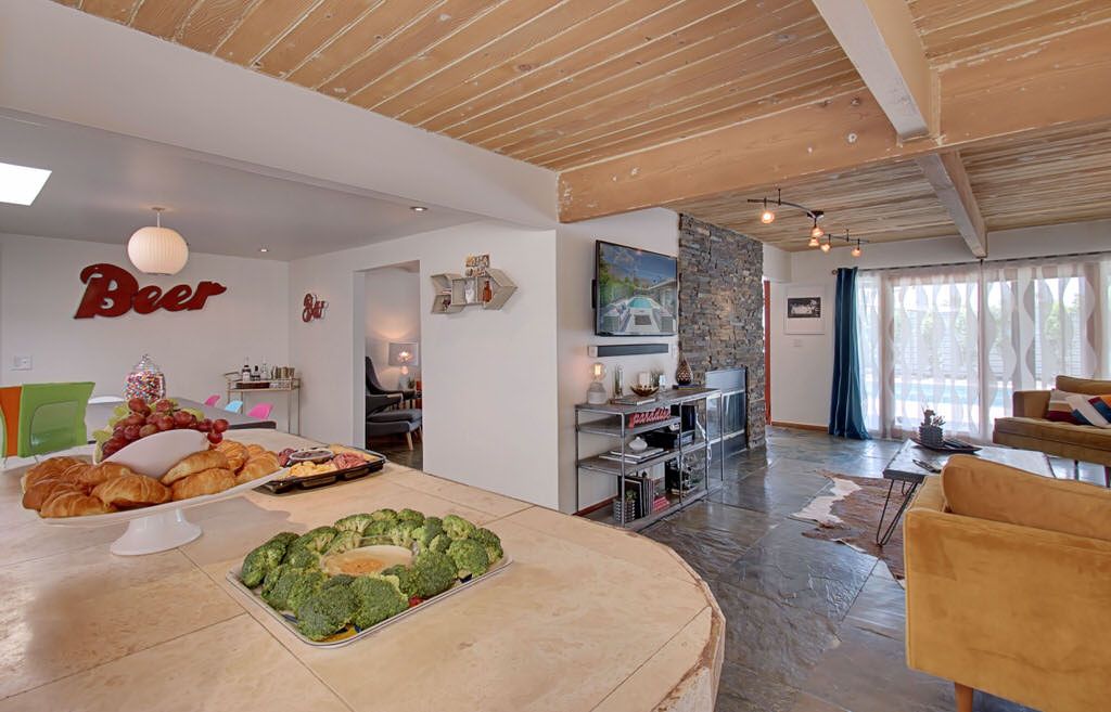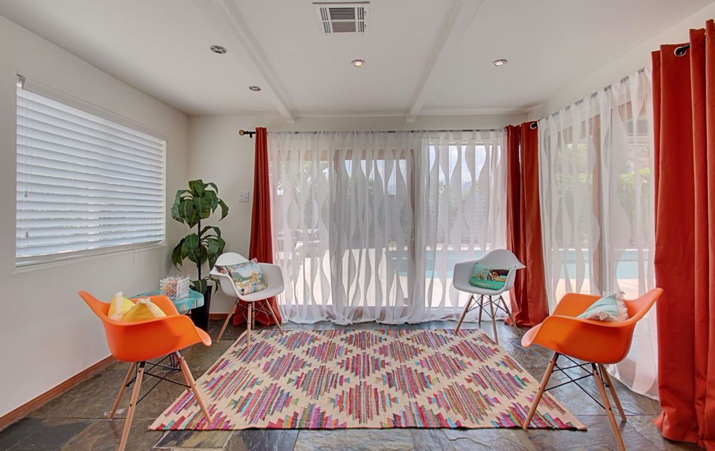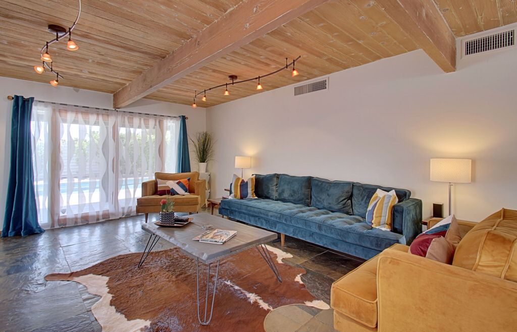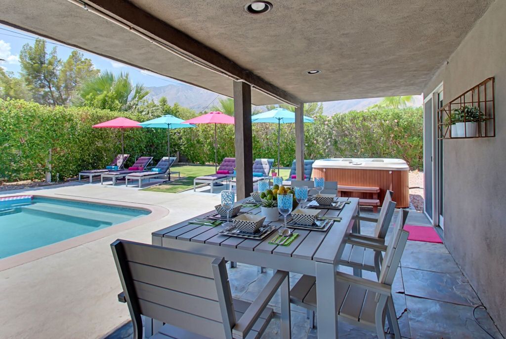 Recently remodeled in 2015, this mid-century modern Alexander home features, post and beam architecture, rock fireplace, new carpet, new furnishings and colorful fun decor throughout. This vacation rental is a great example of the wonderful indoor-outdoor living that makes Palm Springs such a popular year-round resort and vacation destination.