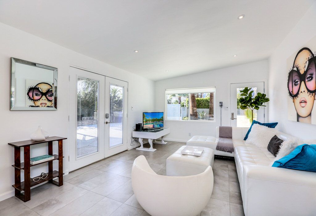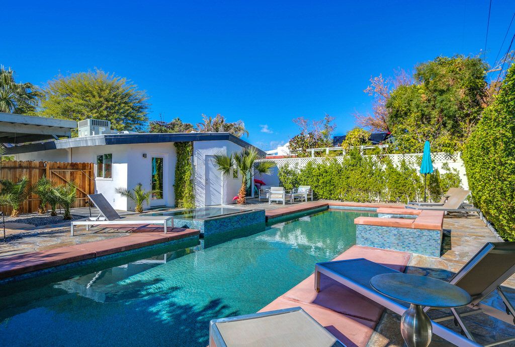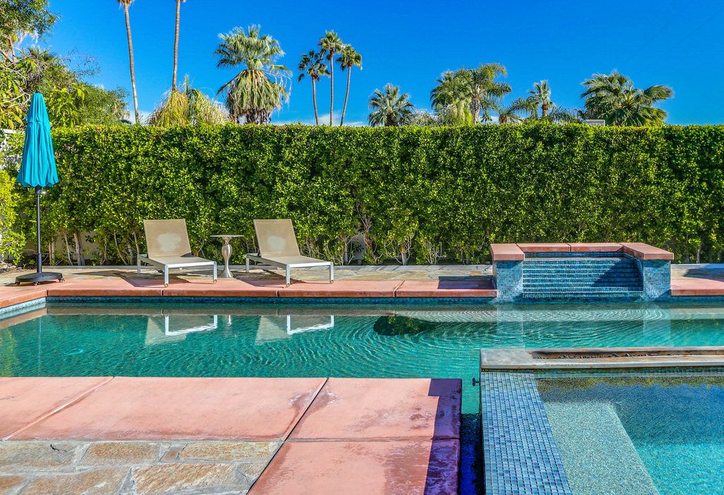 Bright, eclectic and inviting are just a few adjectives used to describe the enchanting energy that fills this very private, remarkable home that features several outdoor entertainment areas. This Palm Springs home is hidden behind a fully enclosed private gate and fence with mature landscape ensuring the utmost in privacy. Truly a place for couples to relax and unwind