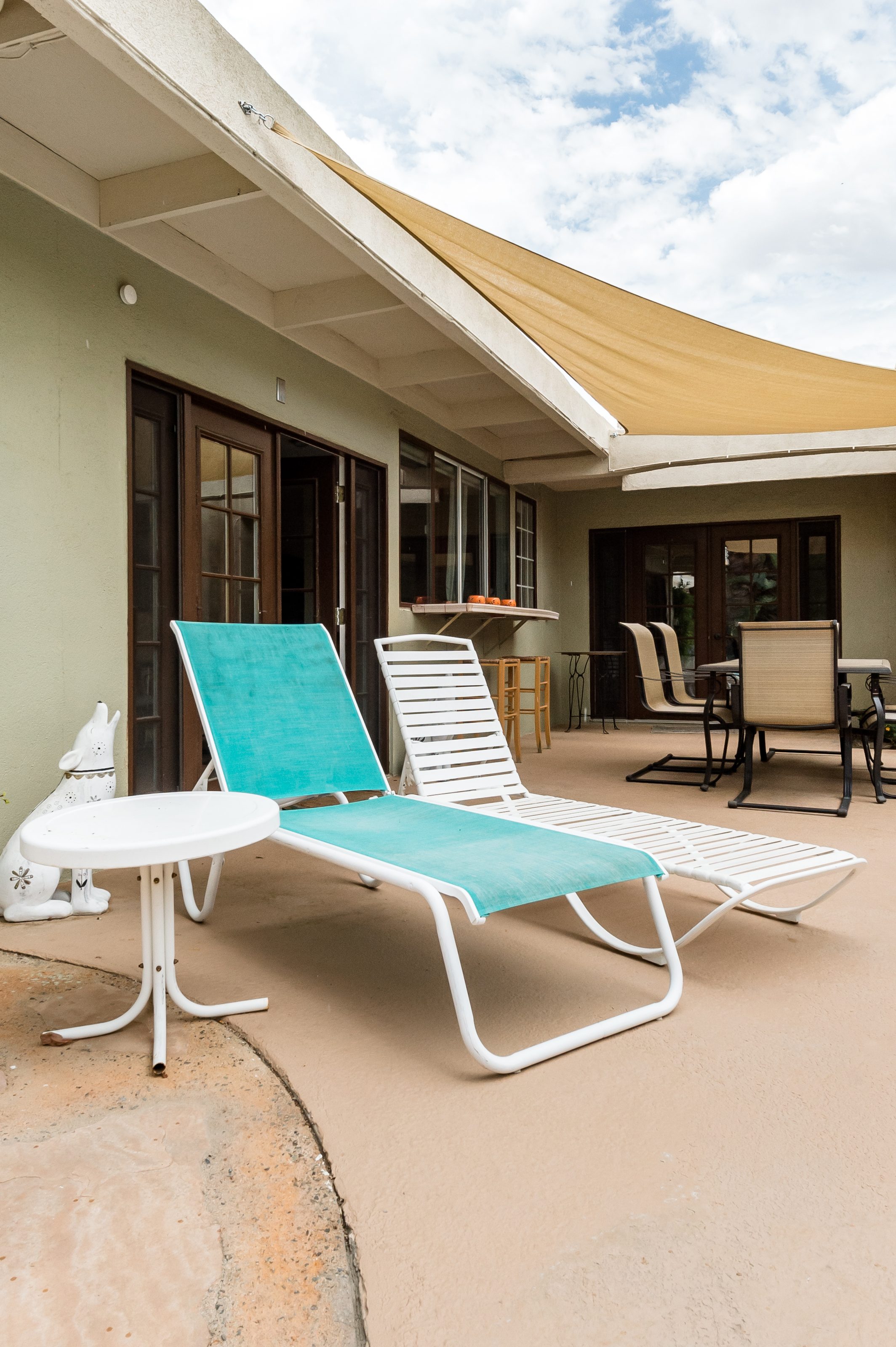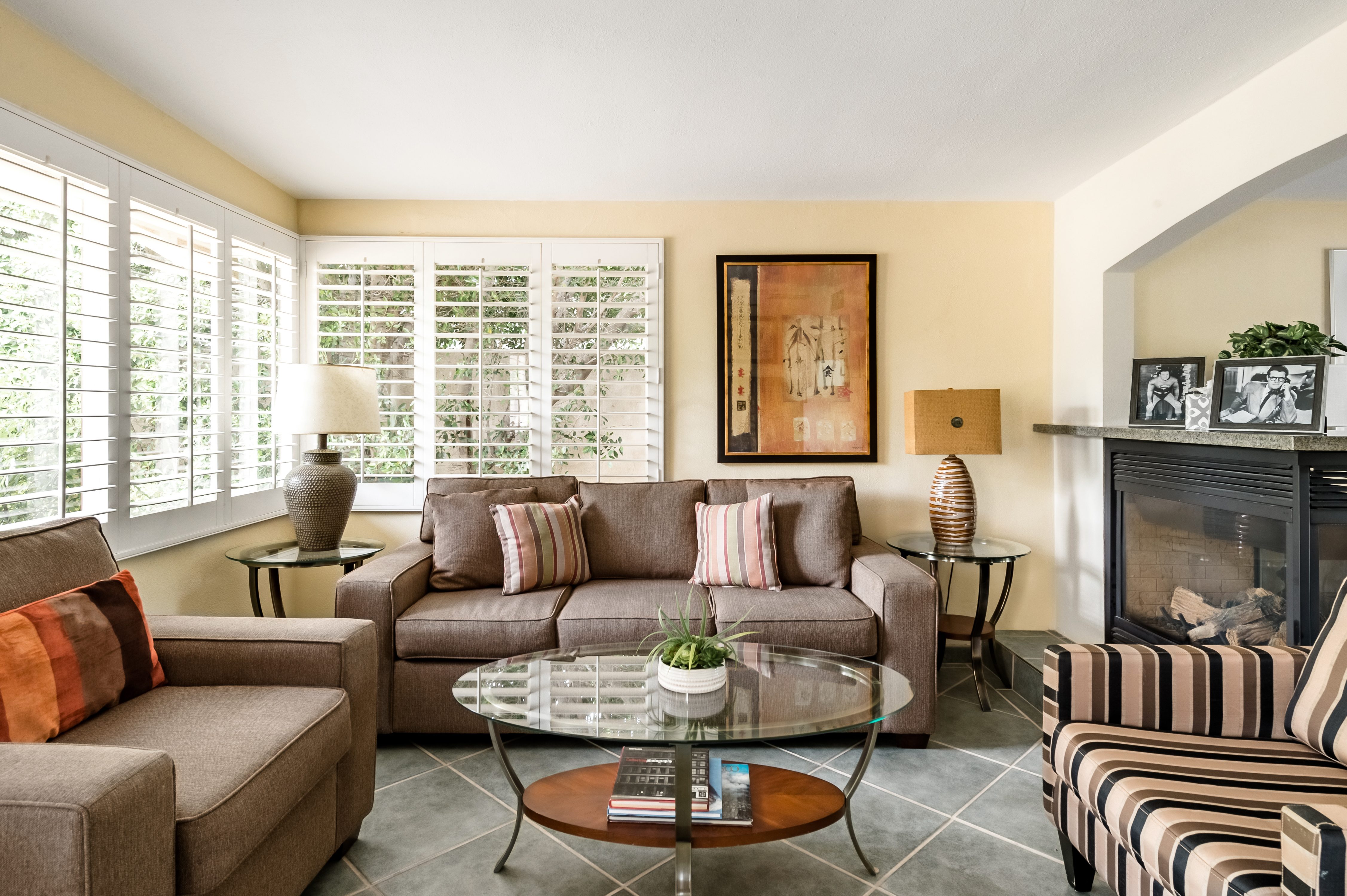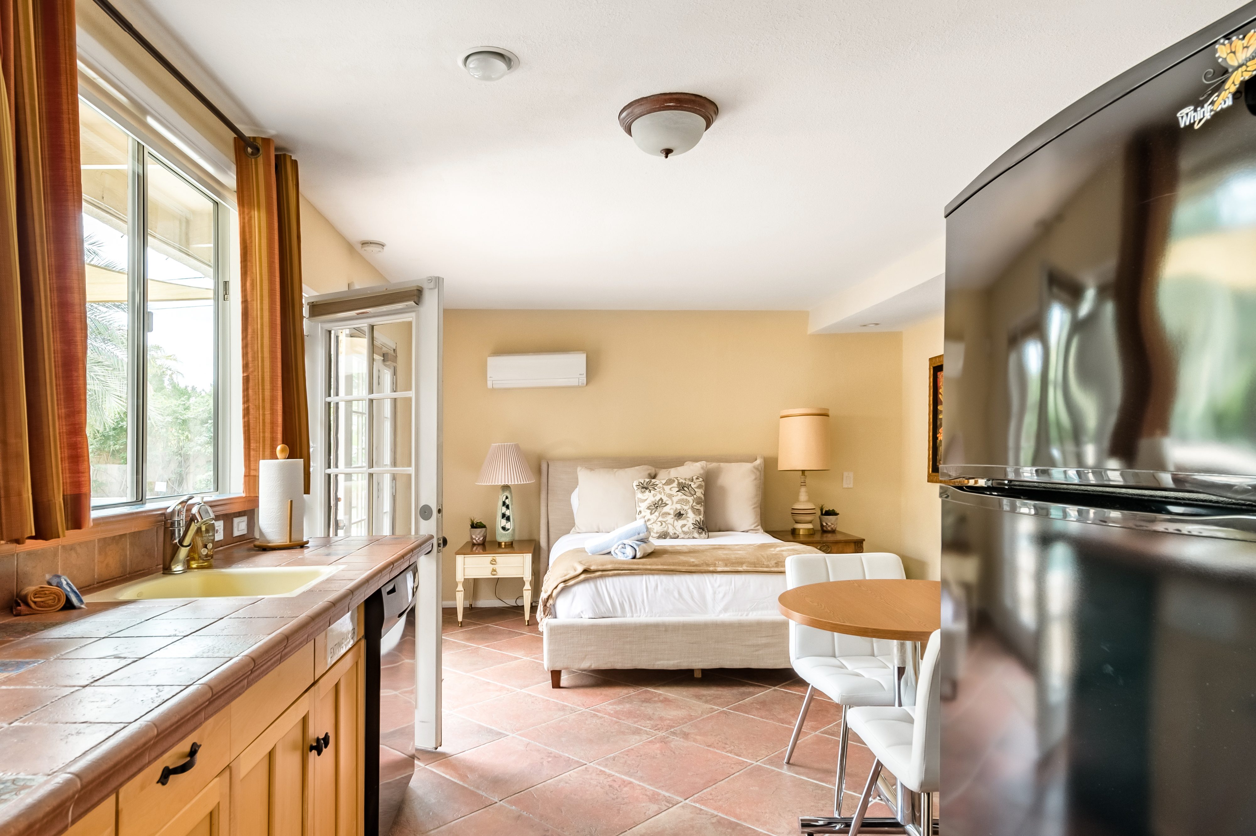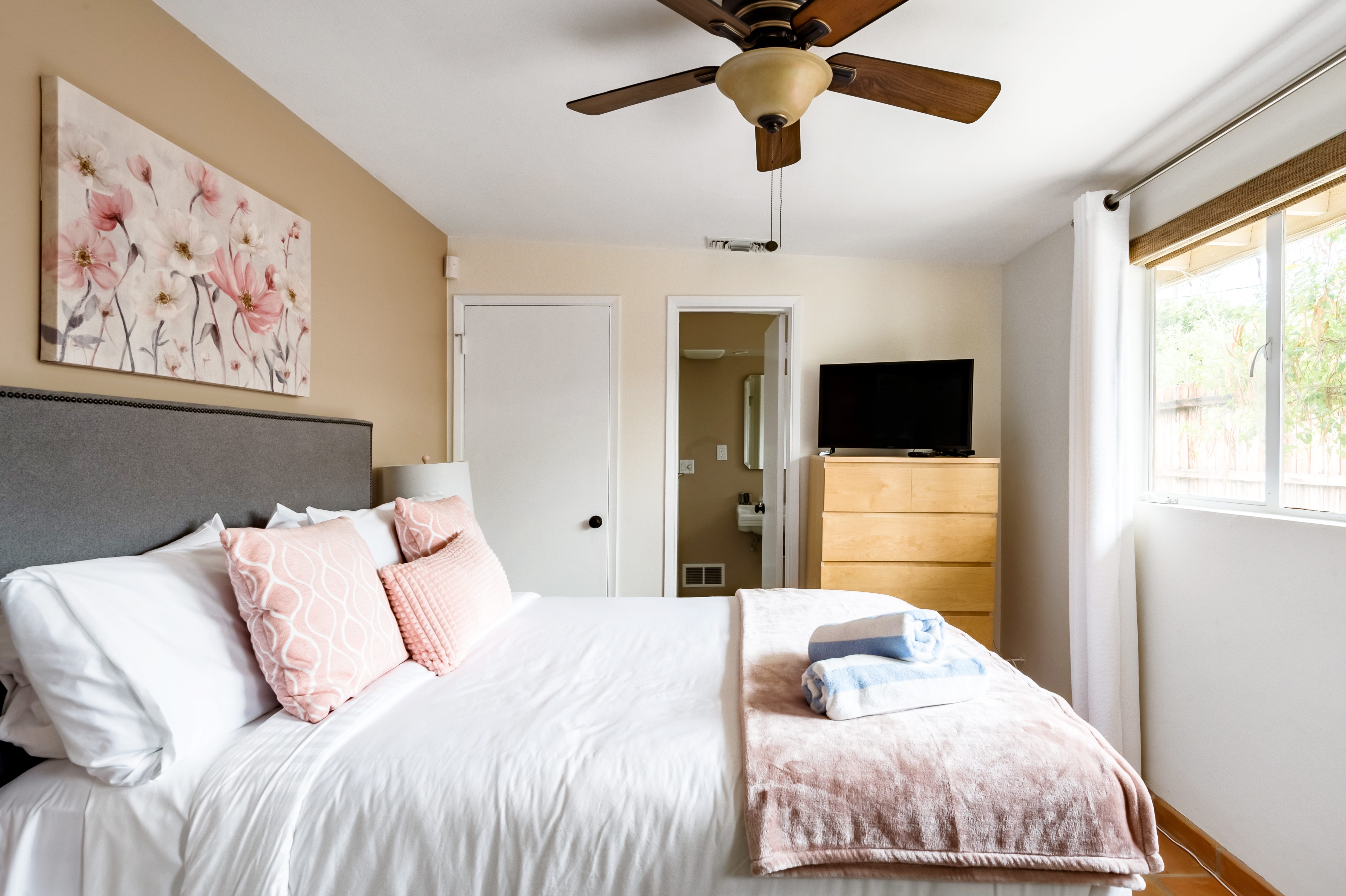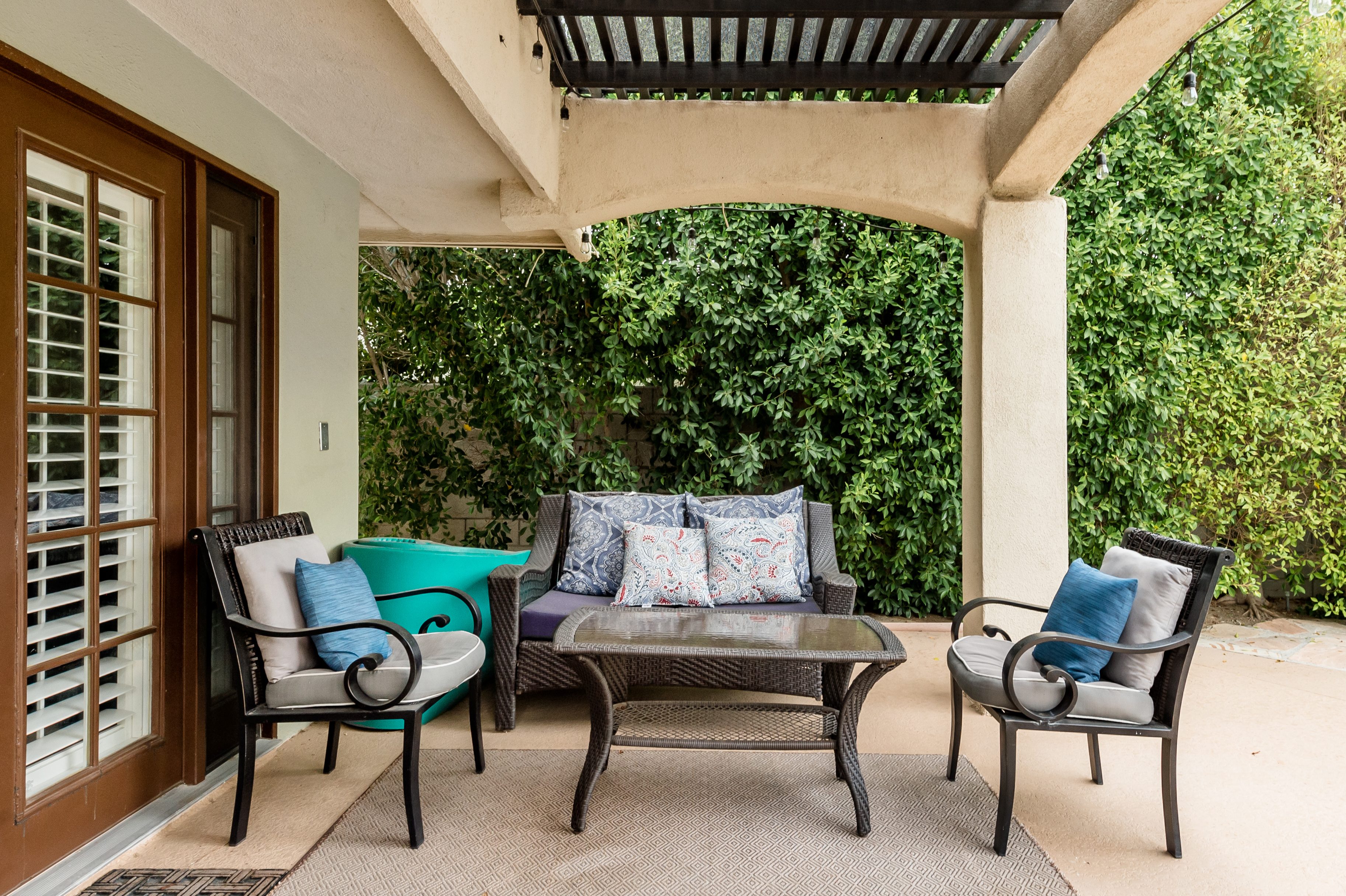 Go for a swim, then kick back under blue skies on a leafy patio offering mountain views. Warm furnishings and Hollywood-themed decor offer a vibrant tenor within this former TV star’s home. At sunset, grab a cold drink and gather by the fire pit. P.S. City ID #1173 Primary renter must be at least 25 years of age Celebrity Home near Ruth Hardy Park. 2 en suite bedrooms + en suite guest casita w/ additional poolside serving kitchen & bar. Private yard, heated pool, covered outdoor dining/ living areas, fire feature, mountain views. Walk to town. Fabulous pool home in walking distance to the world famous Palm Canyon Drive and just steps from Ruth Hardy Park. According to local lore, this was once the home of George Reeves, star of the 1950s Superman television series. So please, no Kryptonite. The owners have updated this midcentury garden house to create a fabulous Vacation Home where it’s all about relaxing in the sunshine. Gorgeous private pool yard with Spa and beautiful mountain views. Spacious open concept floor plan where all of the rooms open up to the outdoor patios, gardens and courtyards. Free WiFi, four flat screen televisions, and three en suite sleeping quarters including a guest casita with a serving kitchen and poolside bar. ABOUT THE INTERIOR LIVING SPACES There is a simple understated elegance about this home that creates a very relaxed, comfortable, easy living vibe. The open layout of the living spaces is perfect for spending time with your entire group. The great room, with its two-sided fireplace, features lots of seating for lounging, dining and binge watching your favorite TV shows. French doors open to the covered lanai to reveal the breathtaking pool yard, gardens and mountain views. The recently remodeled main kitchen with its natural gas stove, is perfect for individual or group meal prep. ABOUT THE SLEEPING QUARTERS All three of the sleeping quarters offer Queen-sized beds with hospitality-quality mattresses, en suite baths, flat screen televisions, ample storage and direct access to the outdoors. Inside the main home are two Queen Masters. The additional Queen guest casita features a poolside bar and service kitchen with a full-size refrigerator. This is Palm Springs living at its best - where we blur the lines between indoor and outdoor living - taking full advantage of the weather, sunshine and spectacular mountain views. ABOUT THE POOL YARD As gorgeous as the interior spaces of this home are - it is the outdoor spaces that are the crowning glory. The entire back yard has been walled and landscaped for complete privacy. Poolside chaise lounges, outdoor dining and hanging spaces, a fire pit, shade umbrellas - this vacation home has it all - perfect for relaxing in the sun or escaping to the shaded areas. At night, beautiful twinkling lights and landscape illumination compliment the desert’s starry skies to give this place a completely magical feel - like your own private Palm Springs resort. ABOUT THE LOCATION Tucked away on a quiet residential street in the Movie Colony East neighborhood, this property is just one block from Ruth Hardy Park, and less than a mile from the world famous Palm Canyon Drive. You’ll be in walking distance to the Palm Springs Uptown Design District with its fine dining restaurants, sidewalk cafes, specialty boutiques, art galleries and midcentury modern furniture showrooms. The casino, convention center and night spots like Tropical and The Copa are just a short stroll away. Neighborhood conveniences like grocery stores, sandwich shops, burger joints and other casual eateries are all very close by. The home is located in Palm Spring’s Movie Colony neighborhood, an area once home to many Hollywood golden-agers. The nearby Ruth Hardy Park offers lush paths and tennis courts. Downtown’s boutiques, museums, restaurants, and bars are minutes away. Certain dog breeds under 65 lbs are allowed at this home, the dog fee is $195 (2 dogs maximum).Amenities