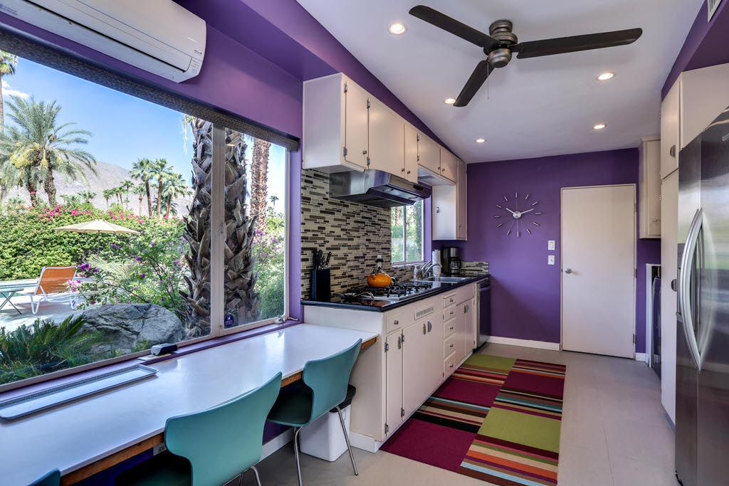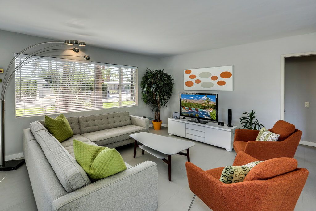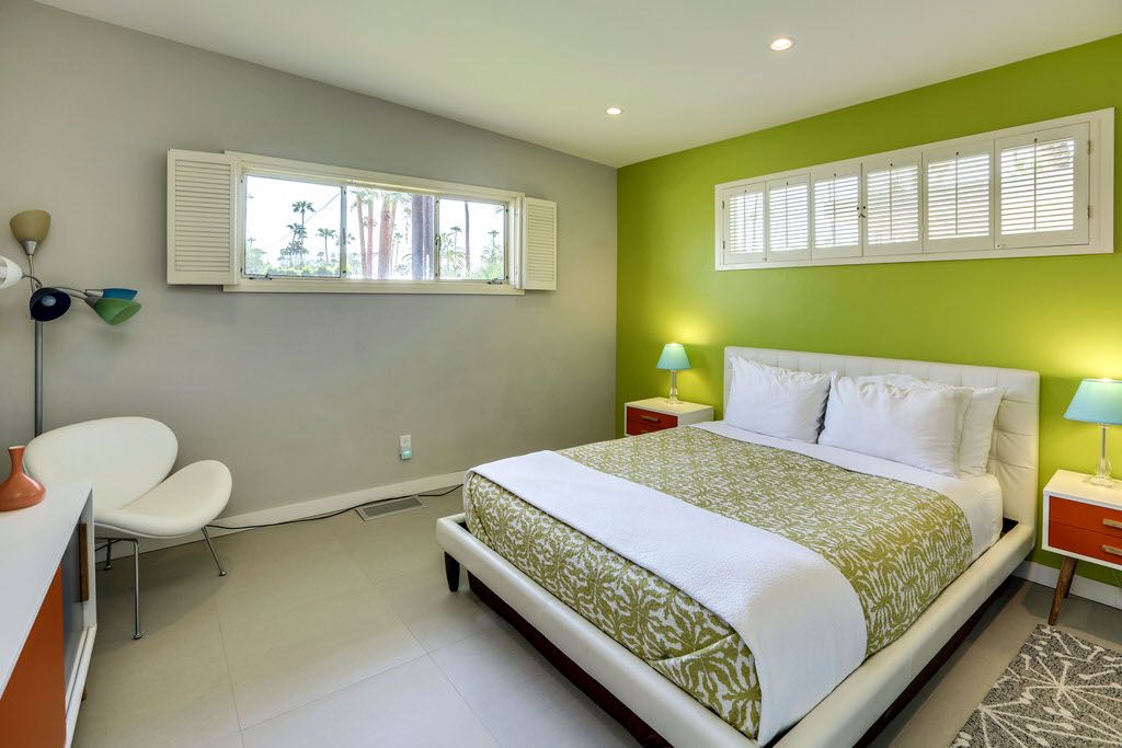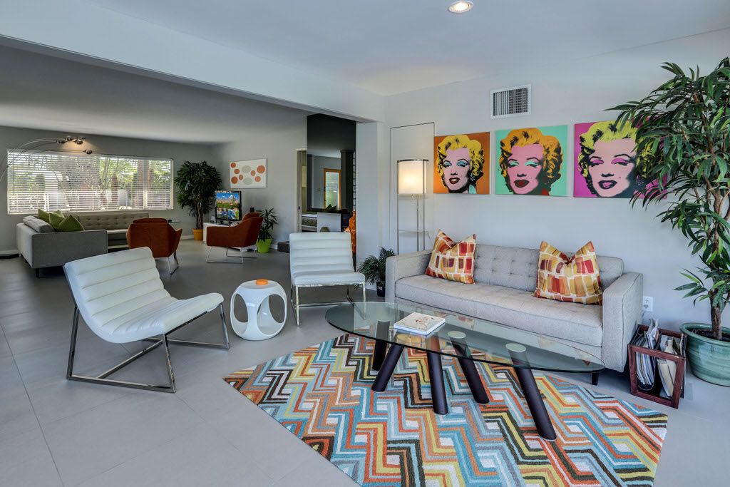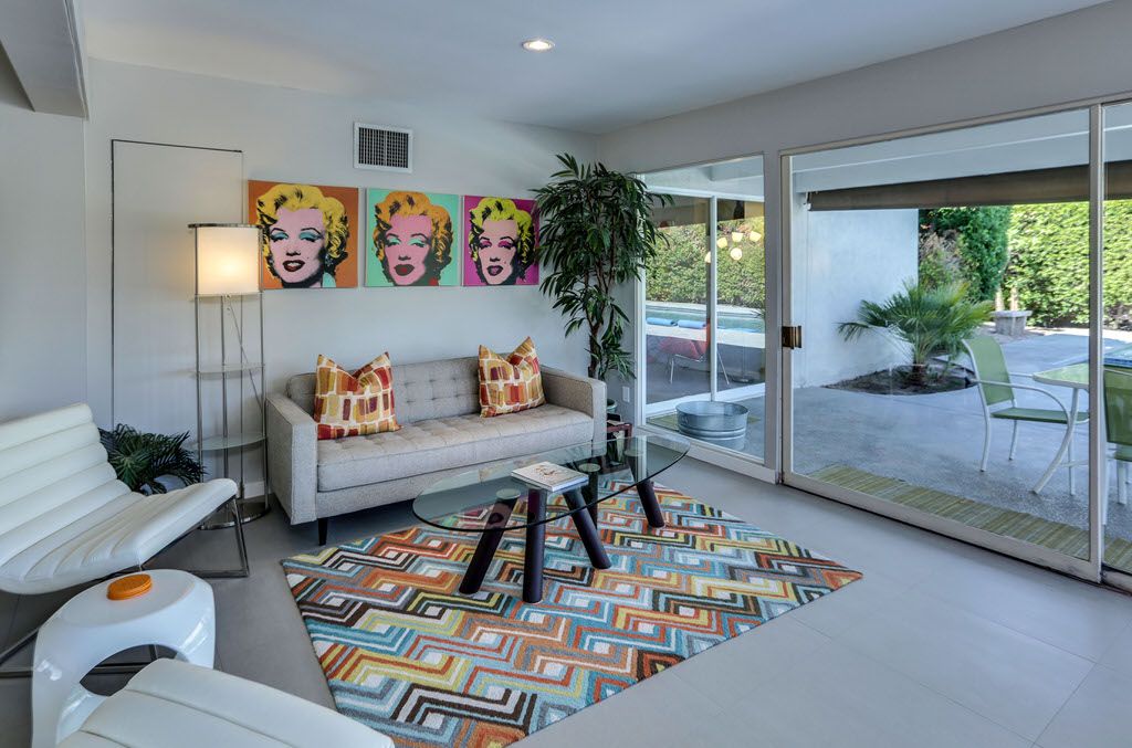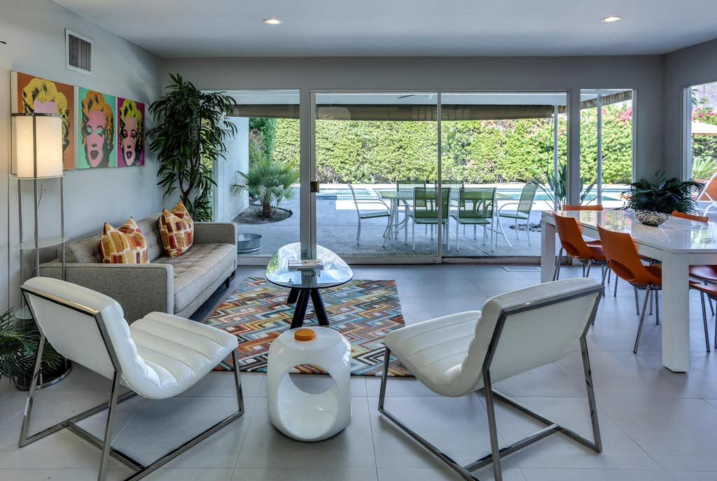 This Palm Springs vacation home is vibrant and bright, with energizing colors and comfortable furnishings.