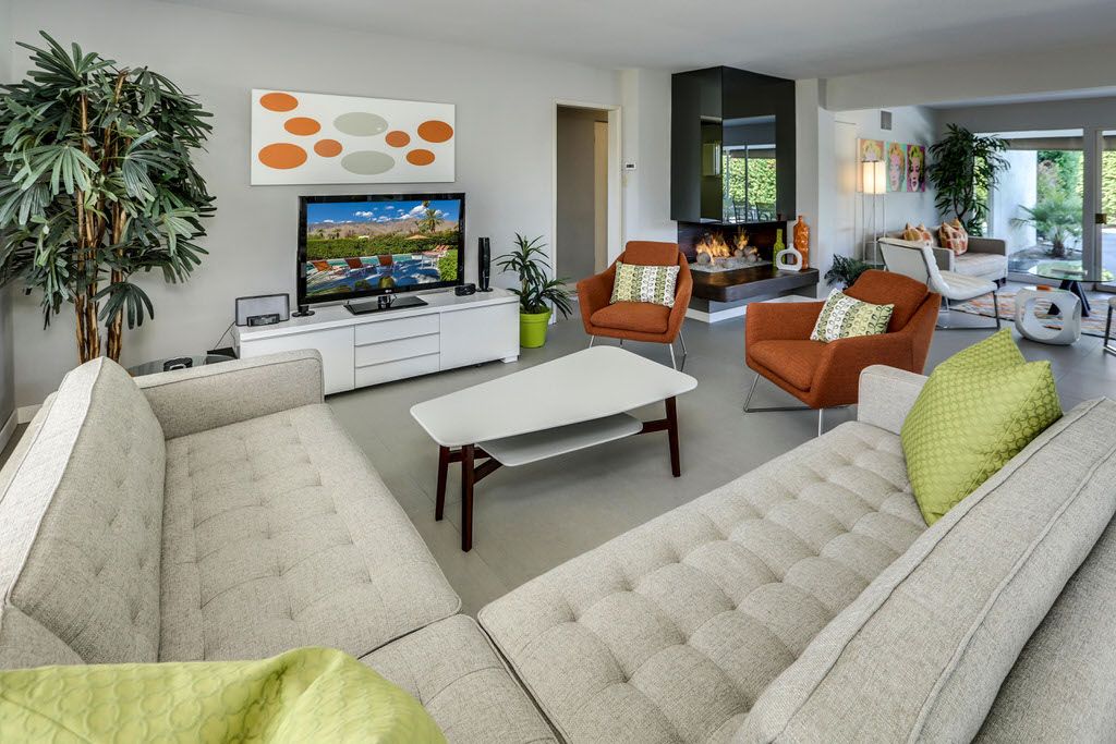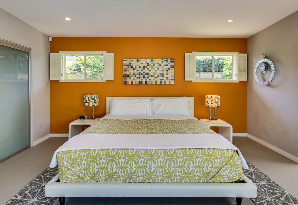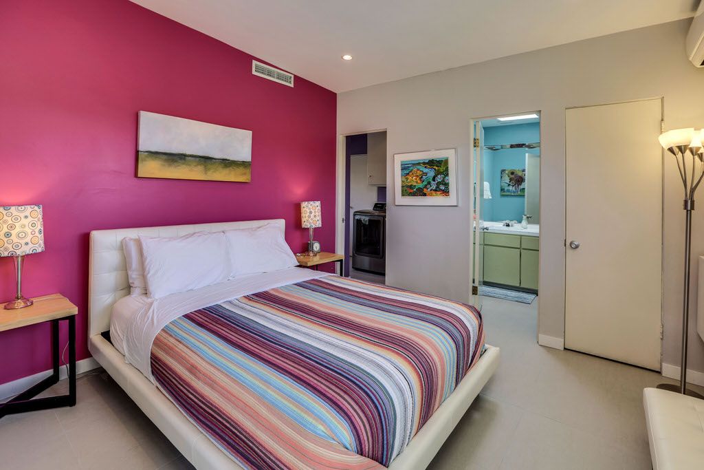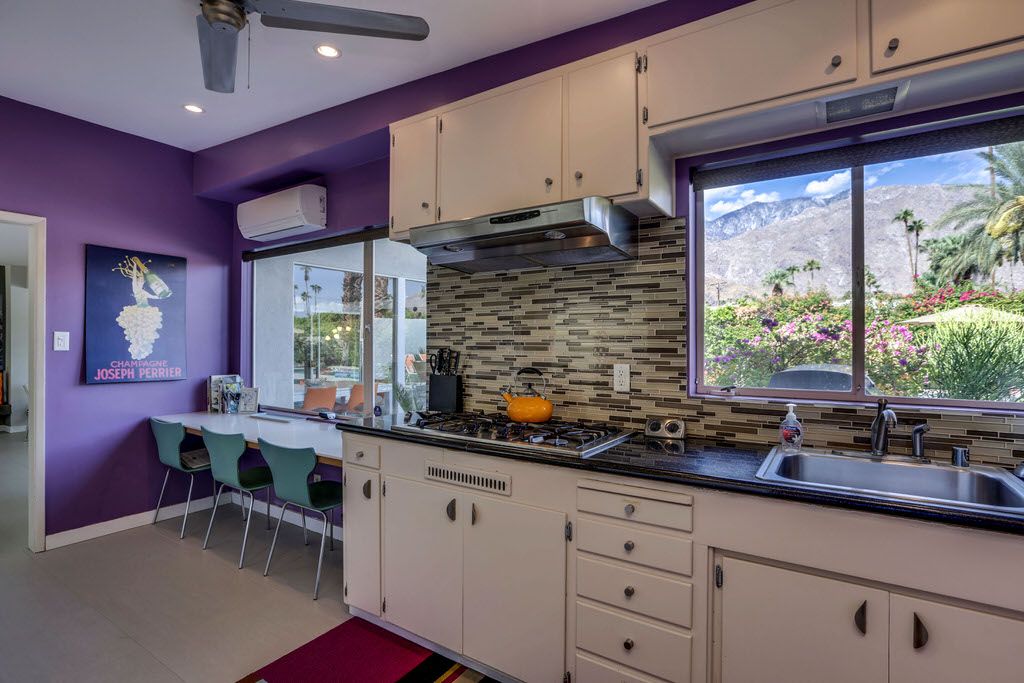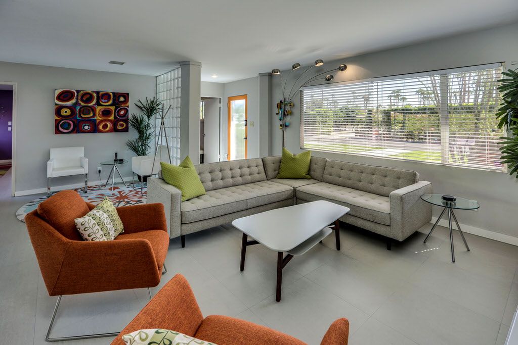 This Palm Springs vacation home is vibrant and bright, with energizing colors and comfortable furnishings.