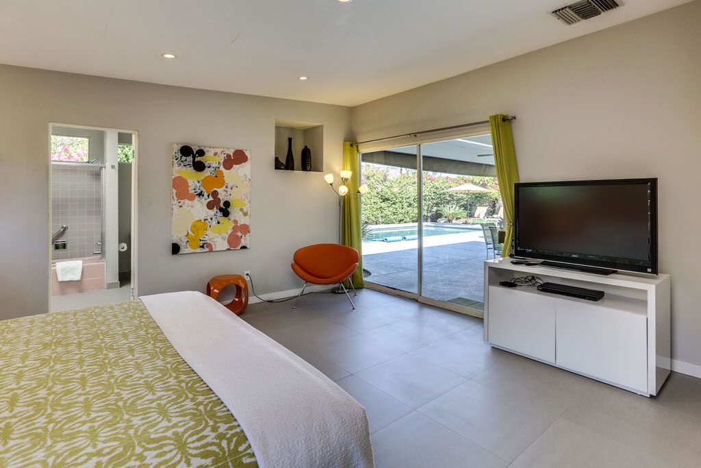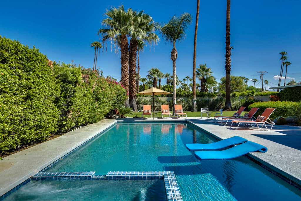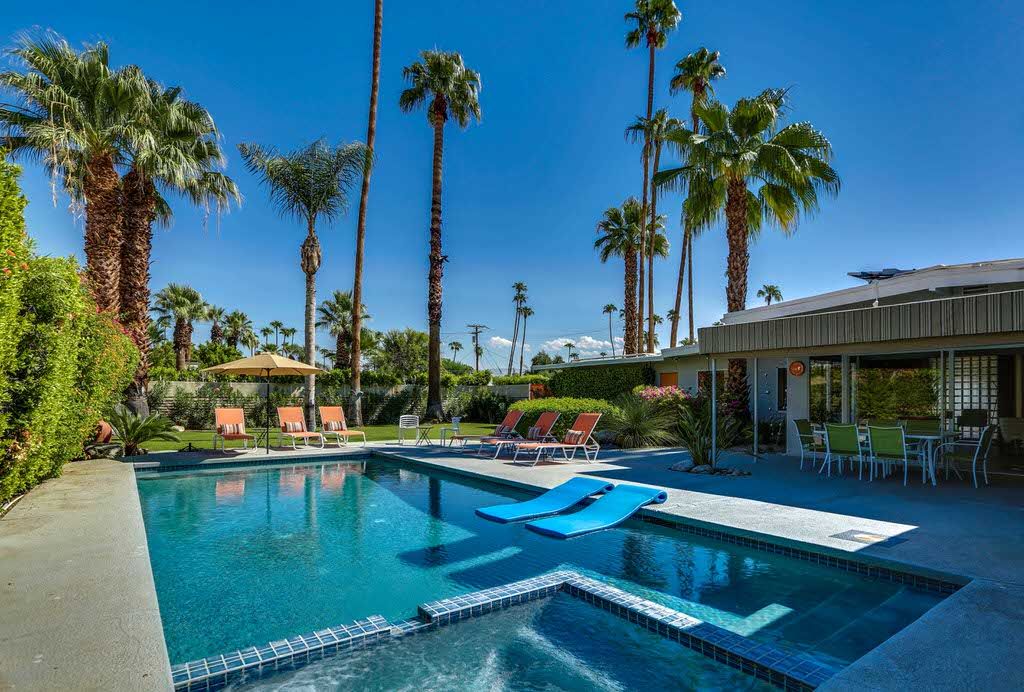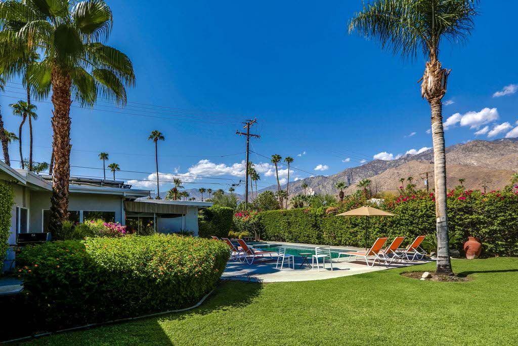 This home, ""Good Vibrations"" is located in Deepwell, a Palm Springs neighborhood that is south of downtown and known for its quiet and peaceful vibe with well manicured lawns and a wonderful collection of mid-century modern architectural design.