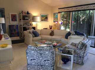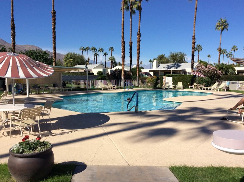 This quiet condo is located in a lovely community in South Palm Springs, within walking distance of restaurants, coffee shops, grocery stores and shopping. Enjoy the patio, while admiring the meticulously manicured grounds and landscaping with a resort-like atmosphere. The complex boasts meandering greenbelts and walkways, a large swimmer's pool with spa and courts for tennis enthusiasts. From the living area, there are sliders that lead out onto a large, covered patio overlooking the lush greenbelt and pool. The patio is perfect for entertaining and barbecuing.