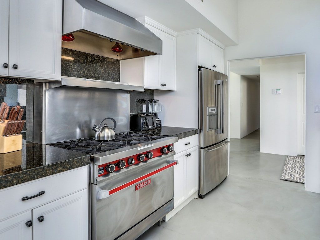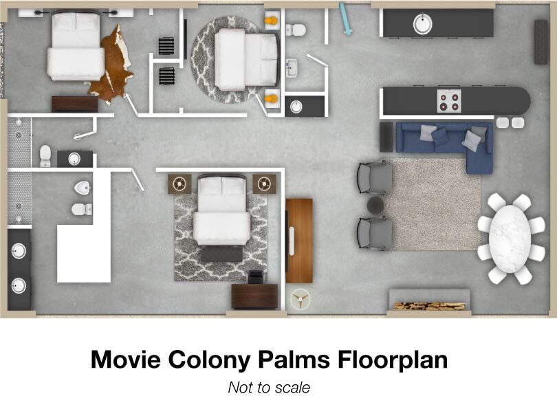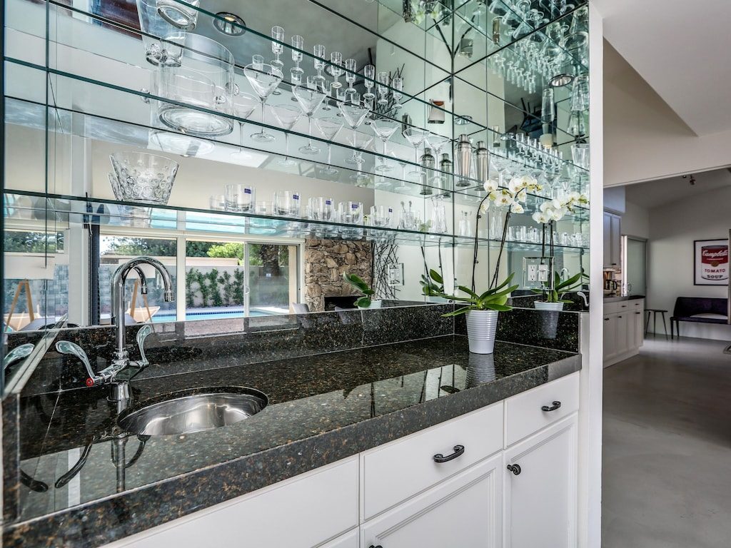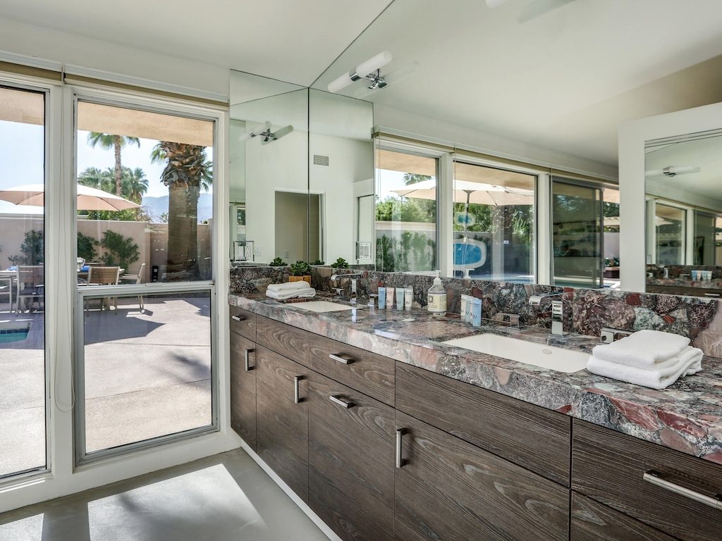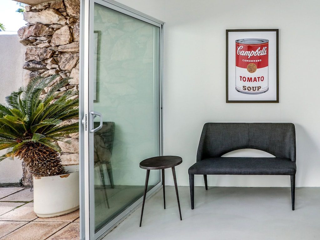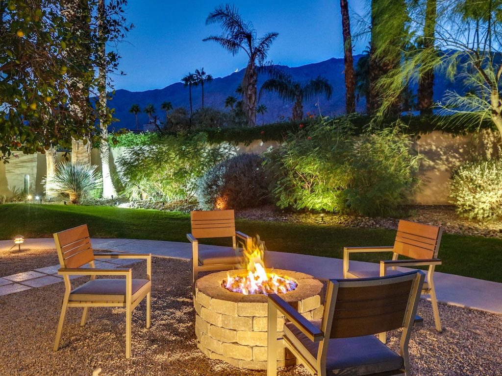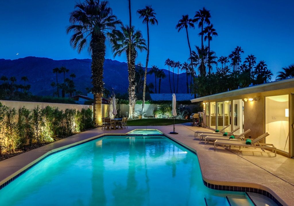 P.S. City ID #4094 **Primary renter must be at least 25 years of age** A thoughtfully remodeled mid-mod, Movie Colony Palms features a resort-style pool yard. Walled & gated, enjoy a large heated pool, integrated spa, fire feature, sun loungers, covered seating & alfresco dining areas. Sliding glass doors on two sides of a stone fireplace blur lines between outside & in. Stylish furnishings offer a colorful, comfortable open space to enjoy the company of your friends & family. Chef’s kitchen features granite counters, SS & Vulcan 6-burner stove. 3 bedrooms offer King beds & Smart TVs.Amenities