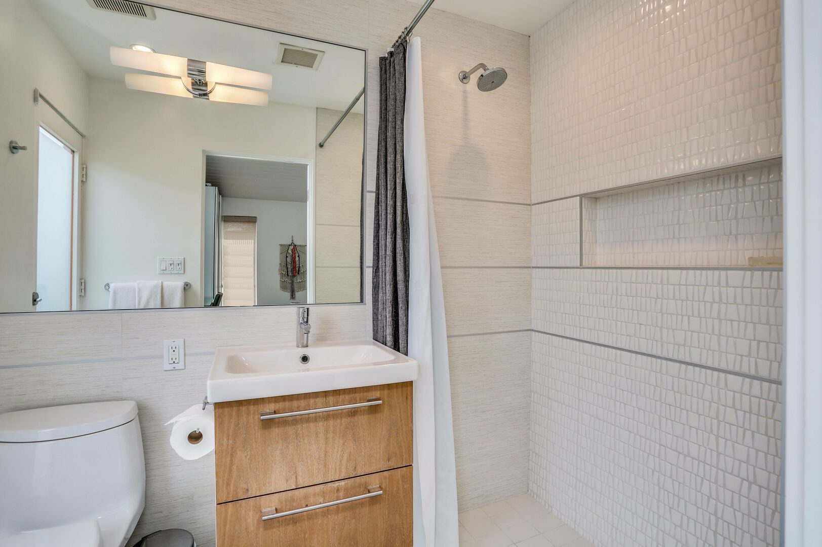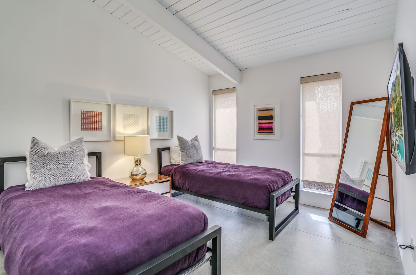 The three private bedrooms are located on the other side of the home for quiet solitude. Here, there are two guest bedrooms with flat screen TV's, and a shared hallway bathroom.