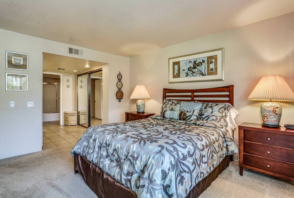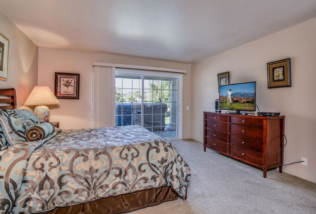 The bedrooms in this Palm Springs condo are separated nicely for privacy and comfort. Each bedroom has sliding doors that open to a private patio with outstanding Palm Springs mountain views.