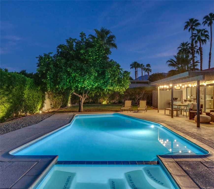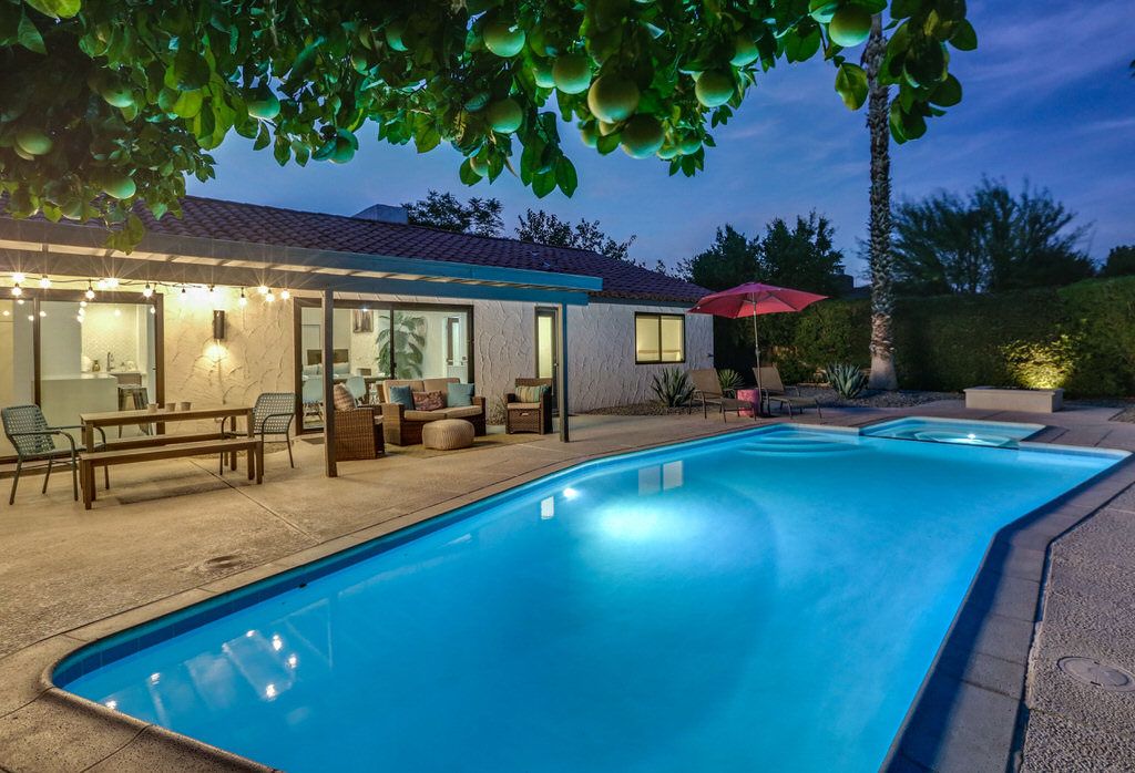 Featuring a private pool and spa, luxury amenities, a fully equipped chef's kitchen, this Palm Springs home offers great luxury lodging in South Palm Springs, just a few steps to The Saguaro and Smoke Tree Village shopping center.