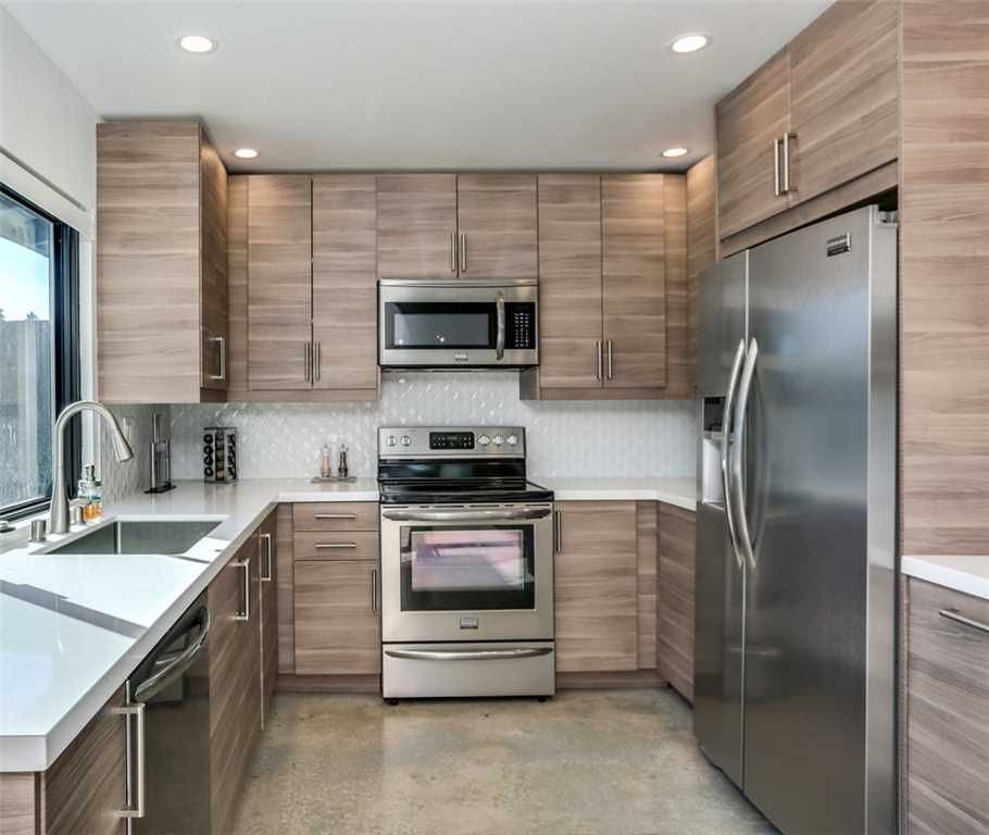 The gourmet kitchen features stainless steel appliances and opens to a bright dining area with great views of the resort-home inspired pool area.