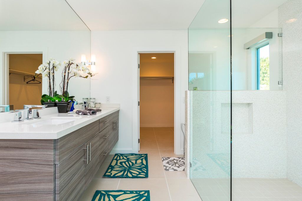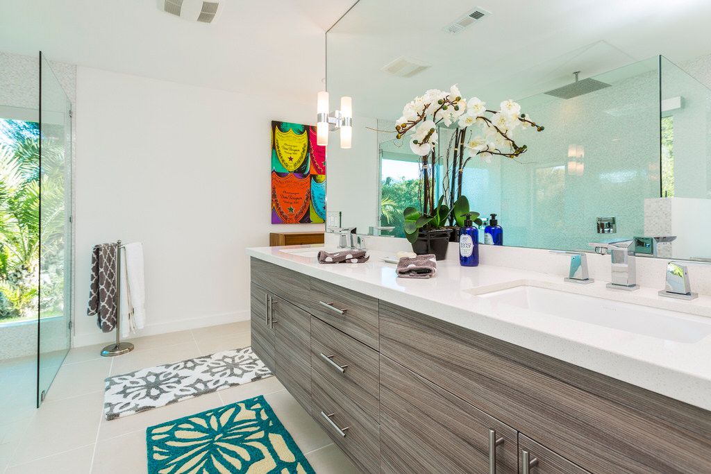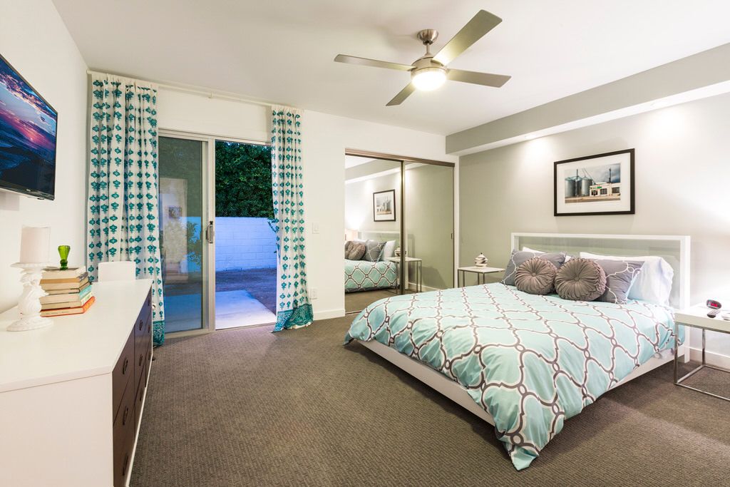 Each bedroom has a nice size and pleasing feel with designer linens and two have their own HDTV's. The two bedrooms with TV's have new Blue ray players. The master suites wall of glass opens up to the backyard . The master suite has its own en-suite bathroom with walk in closets. The two guest bedrooms share a hall bath.