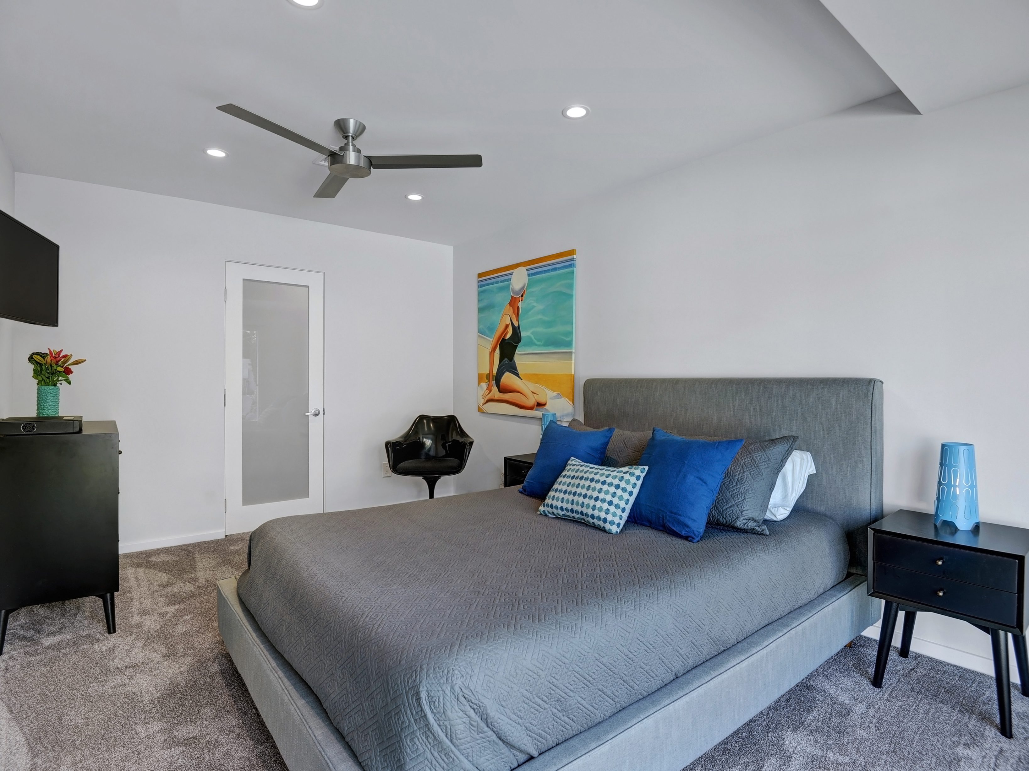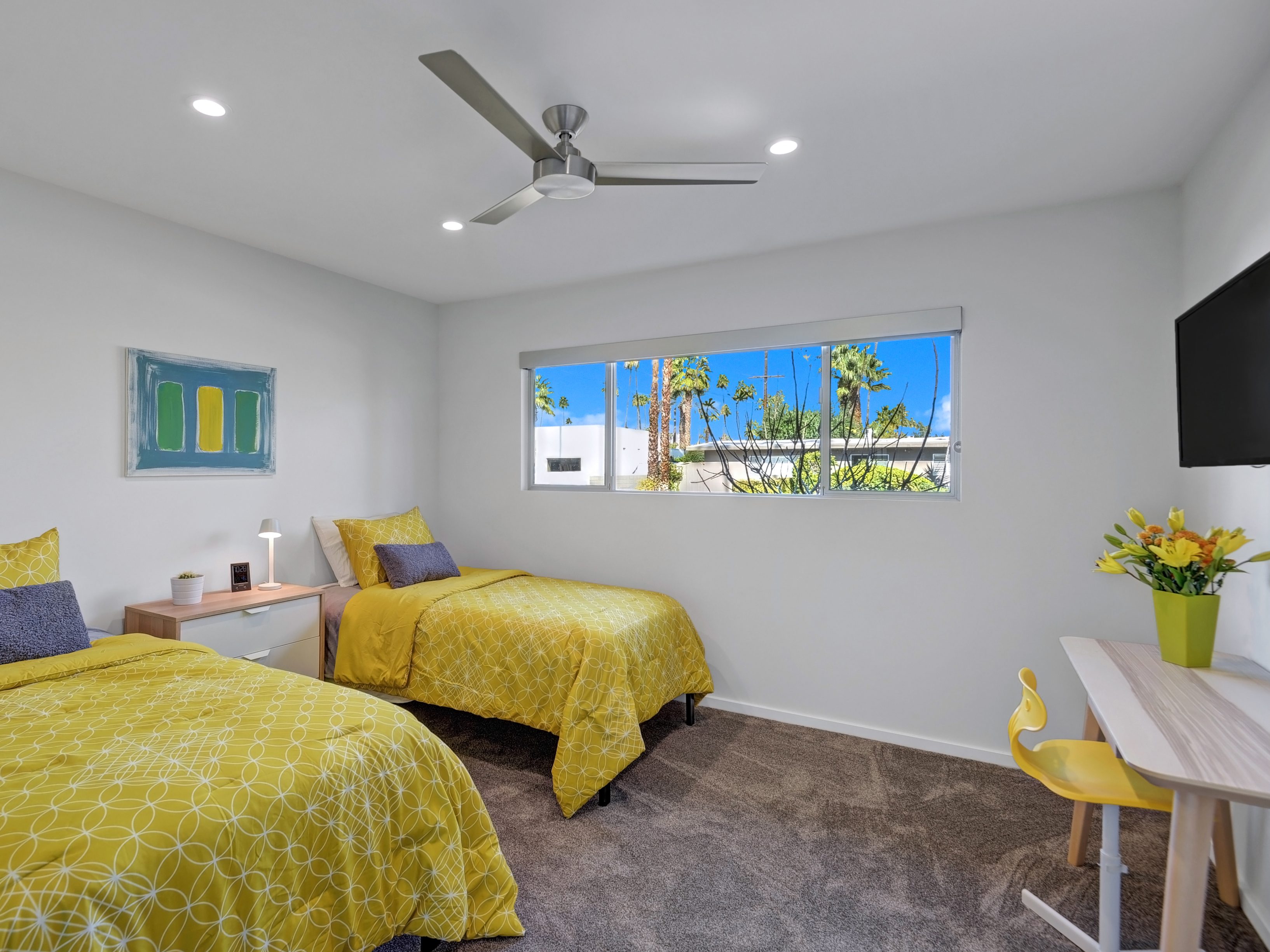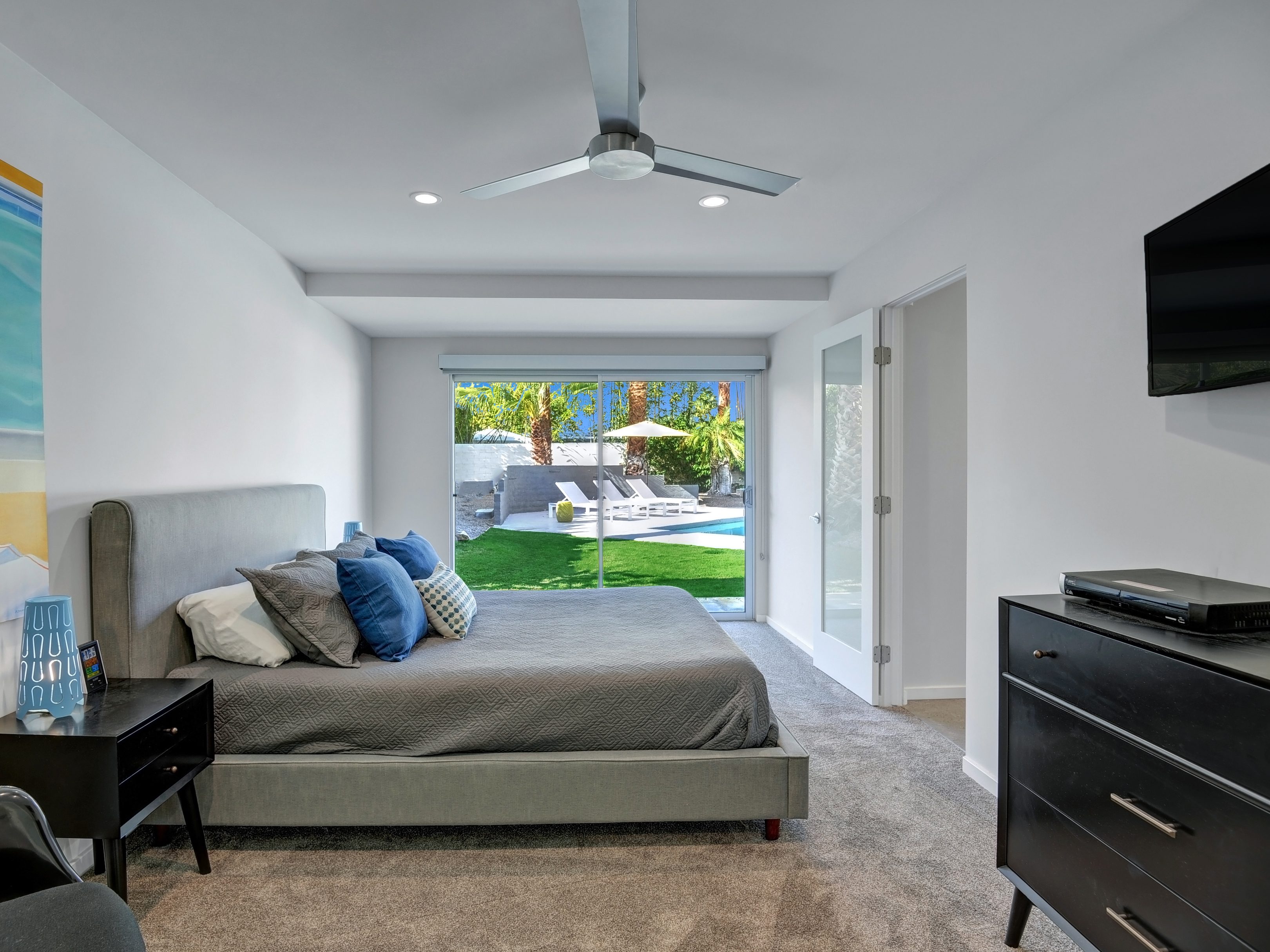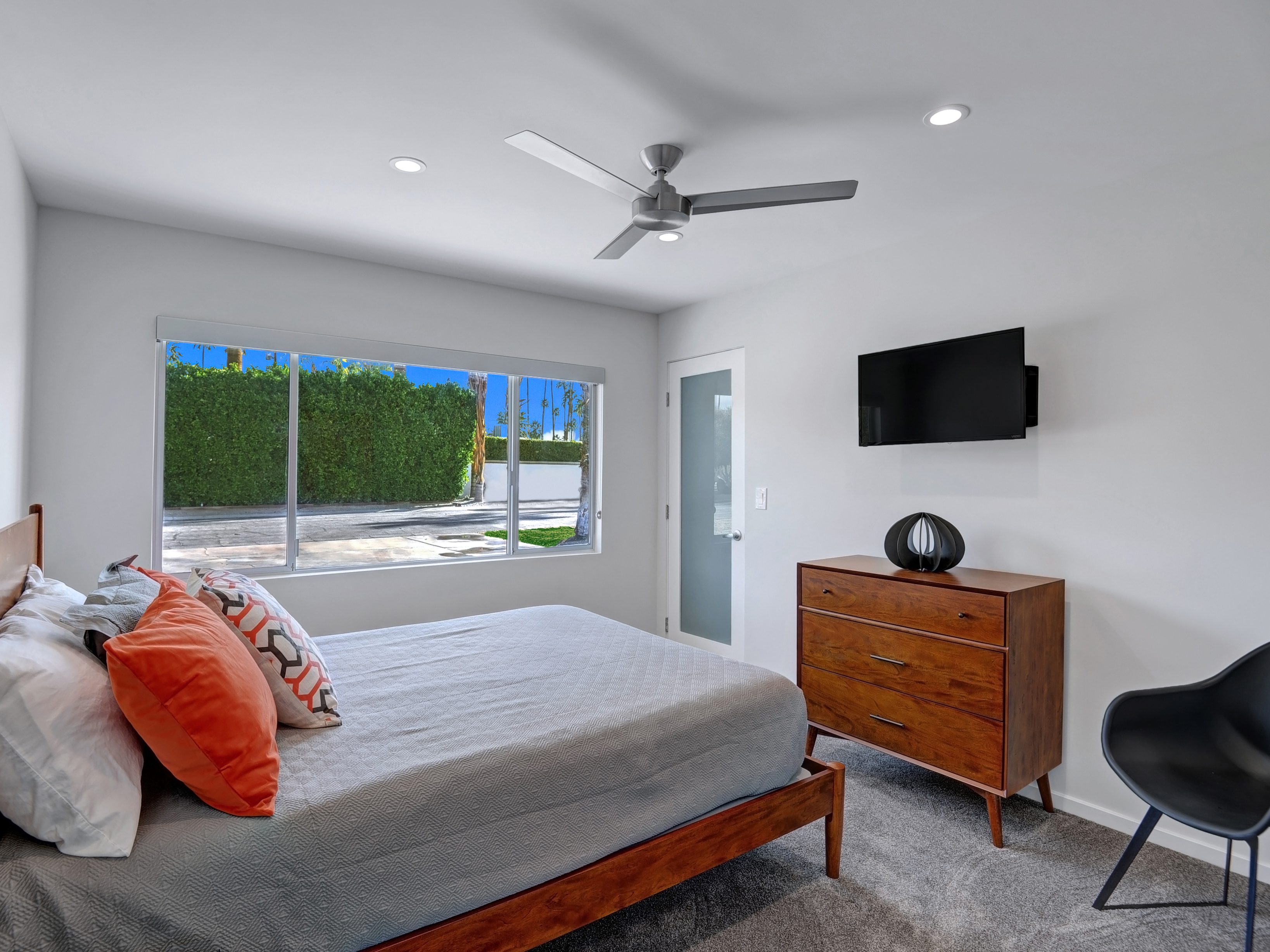 Completely Remodeled Executive Villa (circa 1953) in the popular Deepwell Neighborhood. Walk to Palm Canyon Drive. Private yard w heated pool, integrated waterfall spa, fire feature, covered outdoor living pavilion. Mountain views. Beds: K, Q, Q, K (or T, T) Primary renter must be at least 25 years of age Completely Remodeled Executive Villa (circa 1953) in the popular Deepwell Neighborhood. Walk to Palm Canyon Drive. Private yard w heated pool, integrated waterfall spa, fire feature, covered outdoor living pavilion. Mountain views. Beds: K, Q, Q, K (or T, T) Stunning midcentury executive home in the exclusive Deepwell Neighborhood - an easy stroll to the world-famous Palm Canyon Drive. This upscale vacation home has been totally updated for the way we live today. Gorgeous new kitchen, deluxe baths, high-speed internet, five flat-screen televisions, open concept floor plan, comfortable Mid Mod-inspired furnishings, and fabulous sleeping quarters.