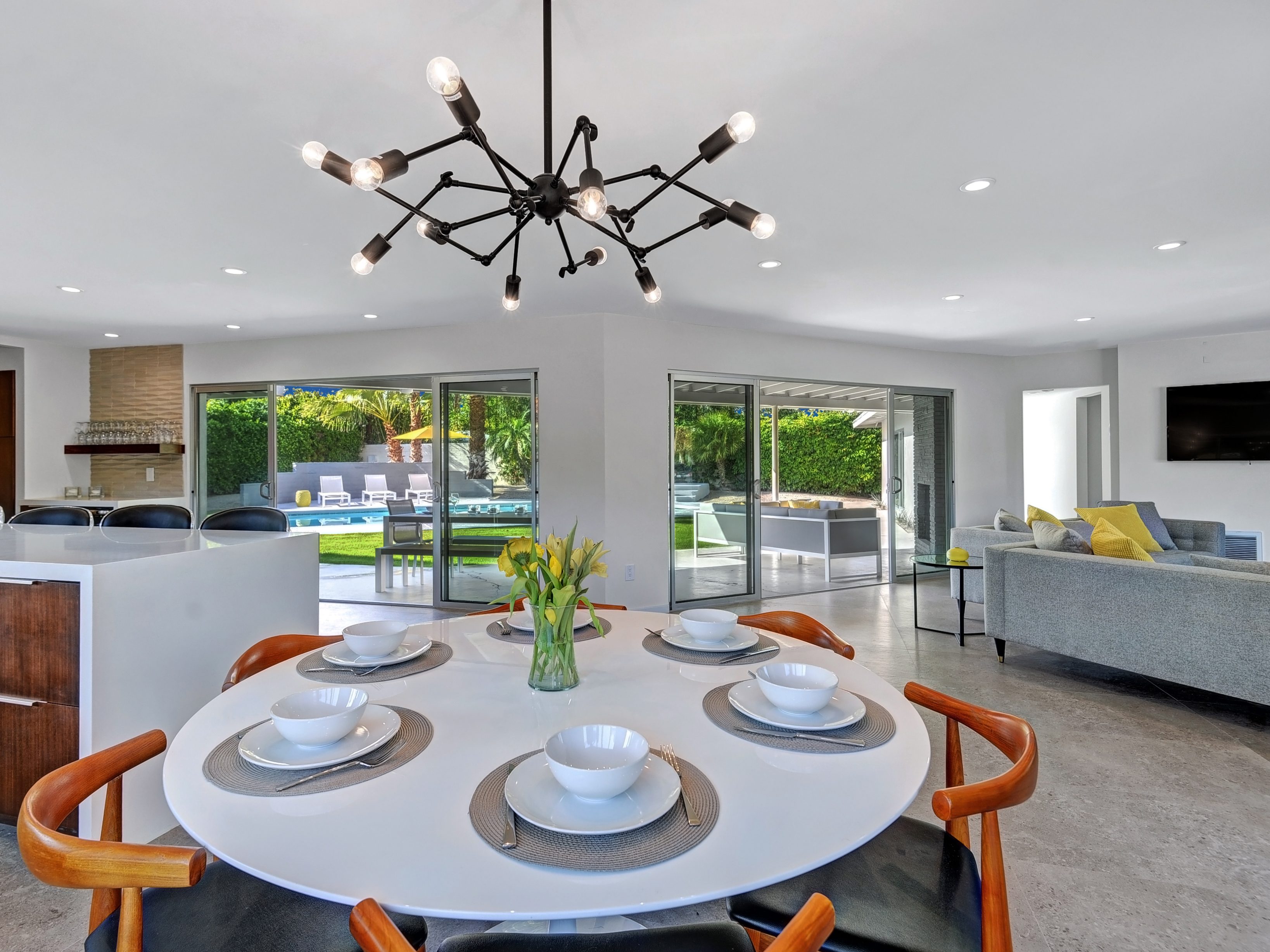 ABOUT THE LIVING SPACES As though ripped from the pages of a magazine, this stately property captures the hip and sophisticated Palm Springs vibe of yesteryear. It is glamorously nostalgic and very 'next century' all at the same time. The focus here is on easy living in the sunshine - it’s all about comfort, relaxation, and blurring the lines between indoor and outdoor living. Please contact The Maruca Group 1890 North East 144 Street, North Miami Florida suite #A. reservations (At) themarucagroup com
