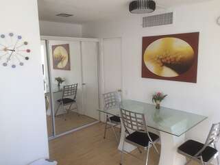 Recently upgraded to an executive level with laminated and tiled floors throughout, making this unit contemporary as well as extremely low maintenance, an ideal choice for a longer term guest. This condo features a fully equipped kitchen, generous living and dining area, and a private patio with mountain views. The Historic Ocotillo Resort is located minutes from the airport and downtown Palm Springs and offers many amenities, including a large heated pool, two spas, a shuffleboard deck, fitness center, community barbecue and extensive gardens.Property Description