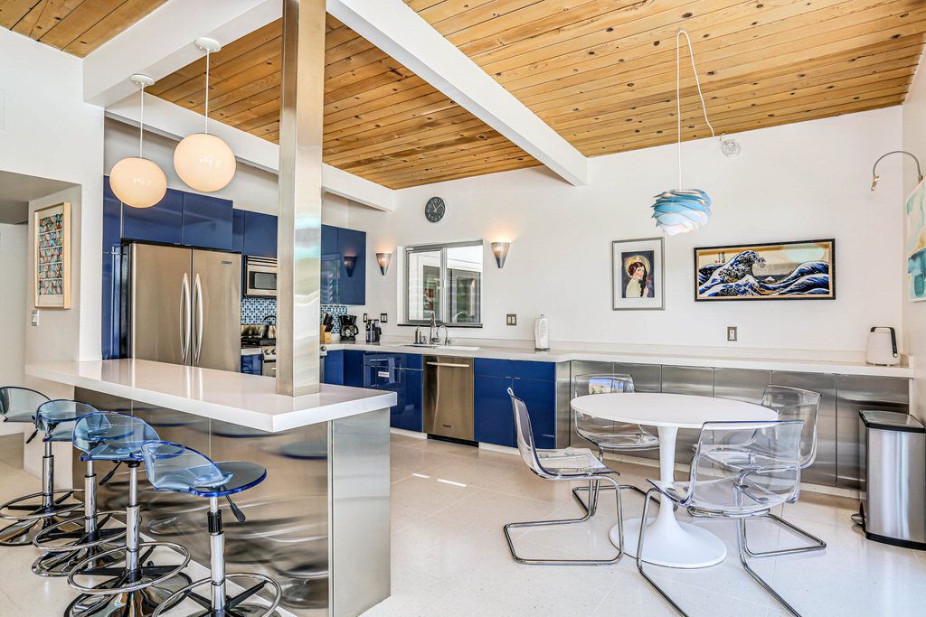 The fully-updated kitchen features a large caesarstone peninsula, breakfast area and bar seating to enjoy conversation, the views, or a cocktail. The kitchen is fully stocked and equipped with all the appliances, dishes, drinkware, accessories, and utensils you would expect to find at home.