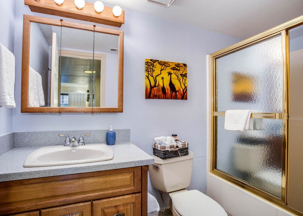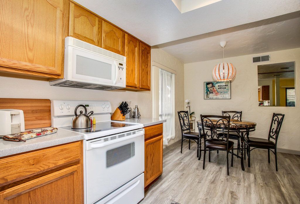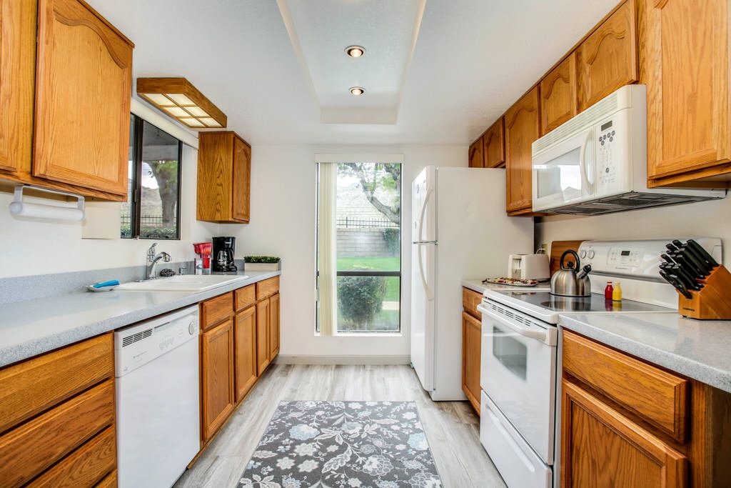 This open and bright vacation condo provides views of the tennis court and the mountain from the patio, kitchen and front door. It's a great single story unit, so there’s no one above or below you, which also means there’re no stairs to be concerned about.