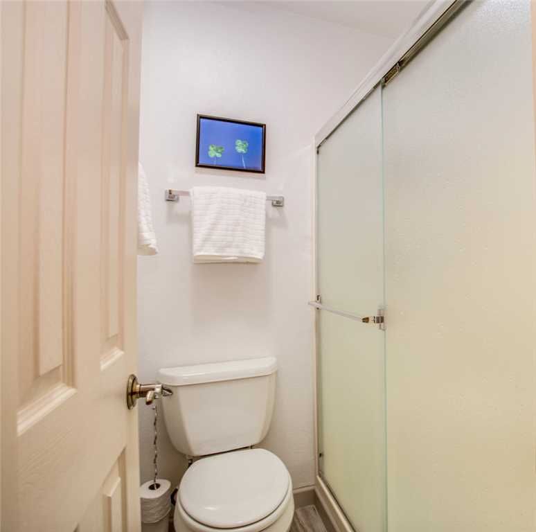 Your guest bedroom features a Queen size bed, 32” television with Roku and a closet. This bedroom utilizes the hallway bathroom which highlights a shower/tub combo.