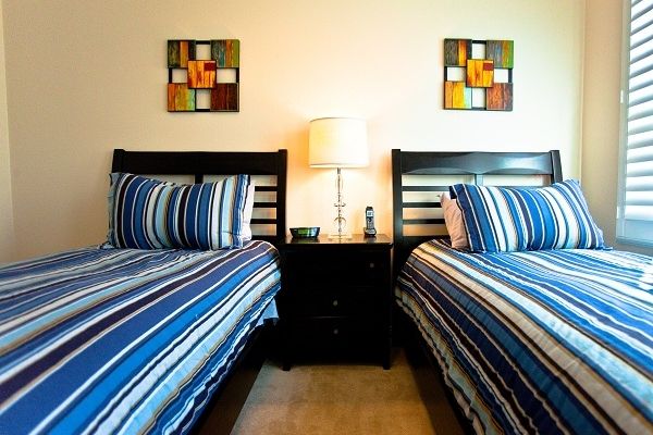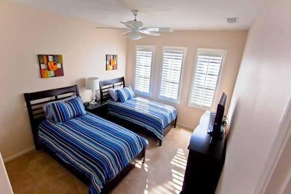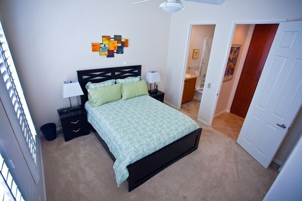 The master bedroom is spacious with a California king bed and has an ensuite bath with a large walk-in shower, dual sinks and a soaking tub. The first of the two guest bedrooms has a queen bed and ensuite bath with a combination tub/shower. The second guest bedroom has two twin beds and a hall bath with a shower.
