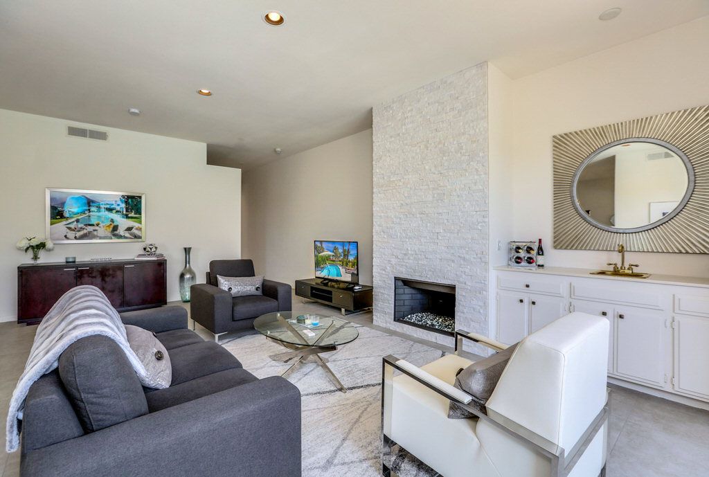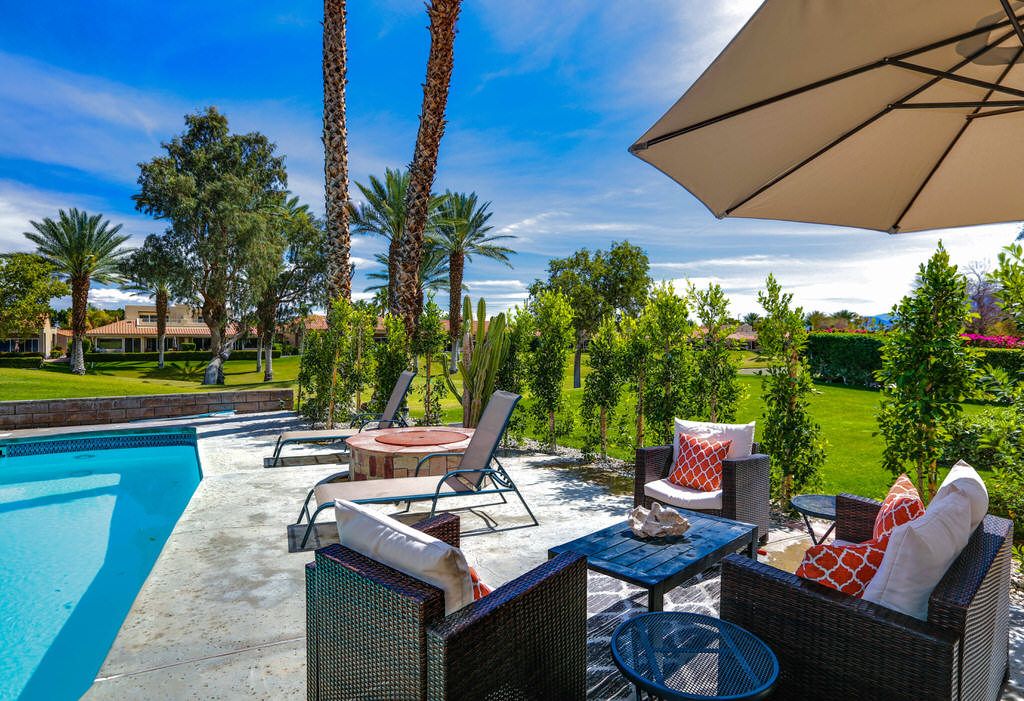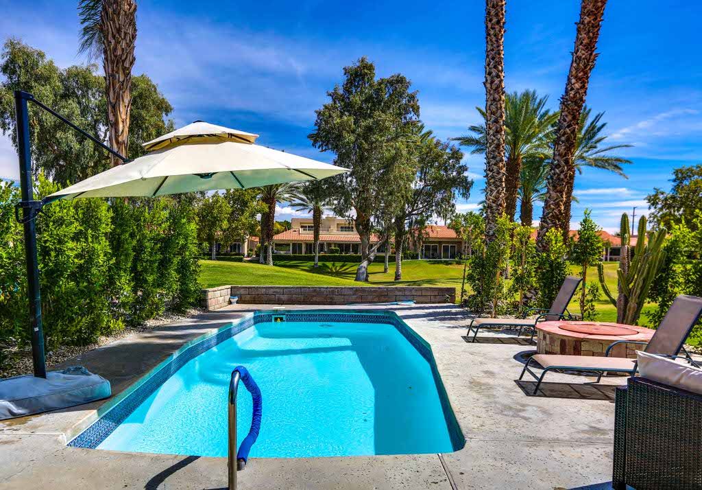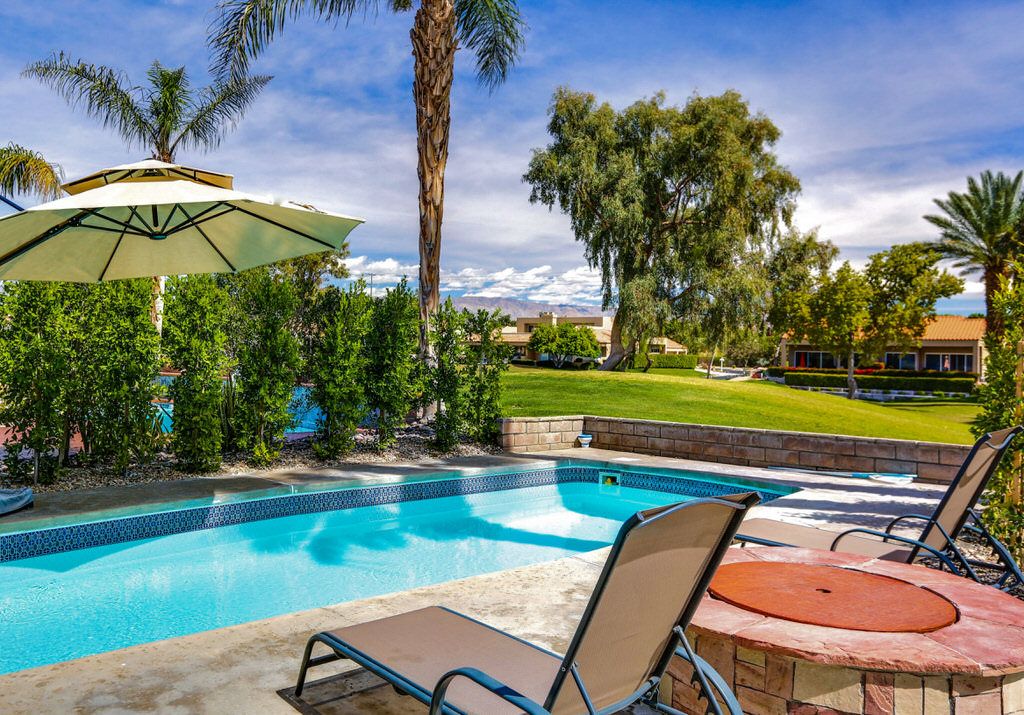 Feel yourself relax as you walk through the welcoming entry of this beautiful Rancho Mirage duplex vacation home now available for rent This remarkable home features a spacious entertainment pool yard with lush landscaping, an outdoor fire pit, abundant seating, and a stainless steel gas bbq grill.