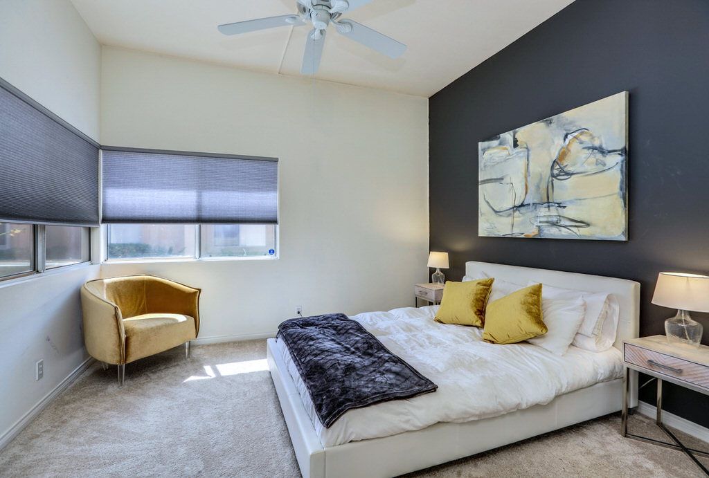 Inside, the spacious living room in this remarkable Mission Hills property features a lovely wet bar, fireplace, large flat screen TV, plush and comfortable sofa seating, and dozens of fine finishes that put this duplex property over the top