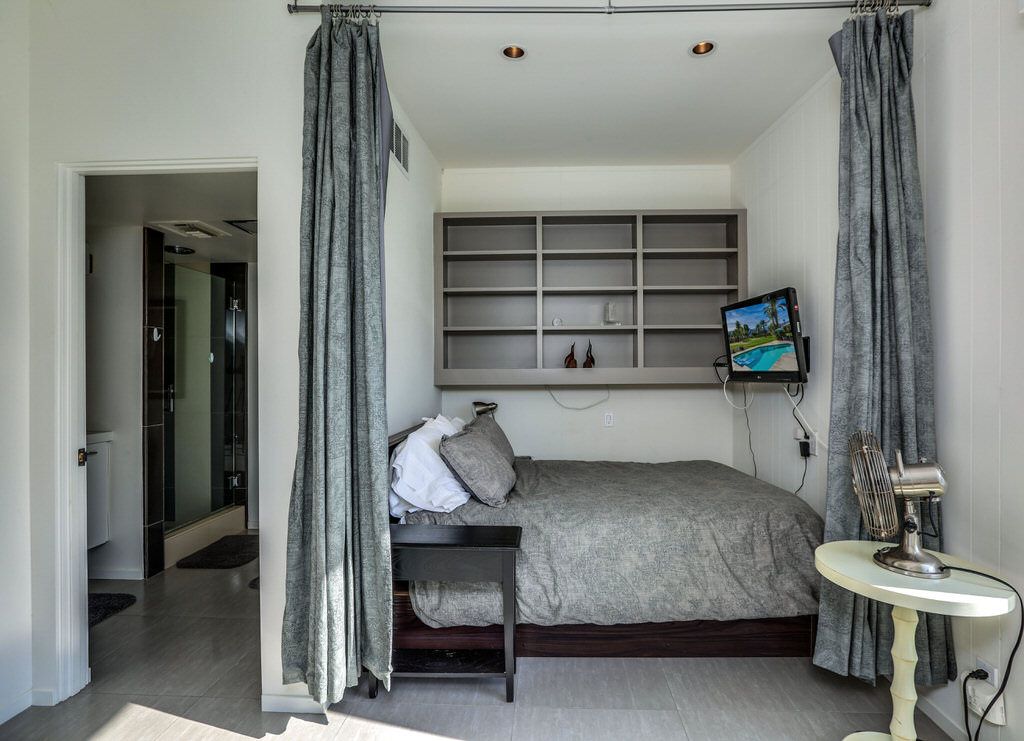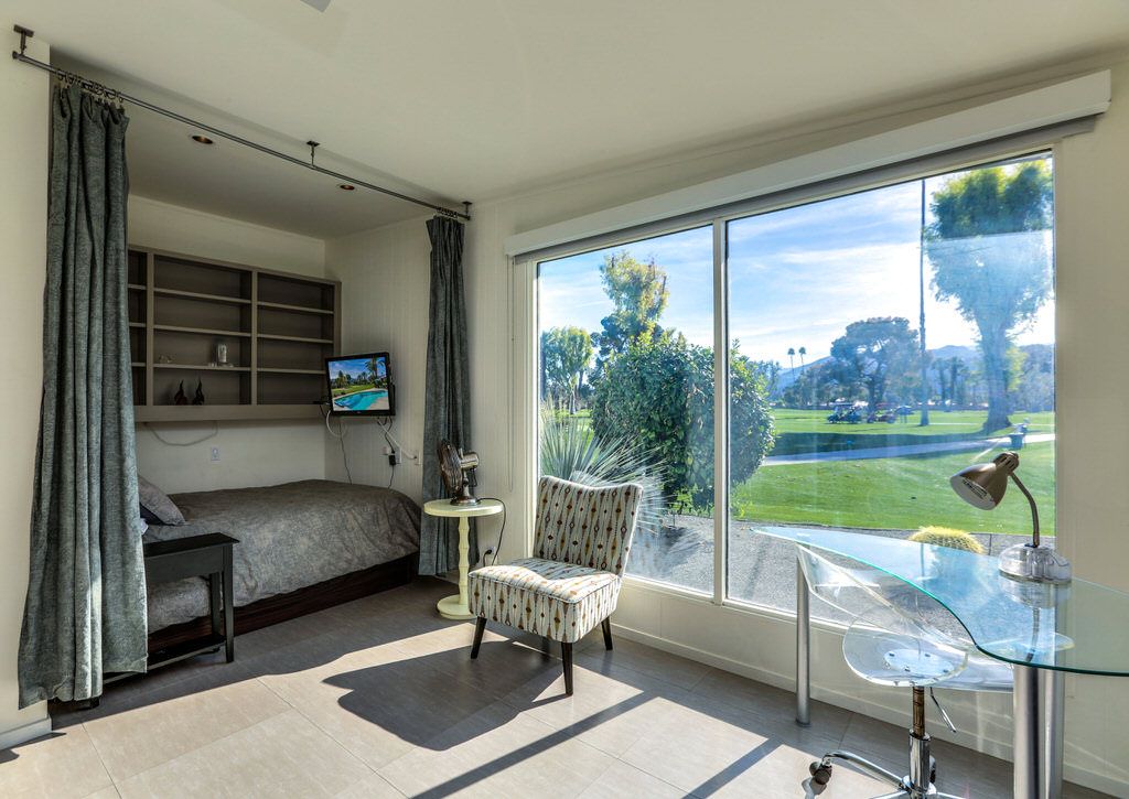 There is a bonus room on the opposite side of the home and features walls of glass overlooking the golf course, pool, and mountain backdrop beyond. The full-size bed is tucked into a cozy sleeping nook for privacy with a 32"" TV. An ensuite bathroom has been recently updated and offers a walk-in shower.