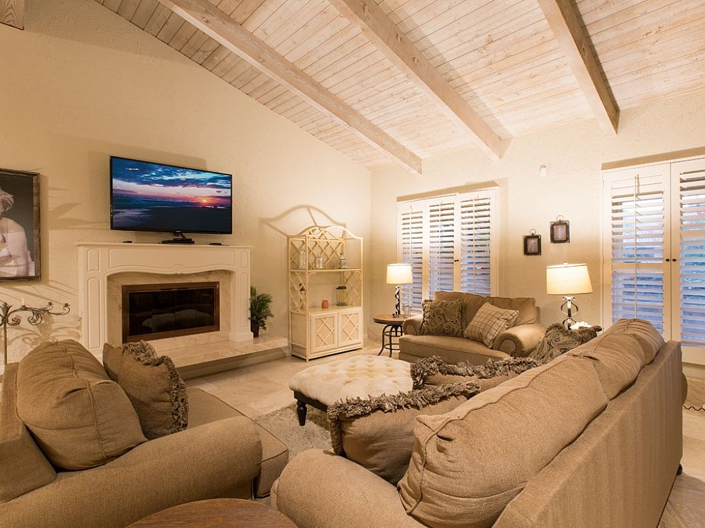 The immense open spaces lined with, elegant flooring, provide ample enticement for further exploration. An abundance of design details will immediately capture your attention including; vaulted ceilings, designer furniture, elegant dinning area and gourmet chef's kitchen with granite counter tops, top-of-the-line appliances and seating for 8 around the dining table. The chef's kitchen is fully equipped with kitchen utensils and small appliances for any occasion.