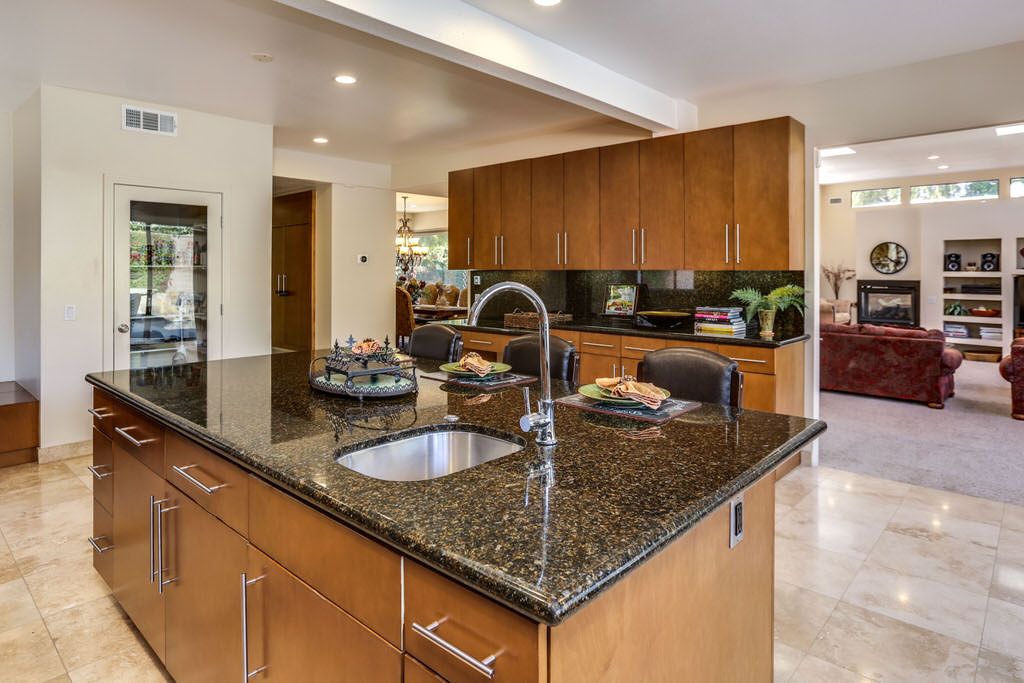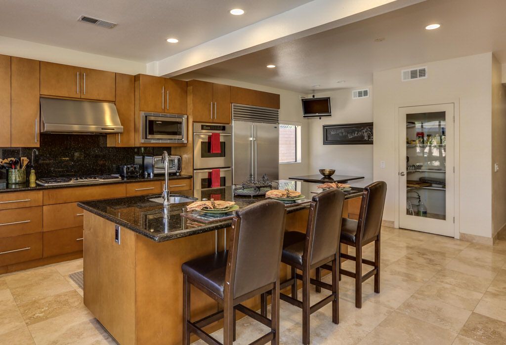 Amenities include a large chef's island complete with convenient vegetable sink and bar seating for conversation while cooking.