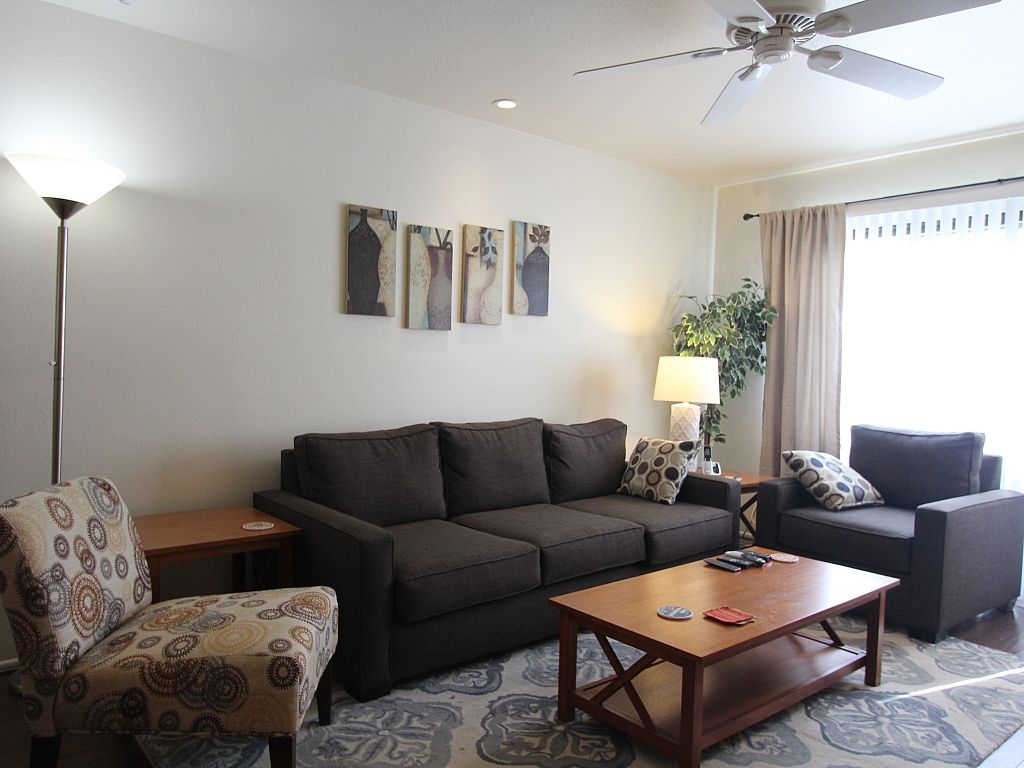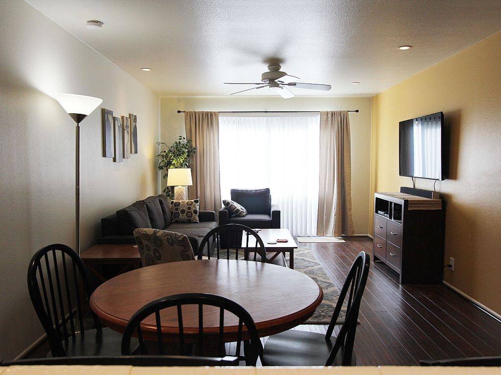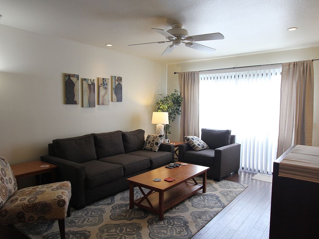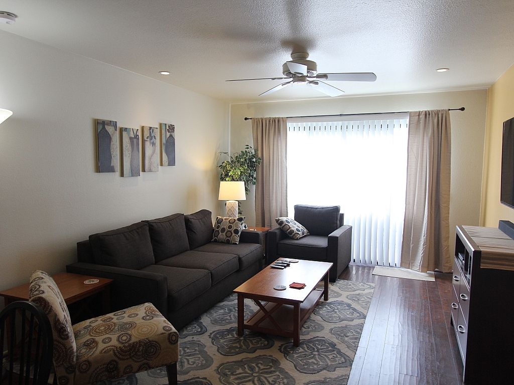 The open and airy living space is highlighted by comfortable seating, lots of natural light, with large sliding doors and there's plenty of room to spread out and relax while watching your favorite movie or television show on the 55"" TV flat screen with bluetooth enabled soundbar and both DVD and Blu Ray player.