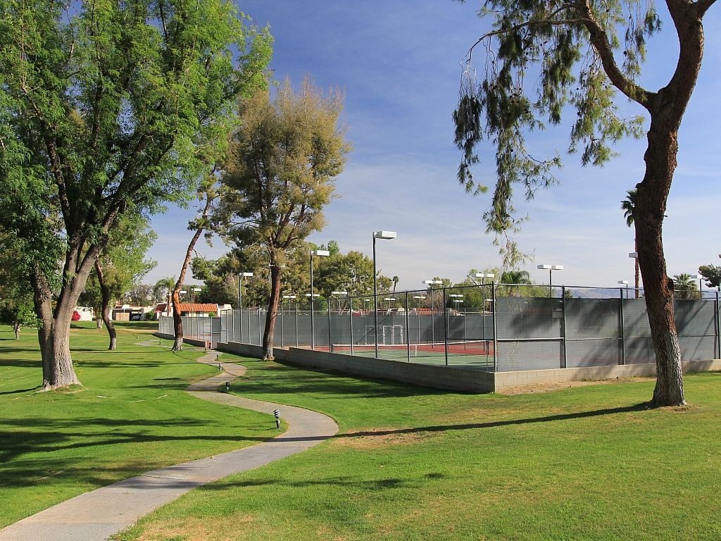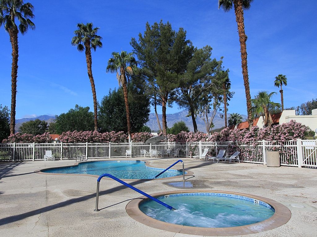 This community offers 5 community pools and 4 spas, 7 tennis courts and lots of lush landscaping, fruit trees and mountain views. Explore the park-like setting of this delightful community by following the road around the community for a energizing half-mile walk.