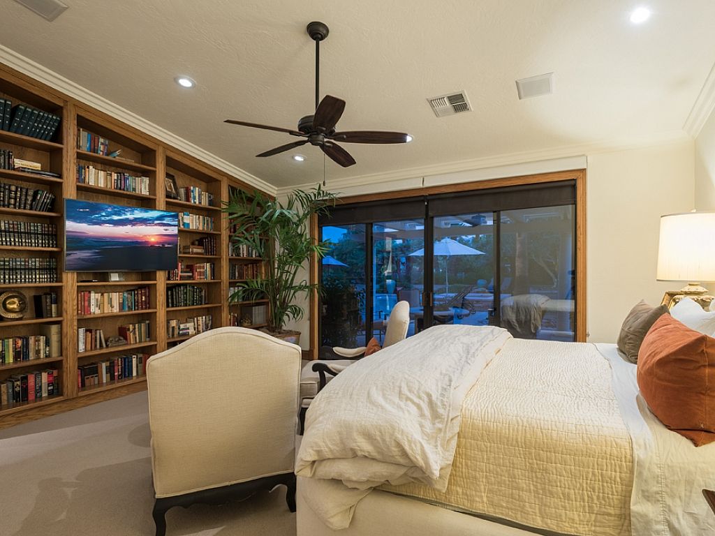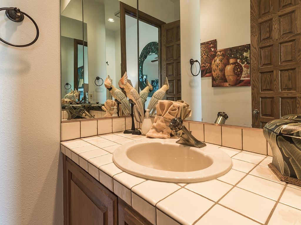 The expansive property offers several outdoor living areas for friends and family to socialize, eat, and play. Complete with an outdoor barbeque area, night lighted tennis court and basketball court, and of course, a large resort style wrap-around pool deck; swimming pool and spa. When you're ready for a game of tennis please avoid from wearing black sole shoes that could potentially scuff up the tennis court when you decide to challenge your friend to a match or two.