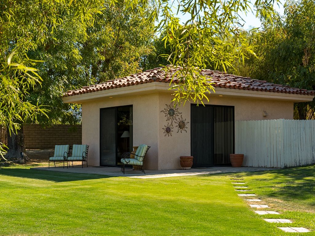 The guest house offers an additional retreat and added privacy from the main house. This bonus retreat comes complete with a kitchenette, an En Suite bathroom, and a Samsung LED flat screen television.