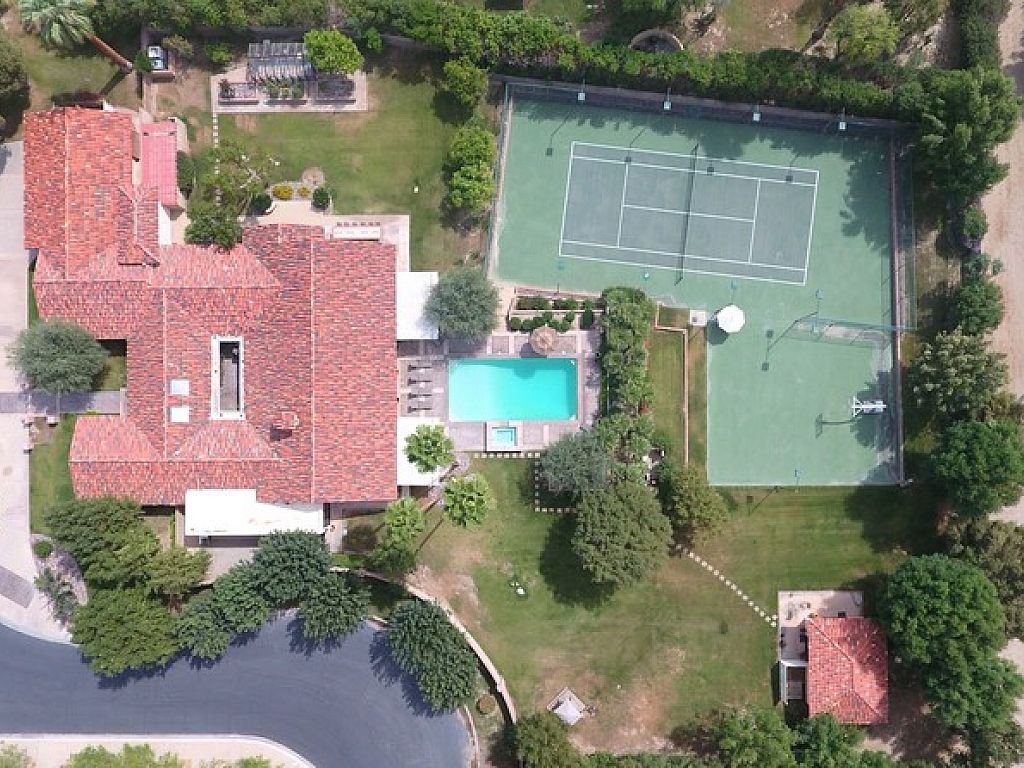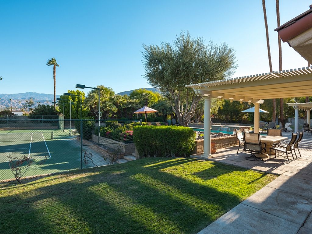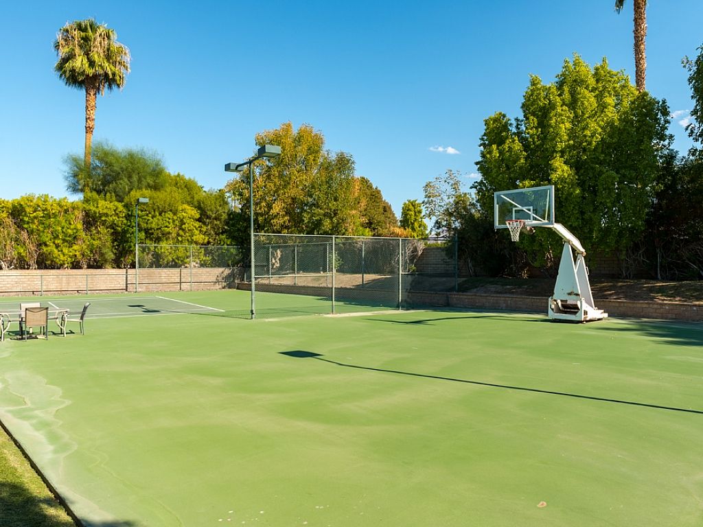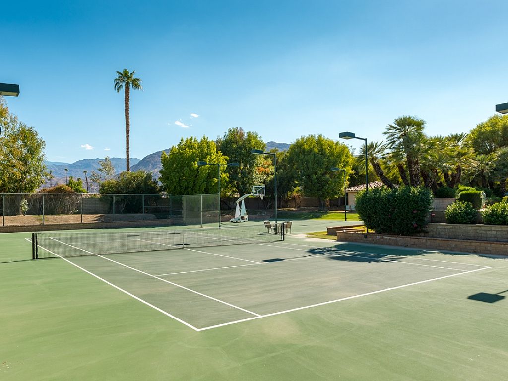 Your own Private Resort This beautifully restored 6,040-square-foot Rancho Mirage vacation estate sparkles on 1.5 manicured acres. The expansive mountain-view location features a full size lighted tennis court and basketball court.