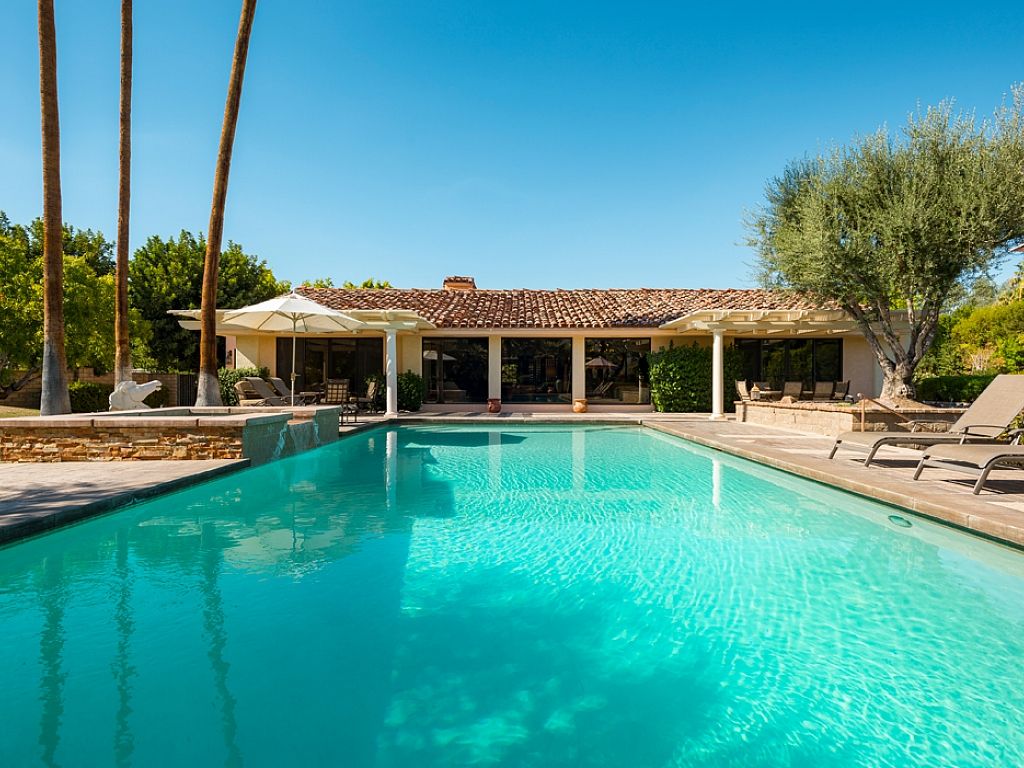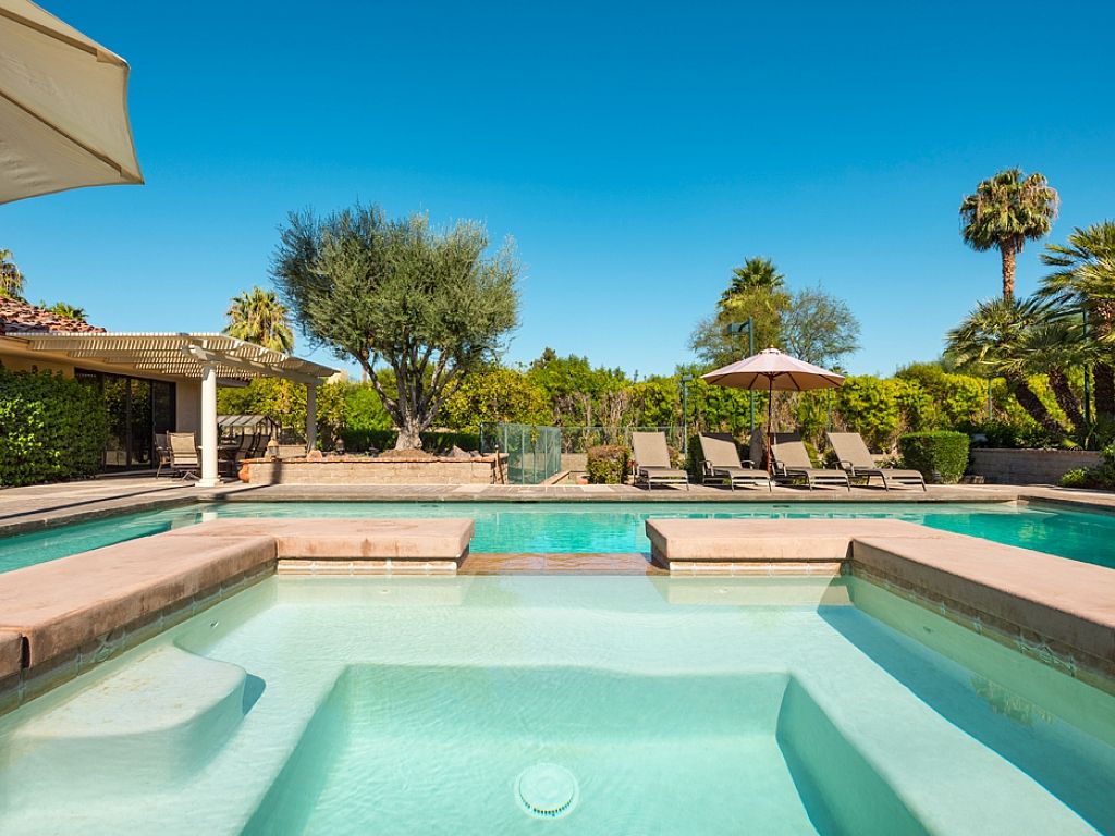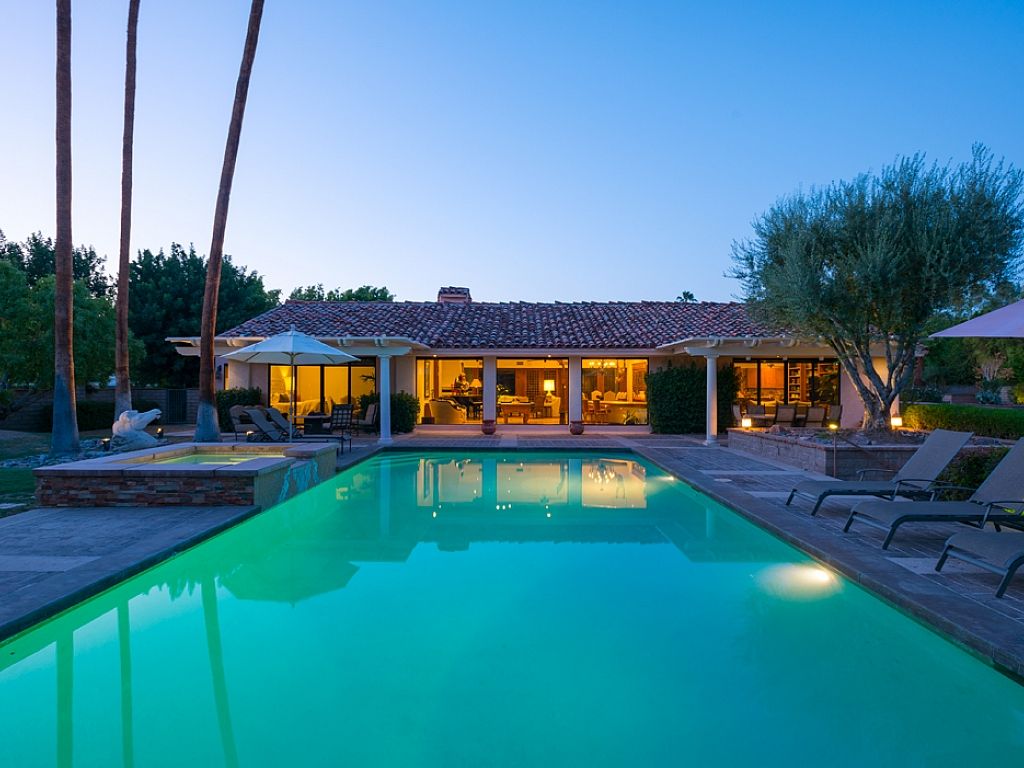 This gorgeous luxury vacation rental home is located in a very desirable neighborhood that is referred as the Beverly Hills of the Coachella Valley.