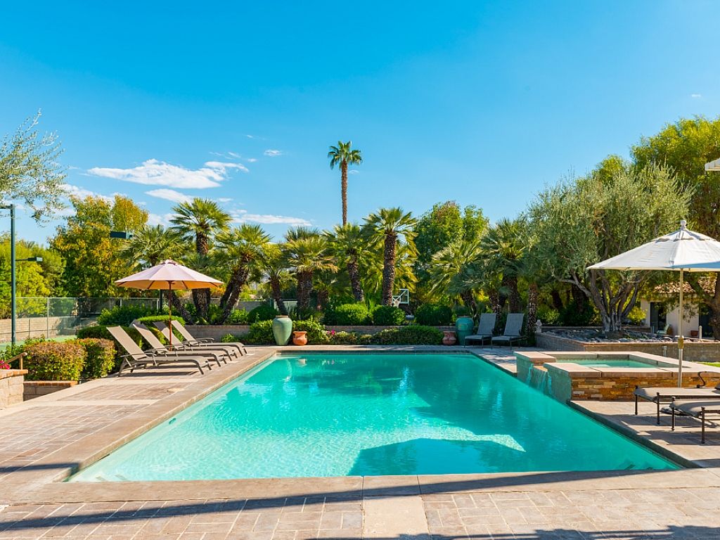 The pristine resort style pool is sure to grab everyone's attention with its South facing mountains that paint the desert sky. The meticulously remodeled Estate at Clancy Lane is the perfect location for your next executive retreat, group function, golf outing or family reunion.