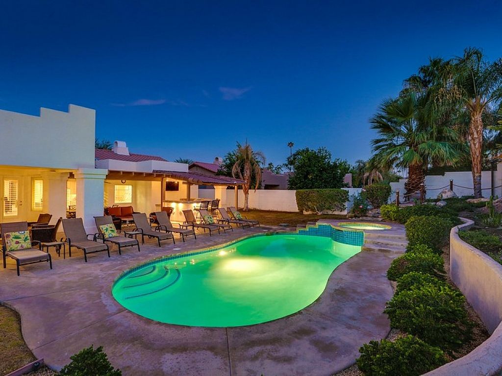 This Rancho Mirage rental home is great for your family vacation, reunion or retreat, and is located on a quiet street in the much-desired magnesia falls cove neighborhood. The entryway opens up to the spacious and open combined formal living area and dining area. The gracious and relaxed indoor/outdoor setting is perfect for a fun-filled and relaxing vacation in much desirable Rancho Mirage, CA.